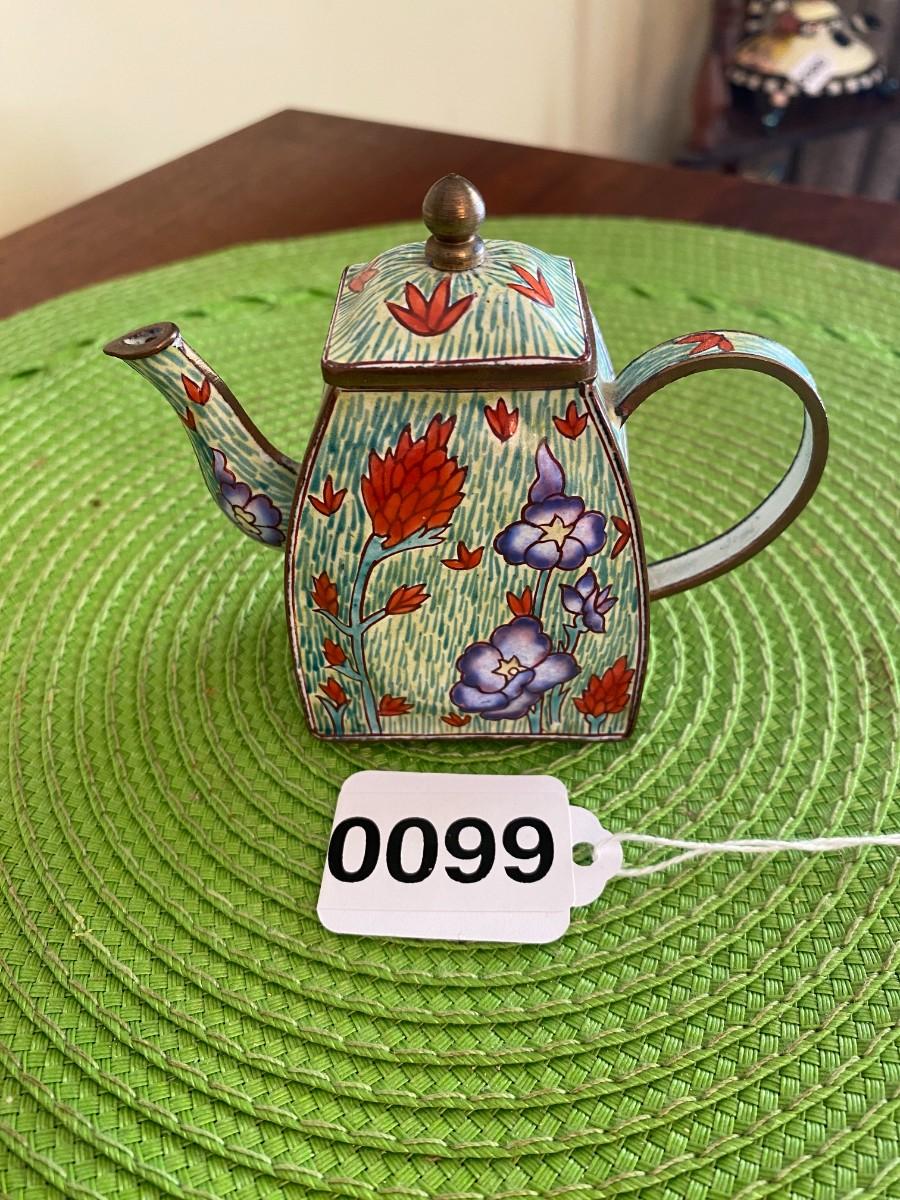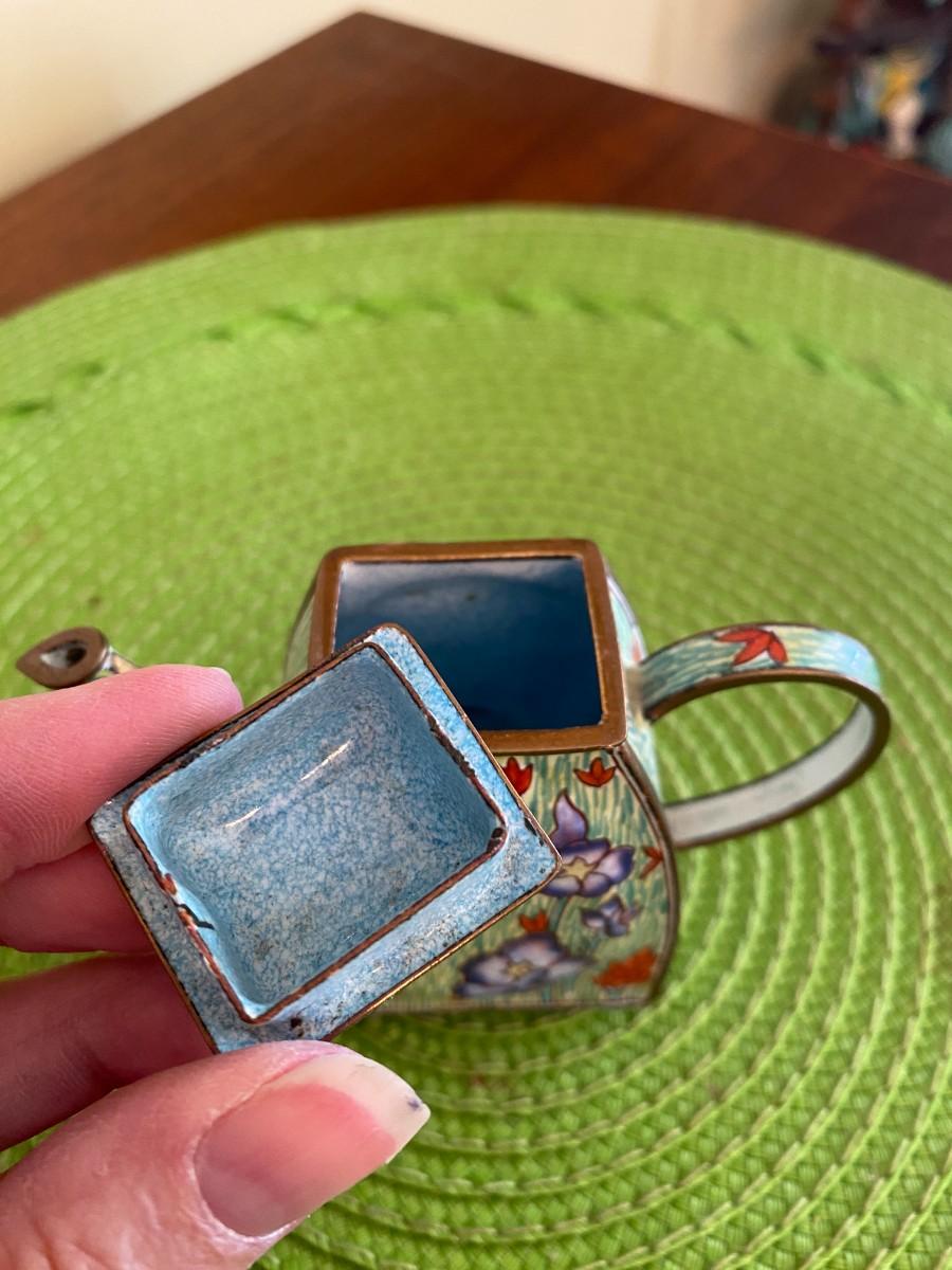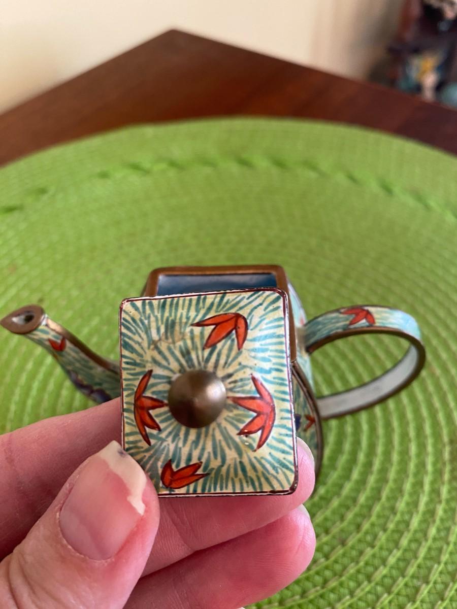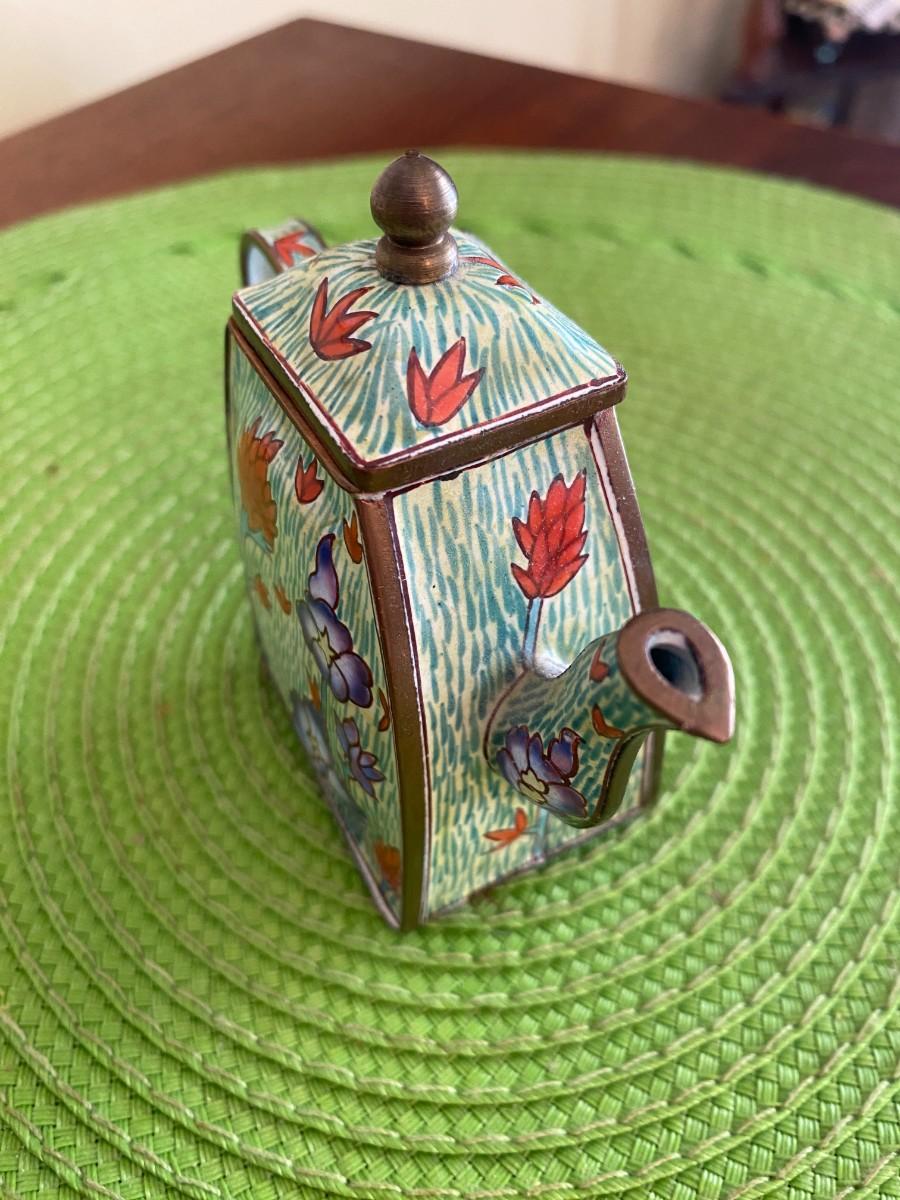 Cloisonne Miniature Teapot Red Ginger and Iris's