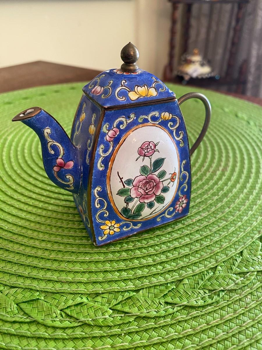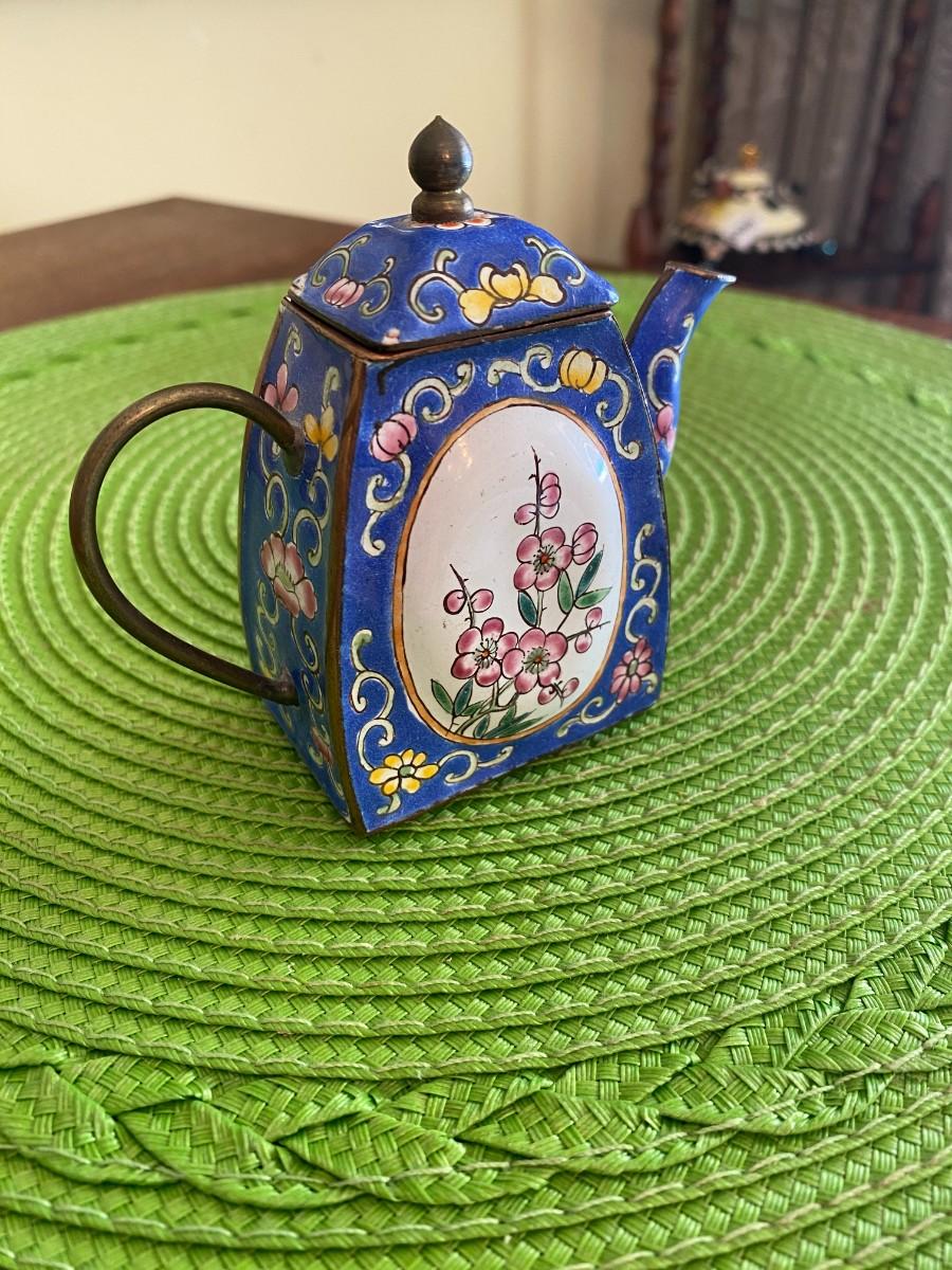 Cloisonne Miniature Teapot Blue with Cherry Blossoms