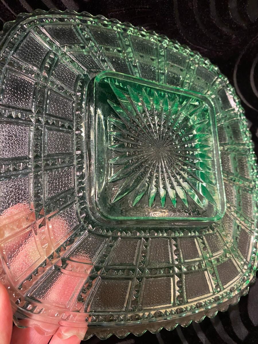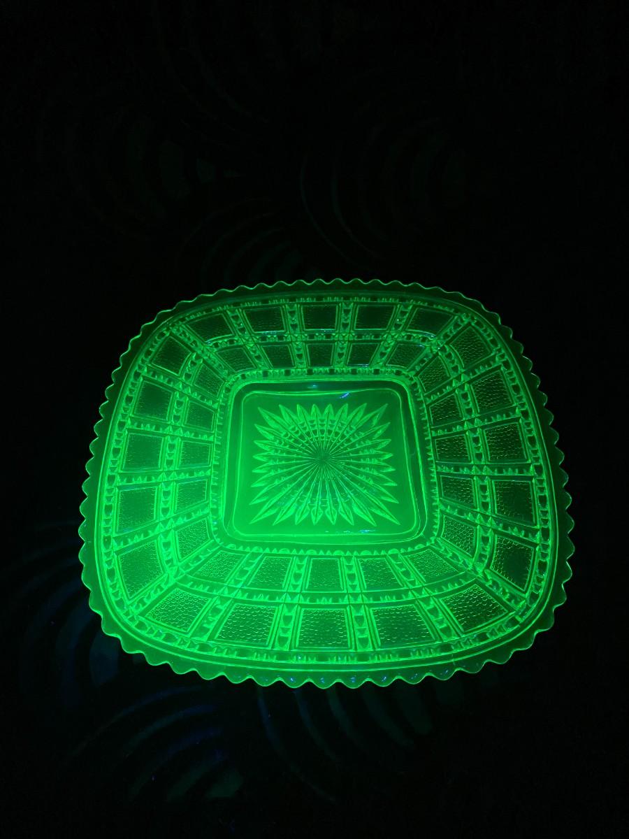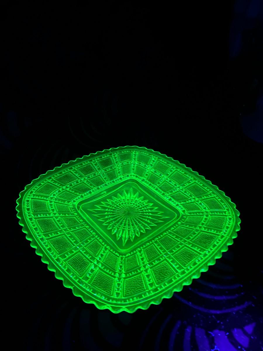 Victorian Uranium Pressed Glass Dish Circa 1890