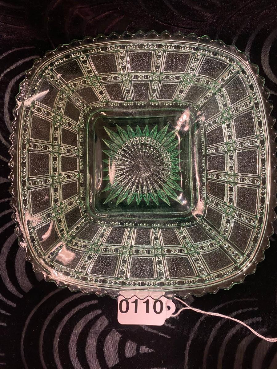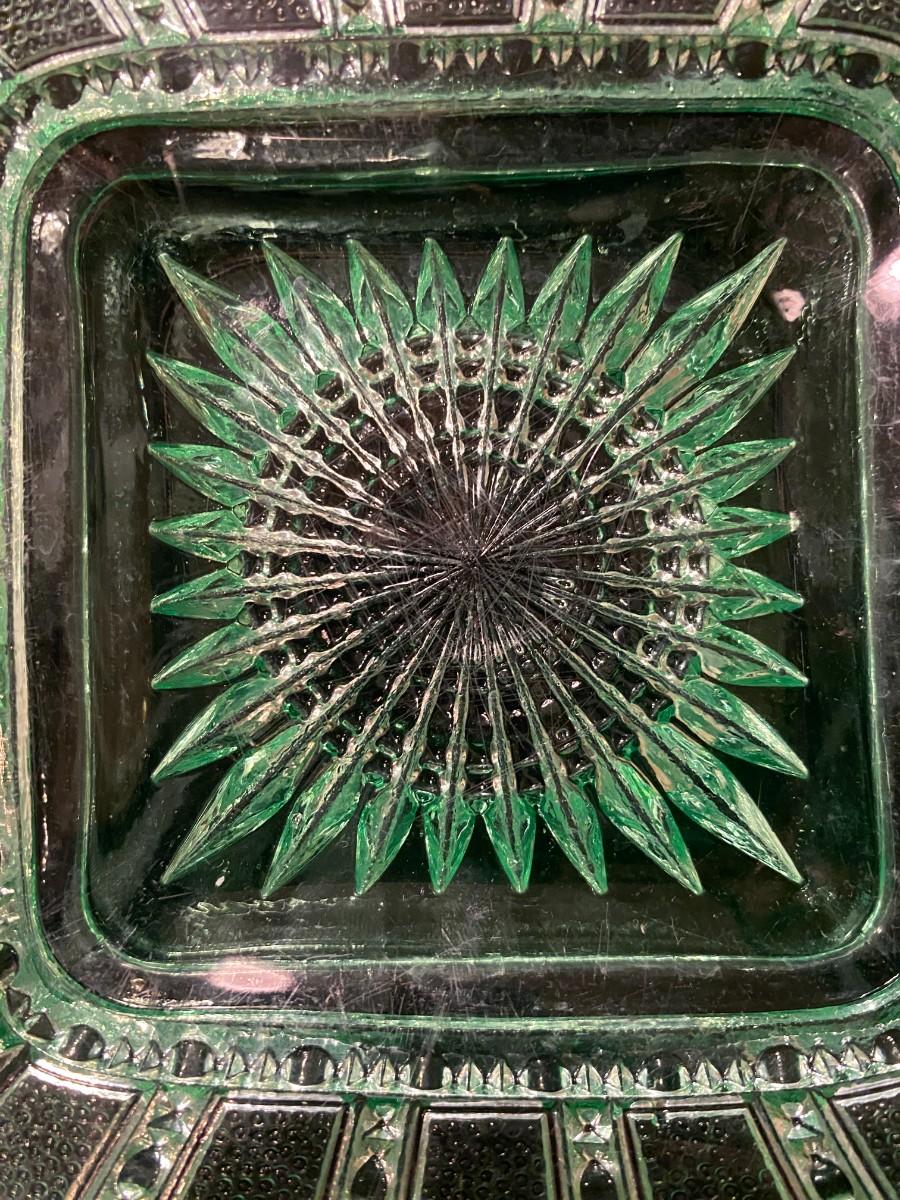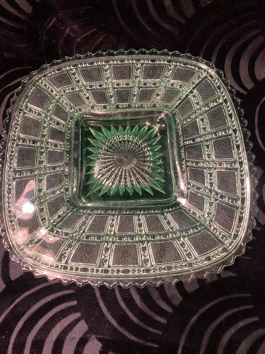 Victorian Uranium Pressed Glass Dish Circa 1890