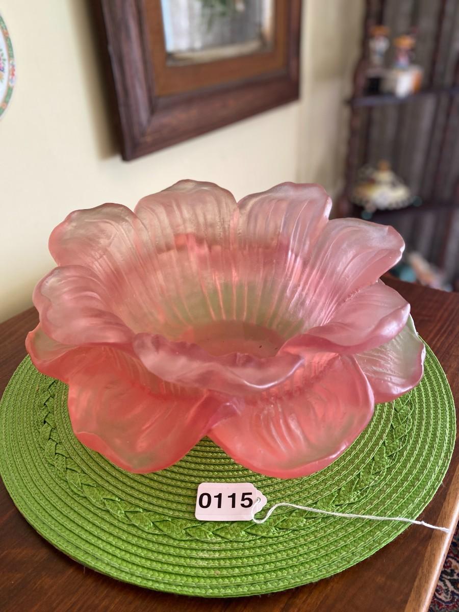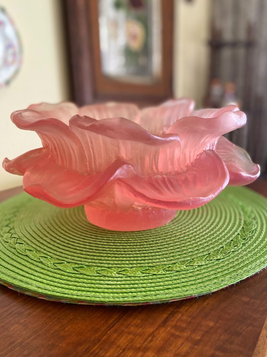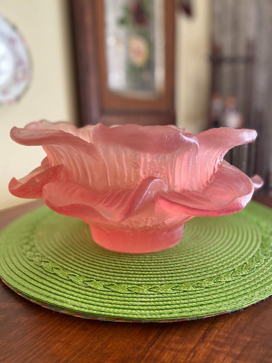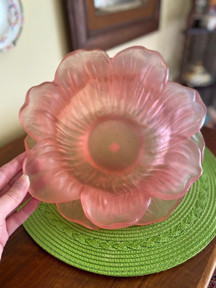 Rare Midcentury Frosted Pink Blooming Flower Bowl by Dorothy Thorpe