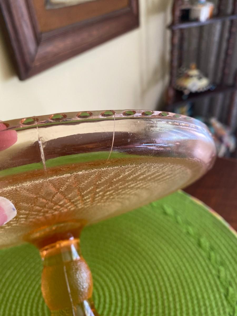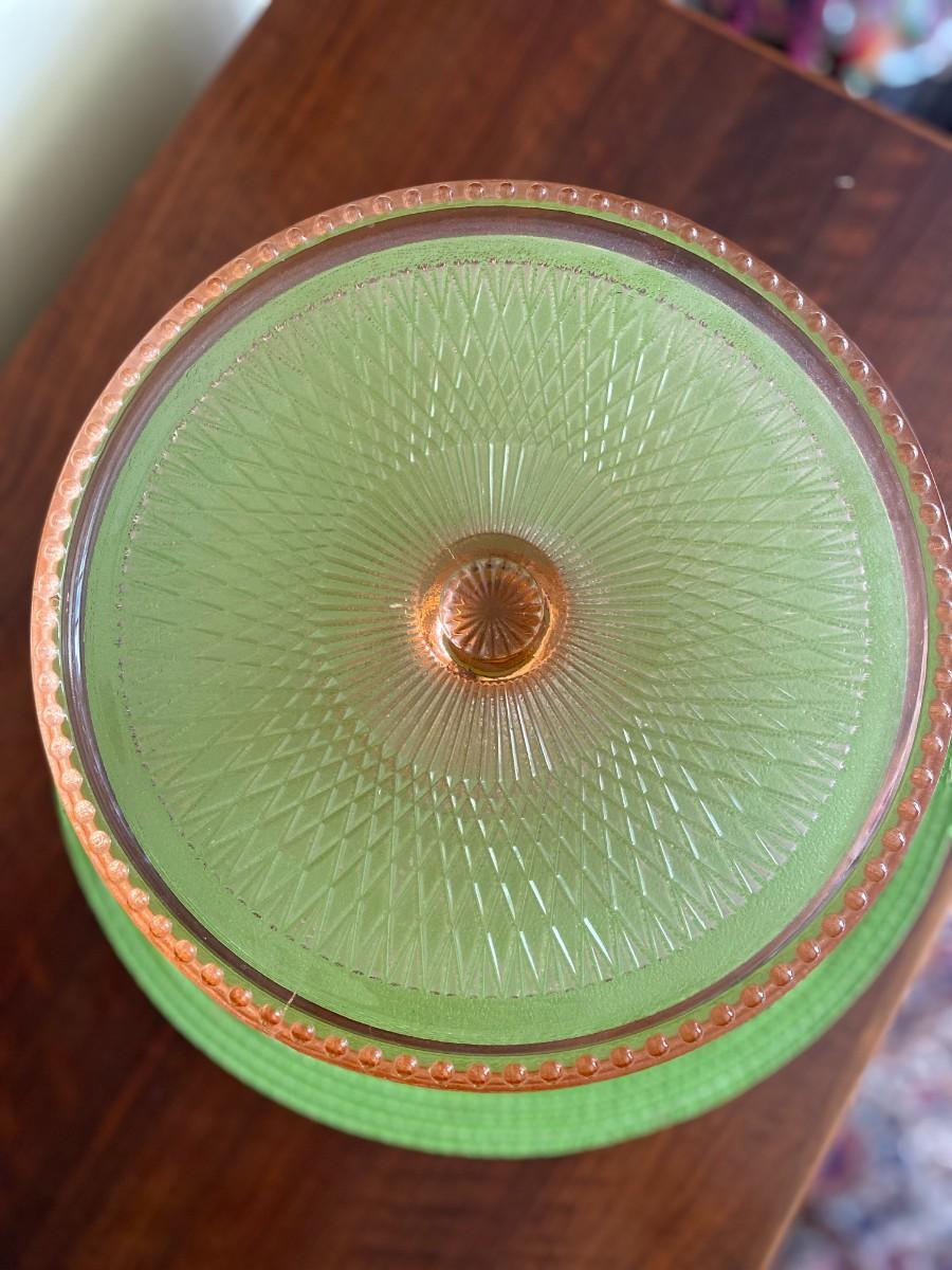 Beautiful Vintage Pink Pressed Glass Cake Dish