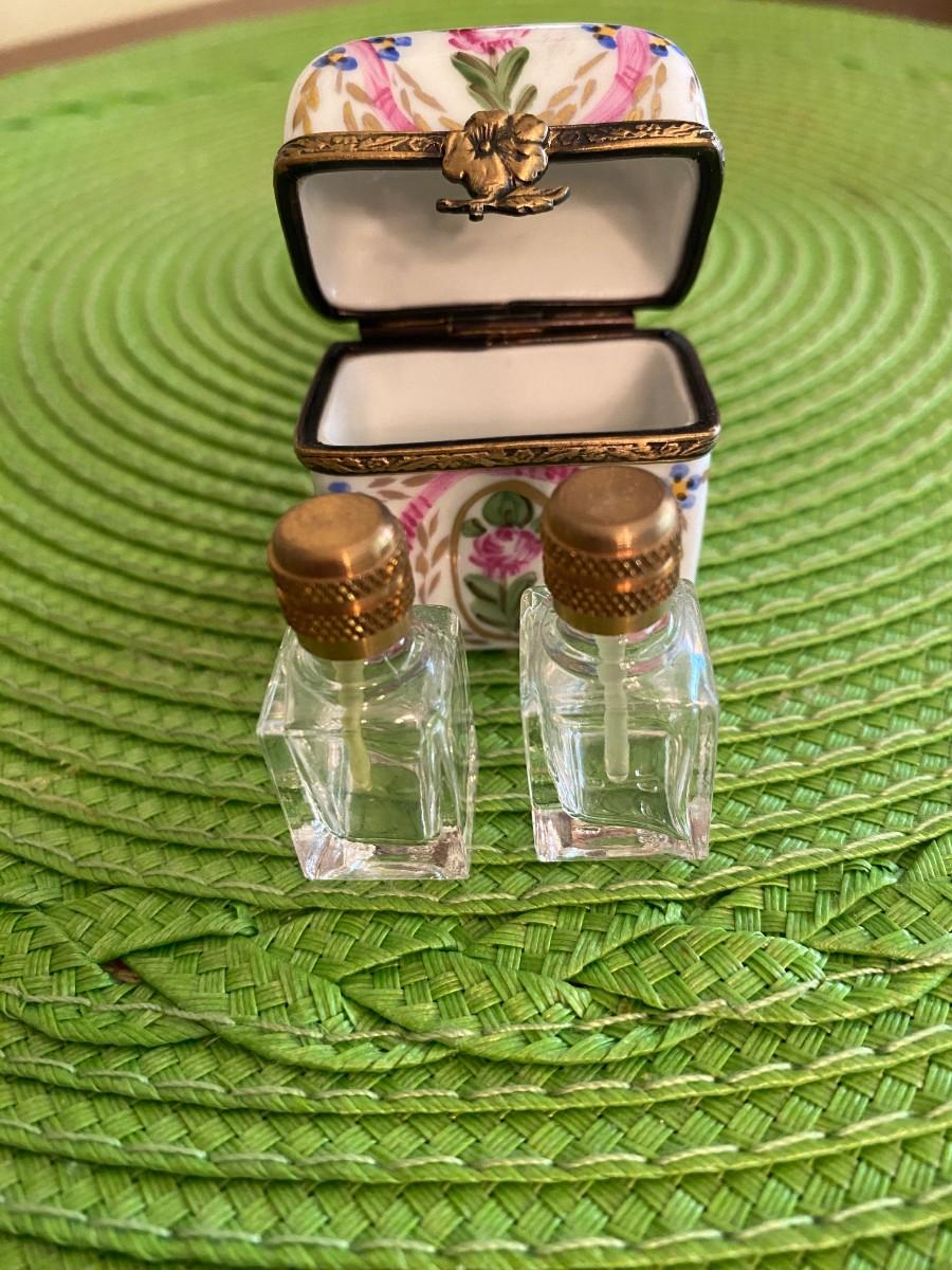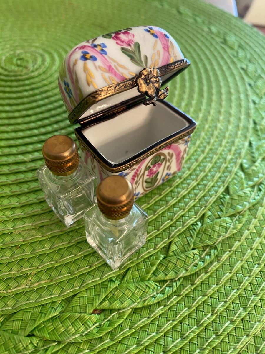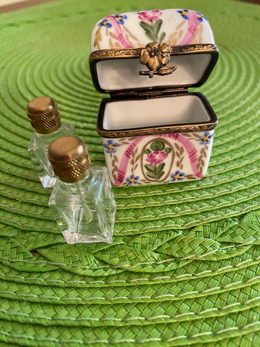 Miniature Limoges Trinket Box with Mini Perfume Bottles