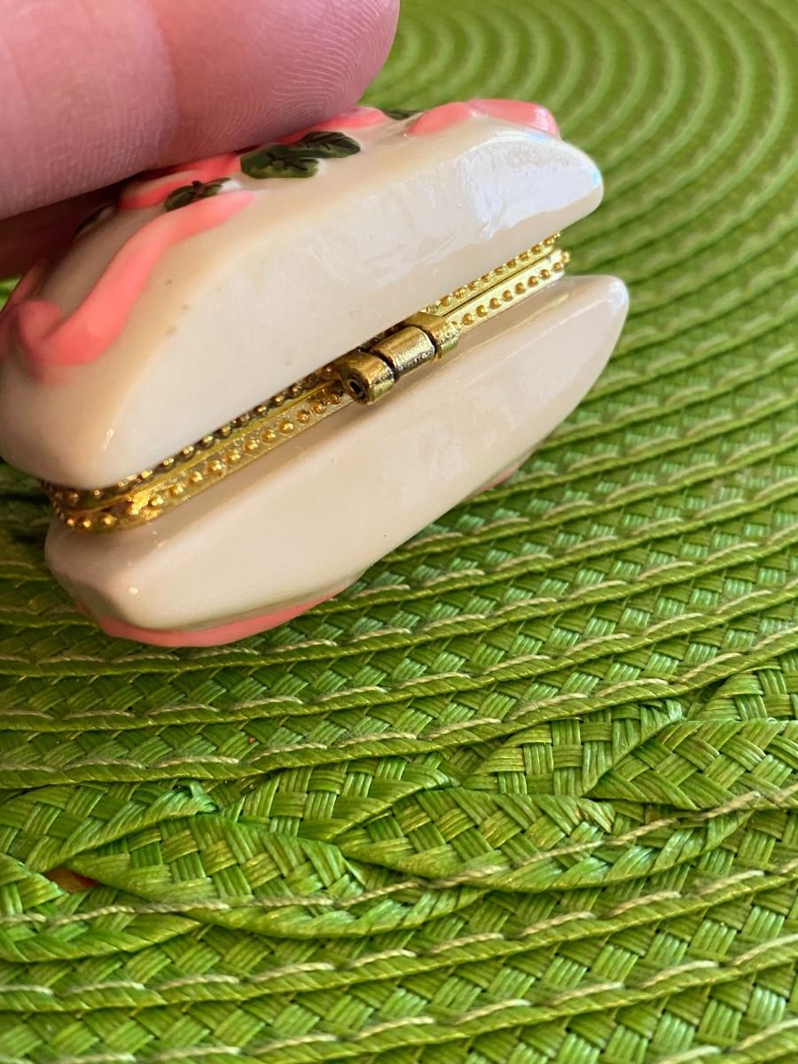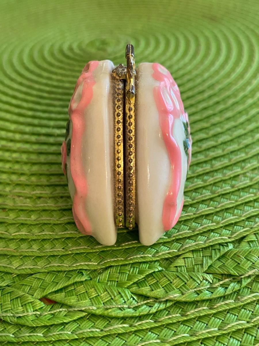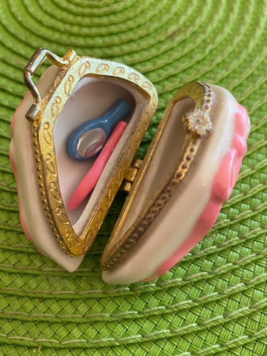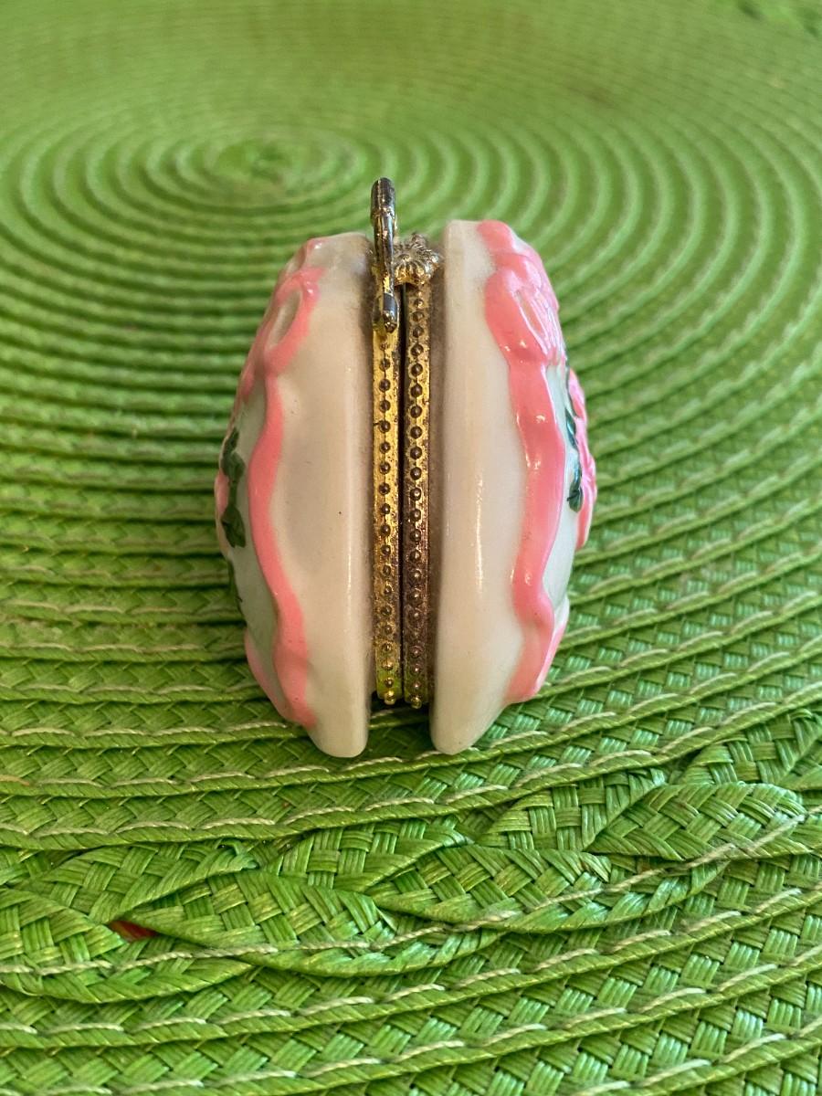 Miniature Porcelain Hand Bag Trinket Box with Mini Comb and Mirror