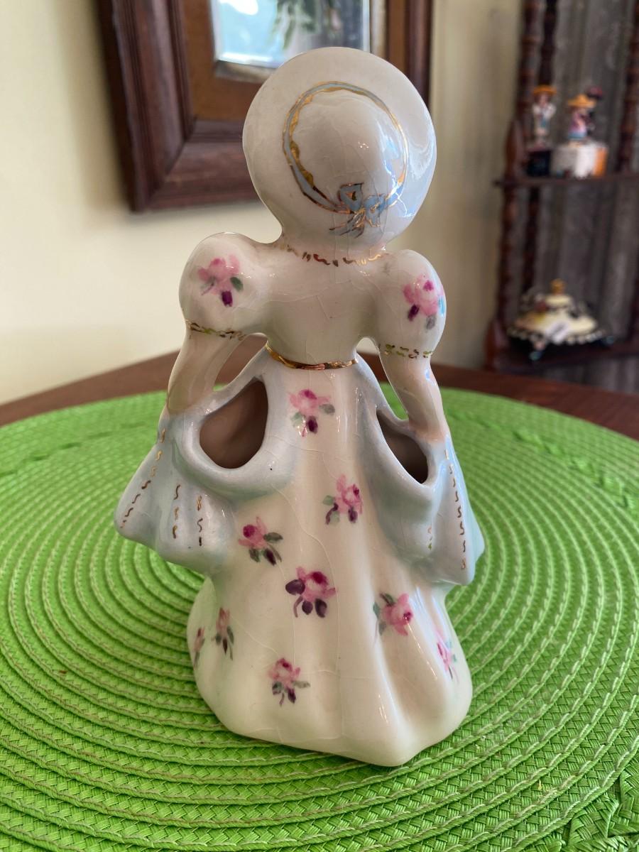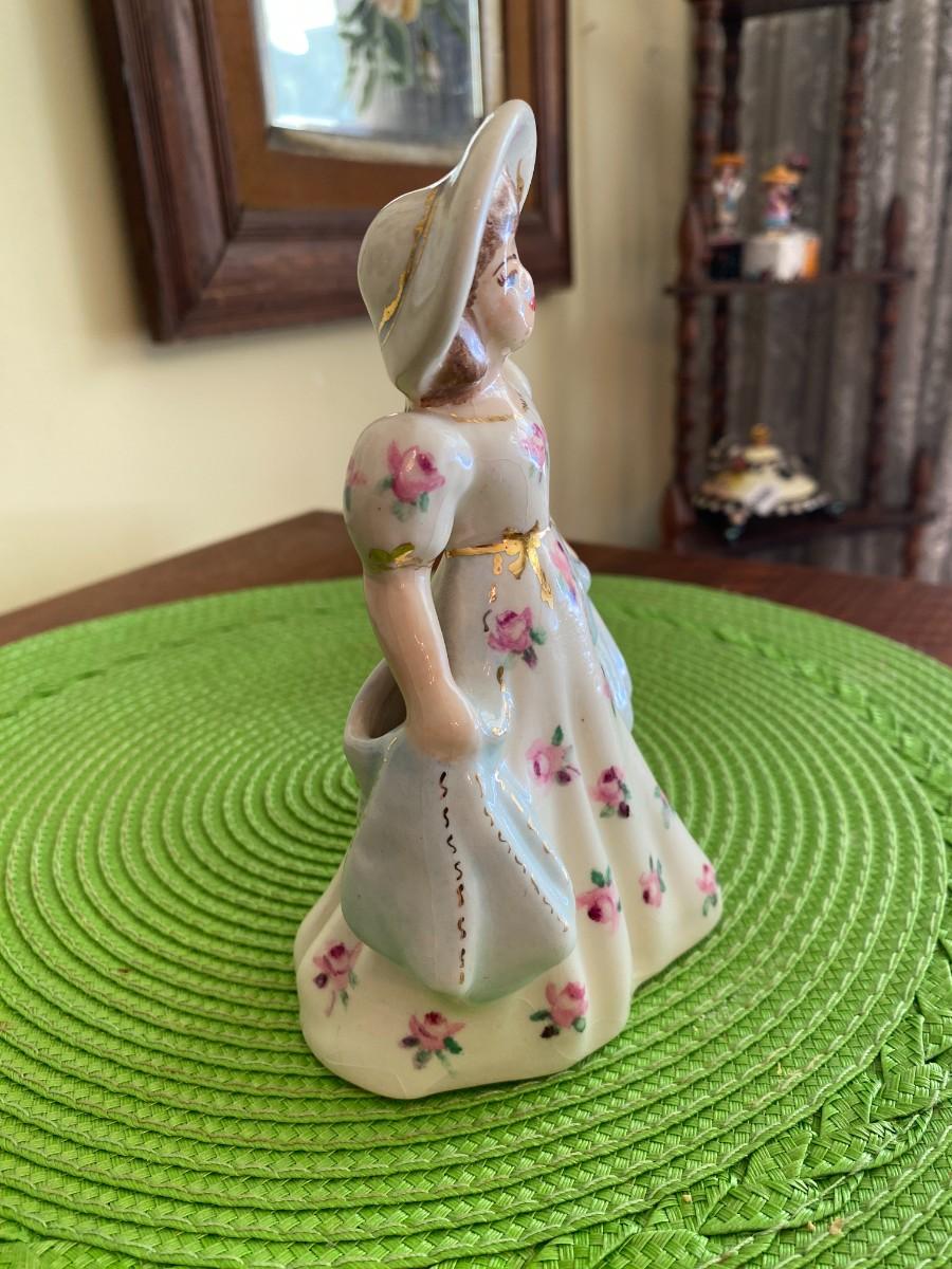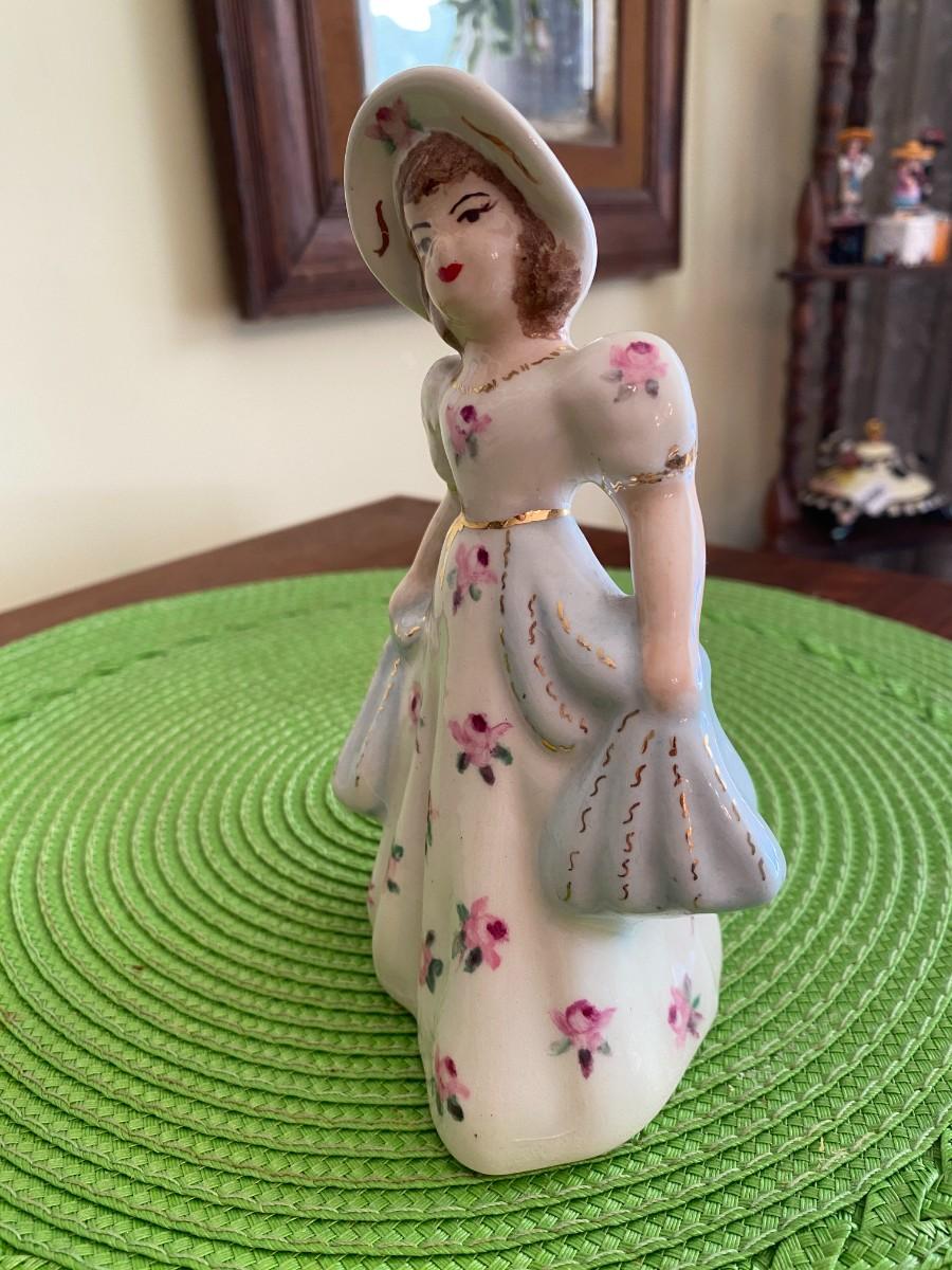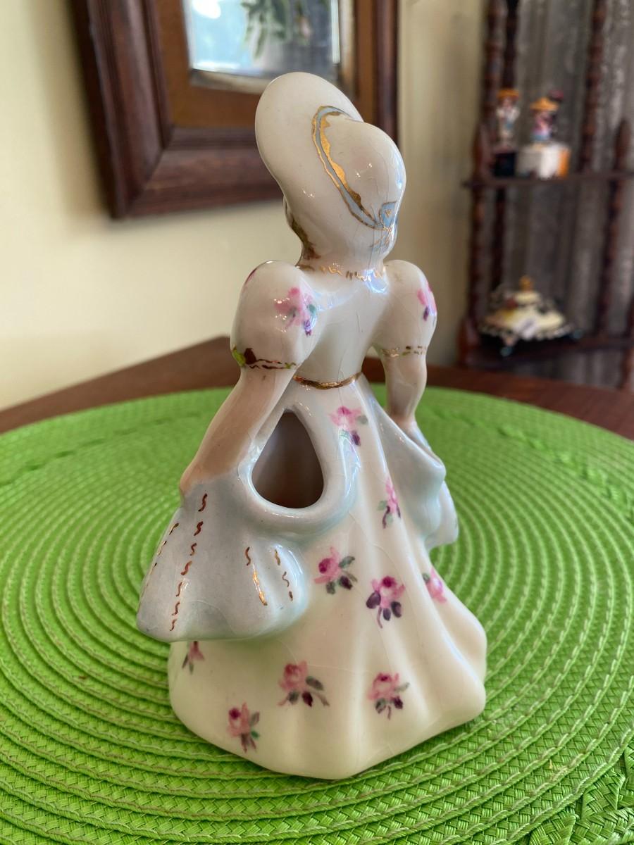 Antique Porcelain Lady Figurine Blue and Pink