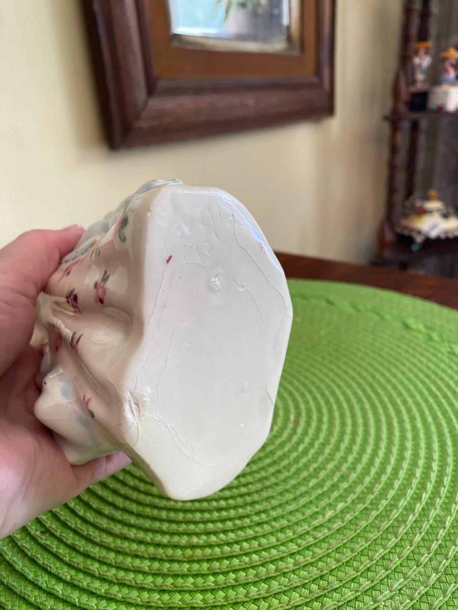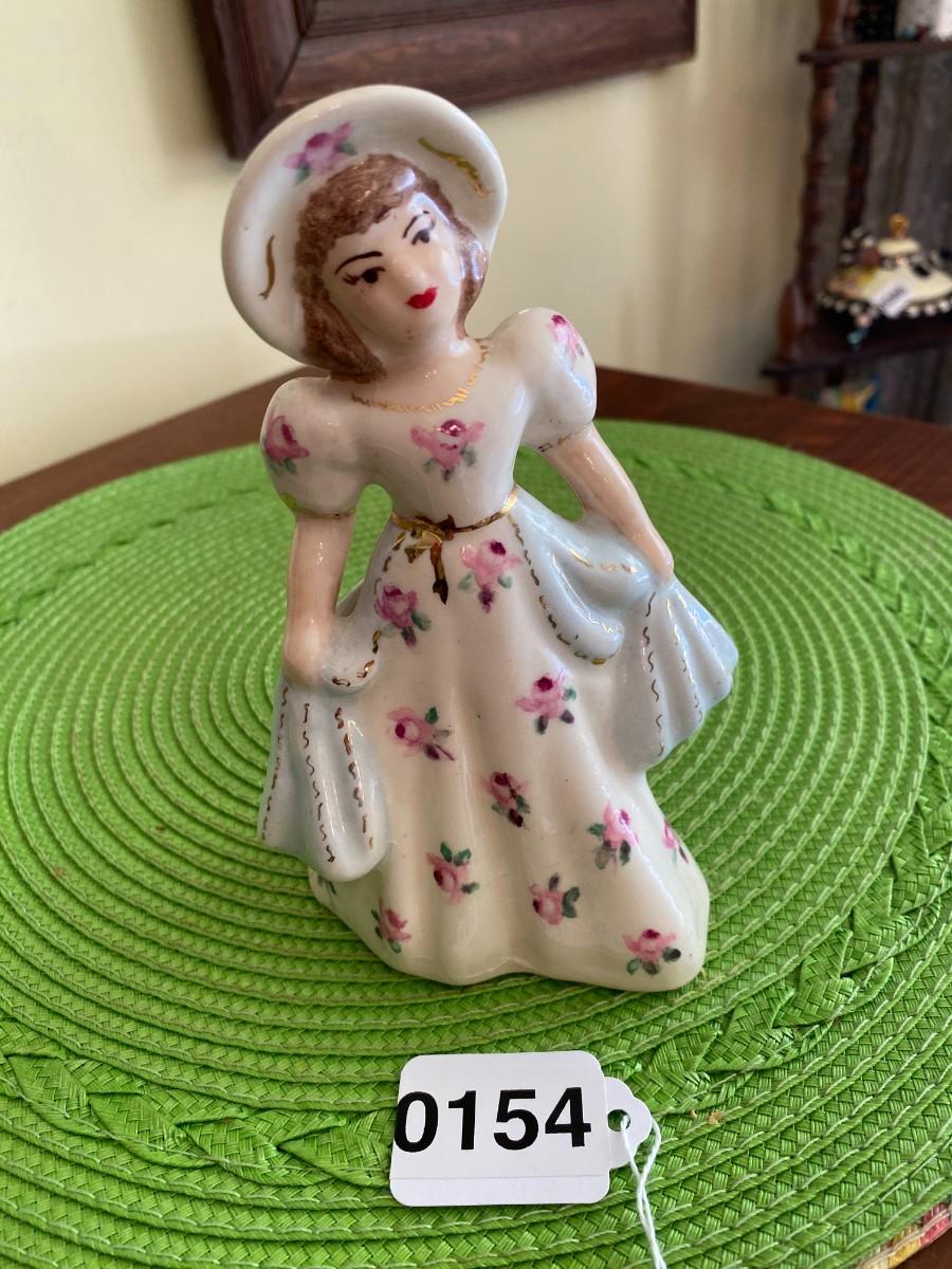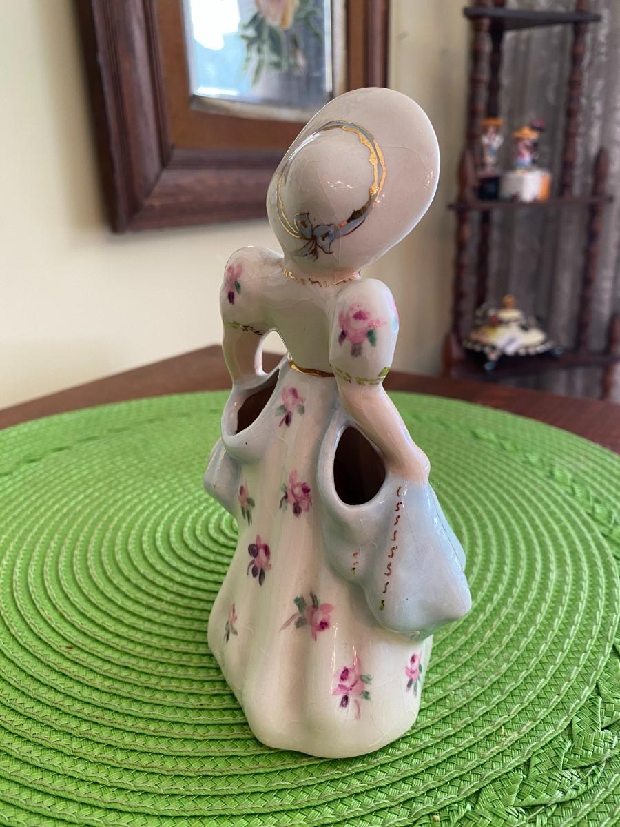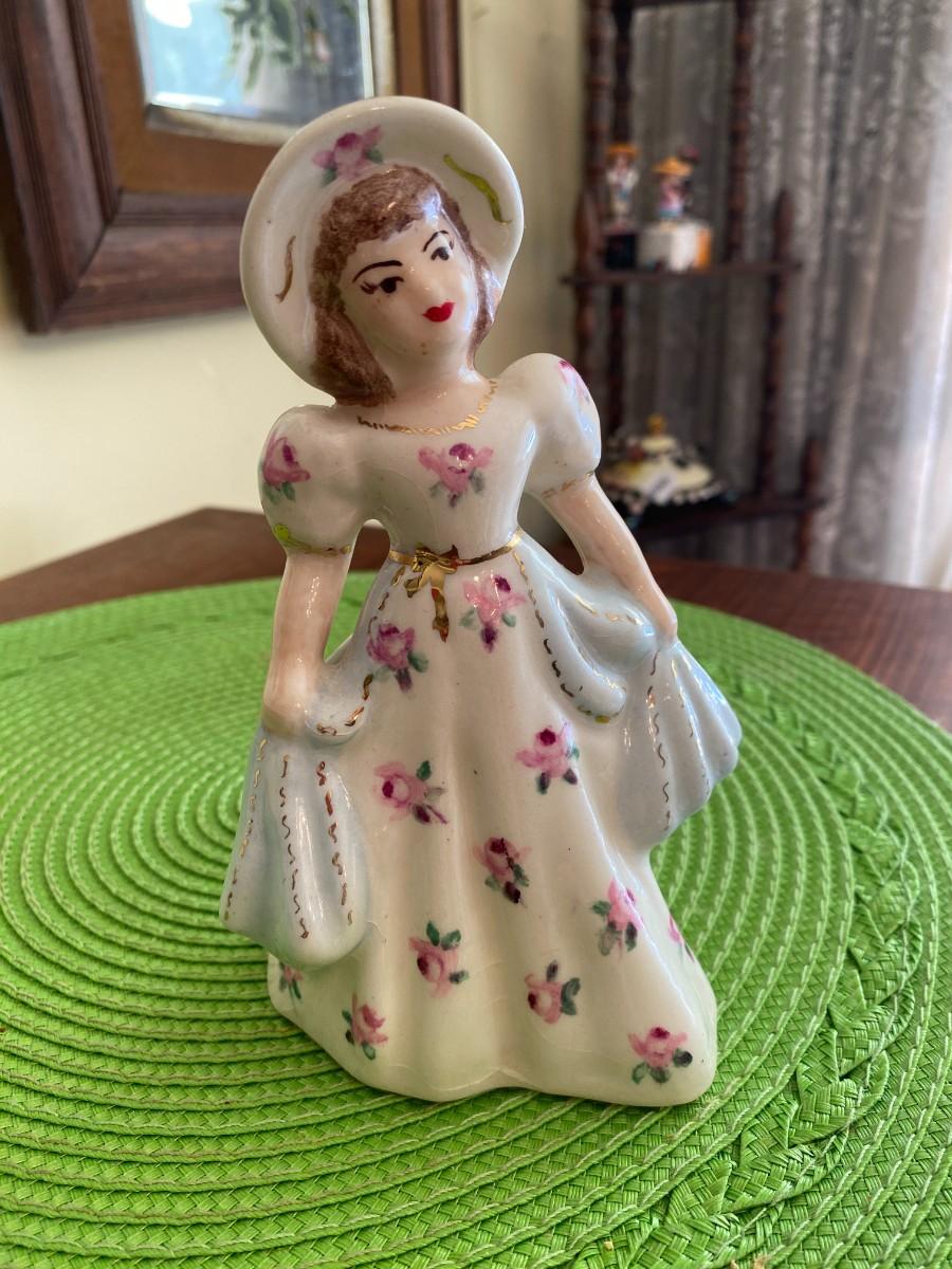 Antique Porcelain Lady Figurine Blue and Pink