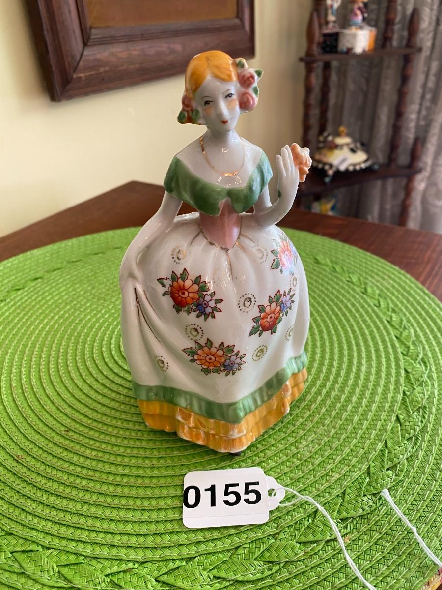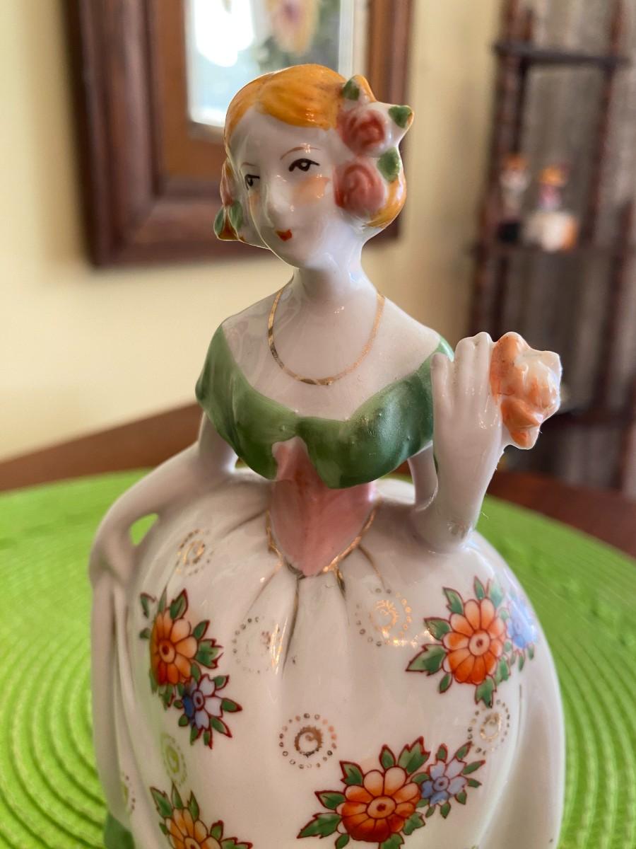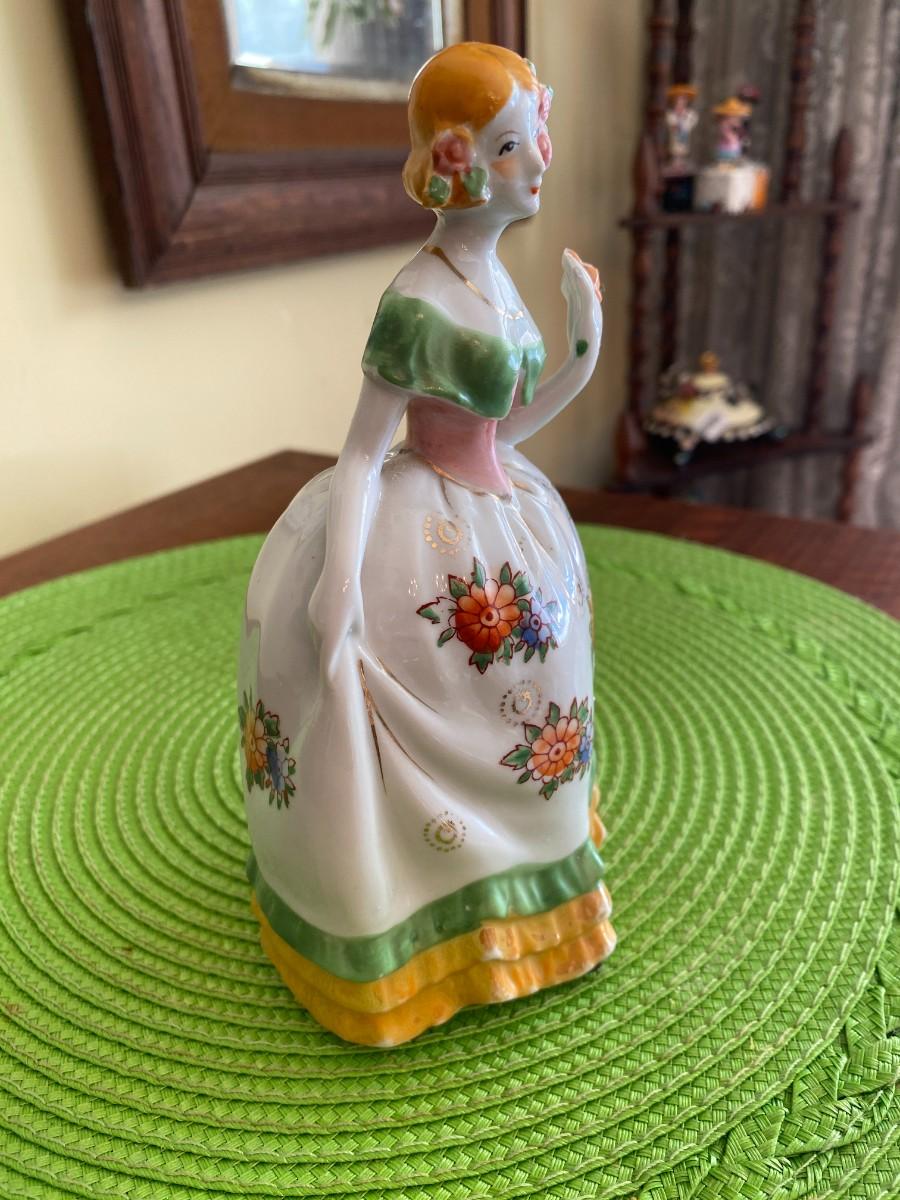 Hand Painted Porcelain Lady Figurine Yellow and Green