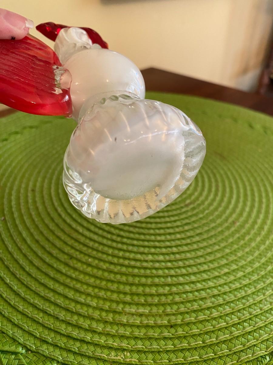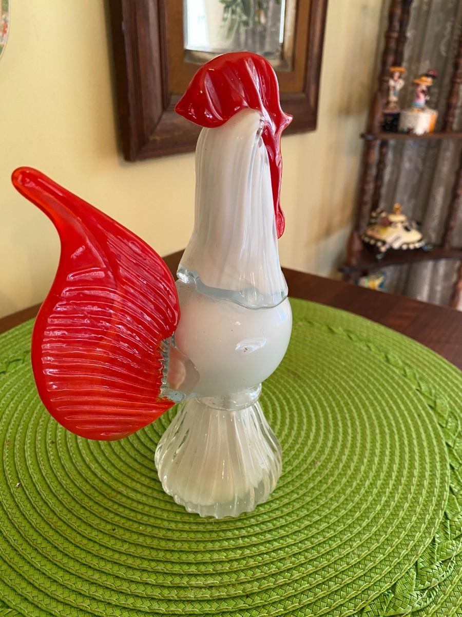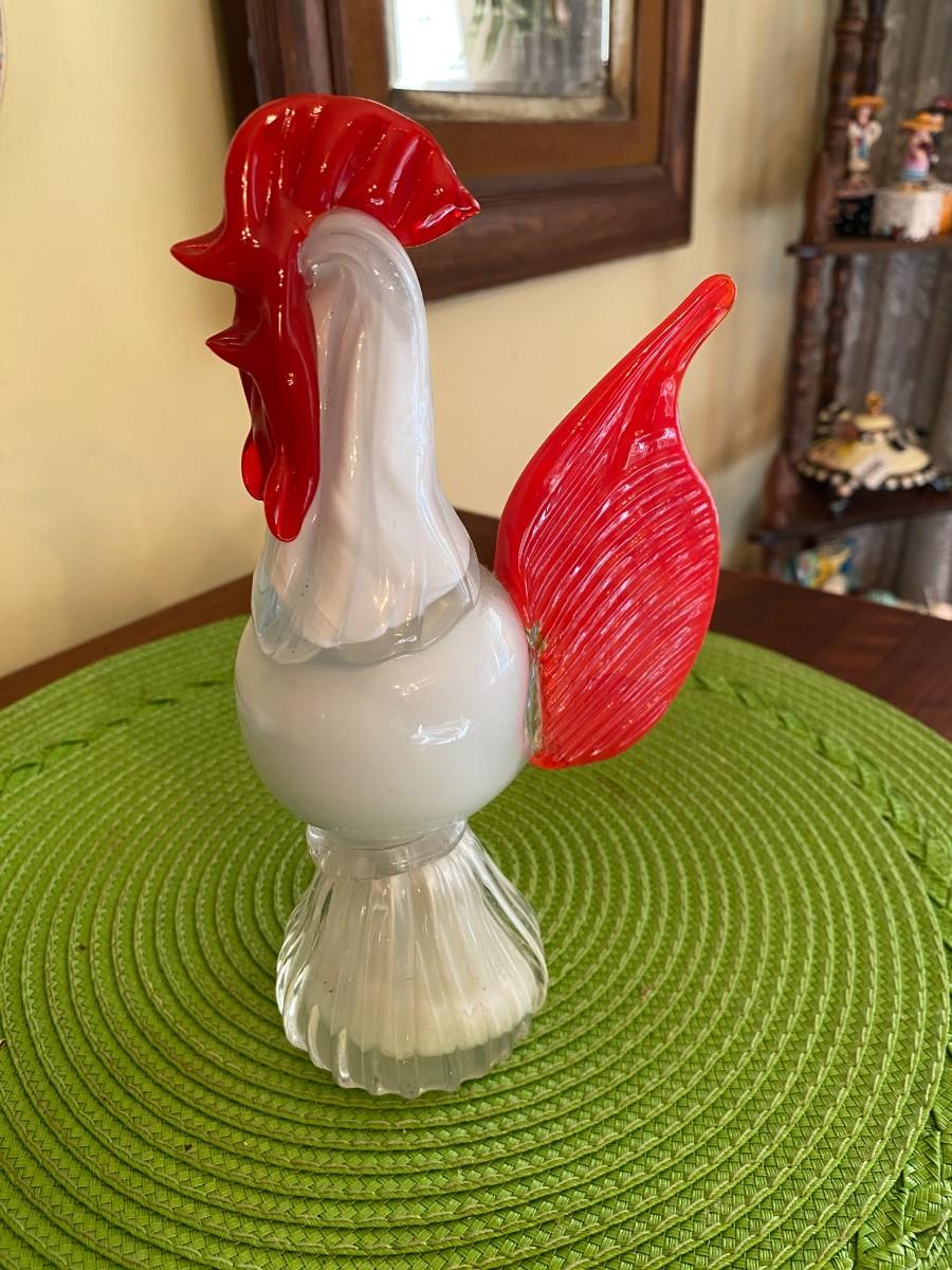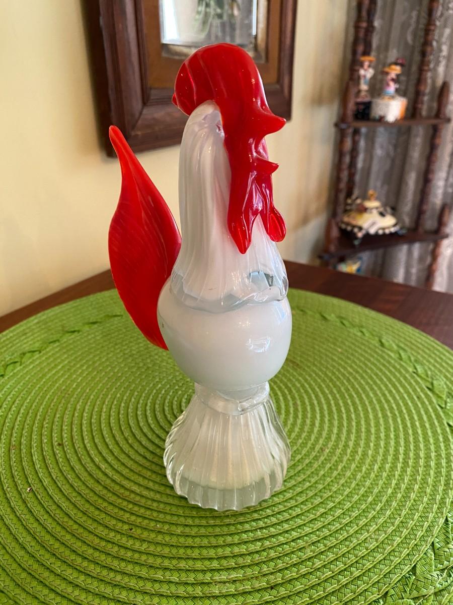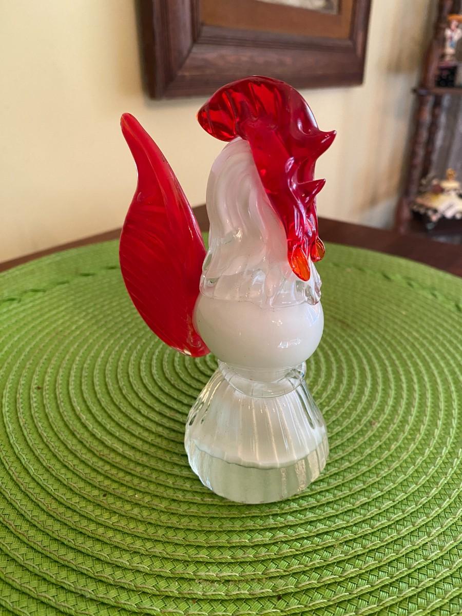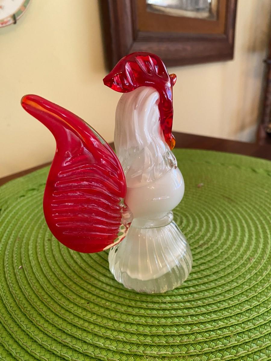 Fun pair of Vintage Murano Red and White Art Glass Chickens / Roosters