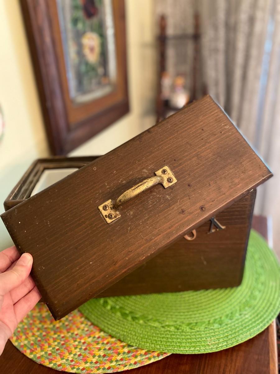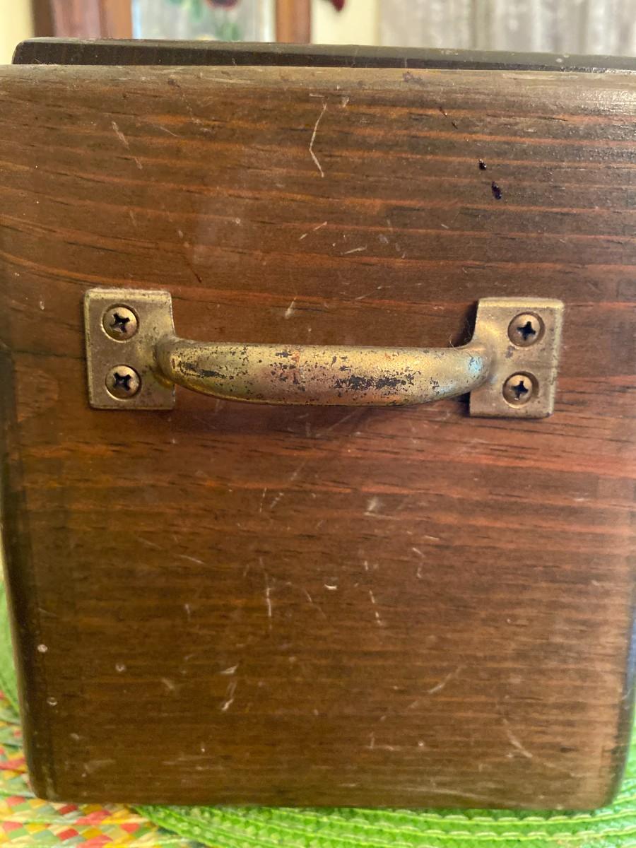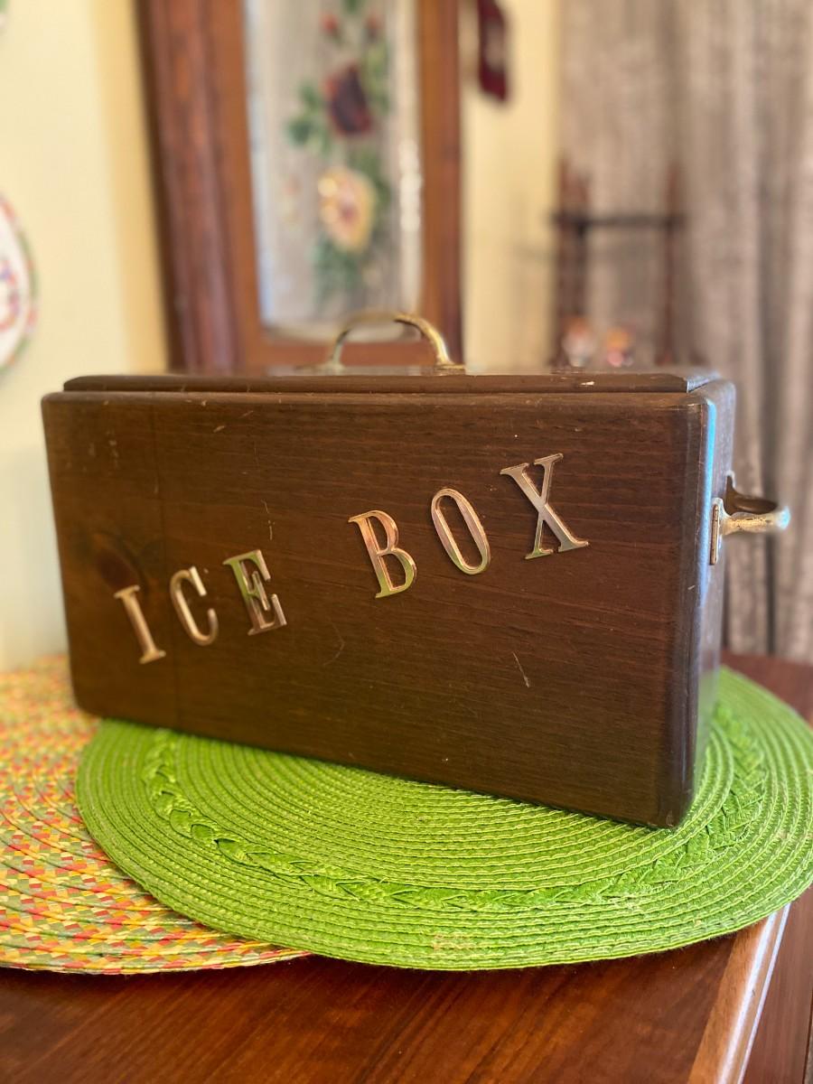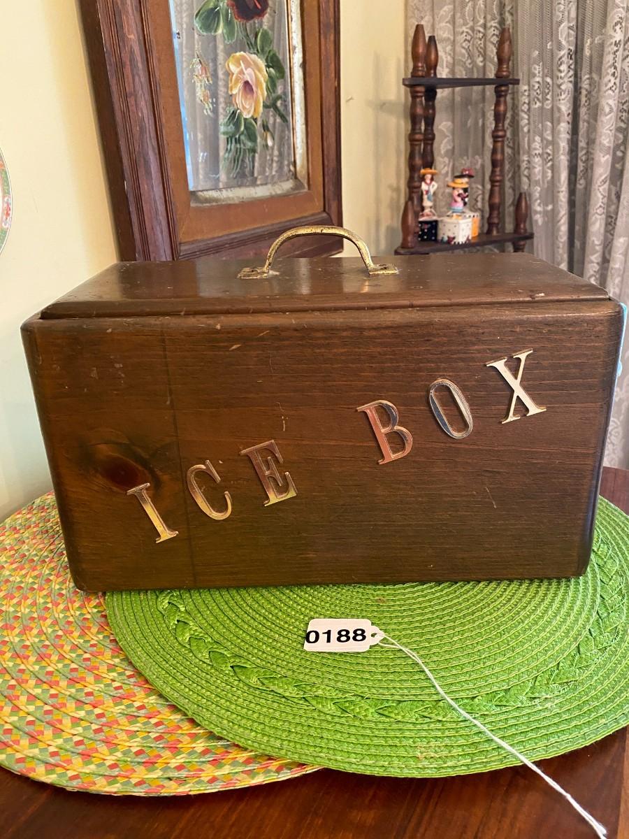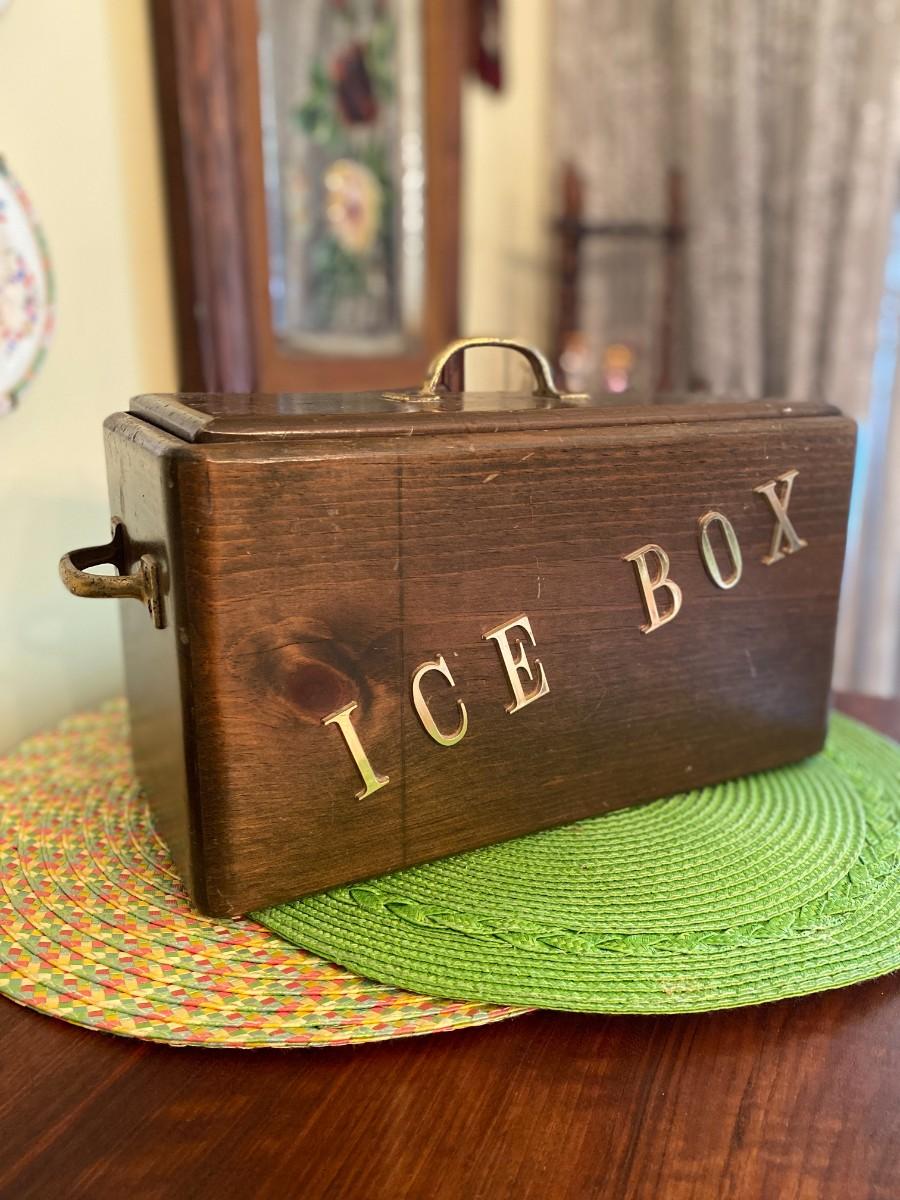 Vintage Wooden Ice Bucket with Brass Letters and Hardware