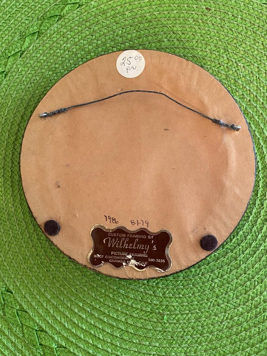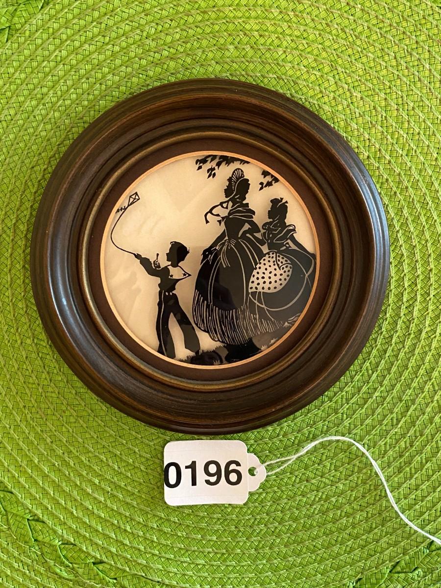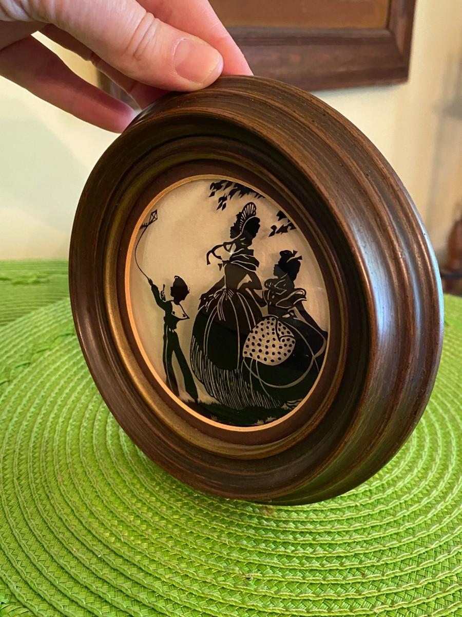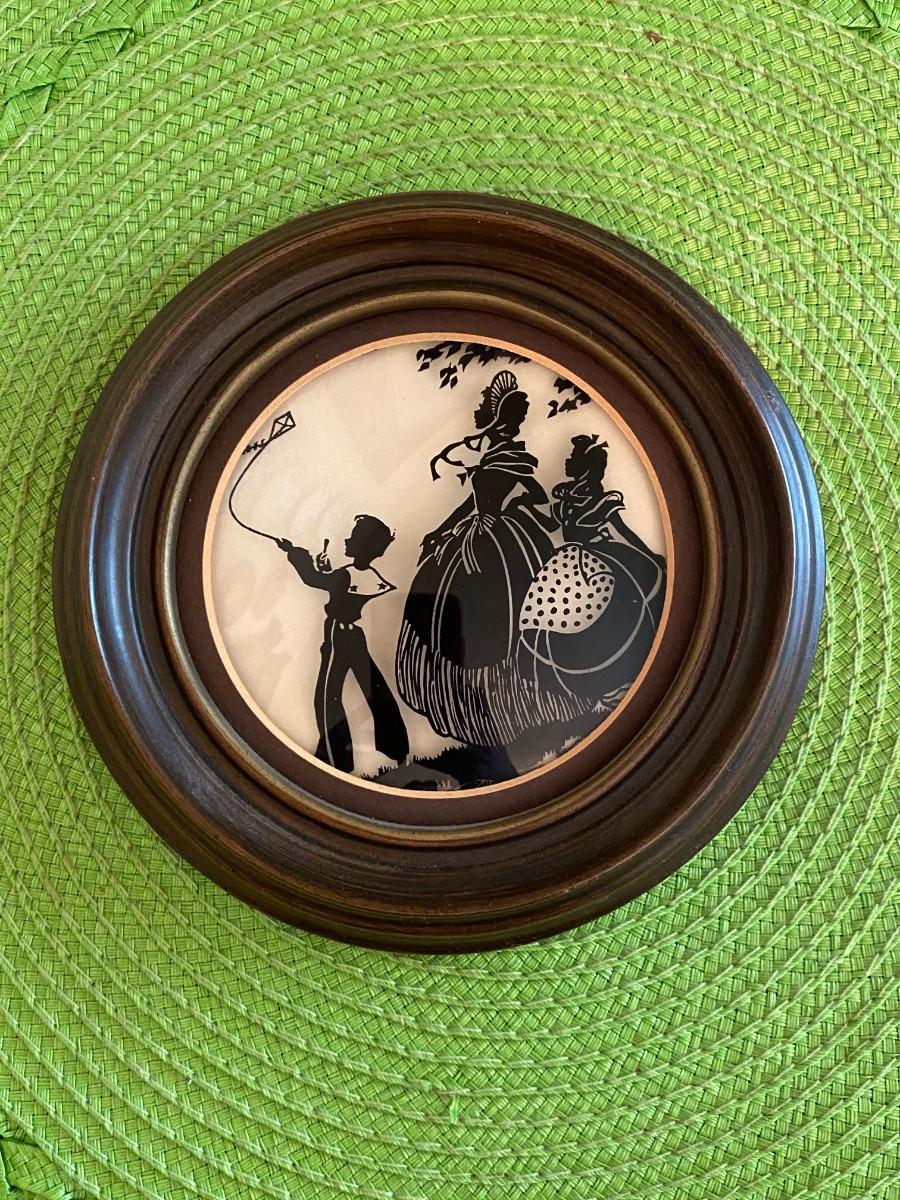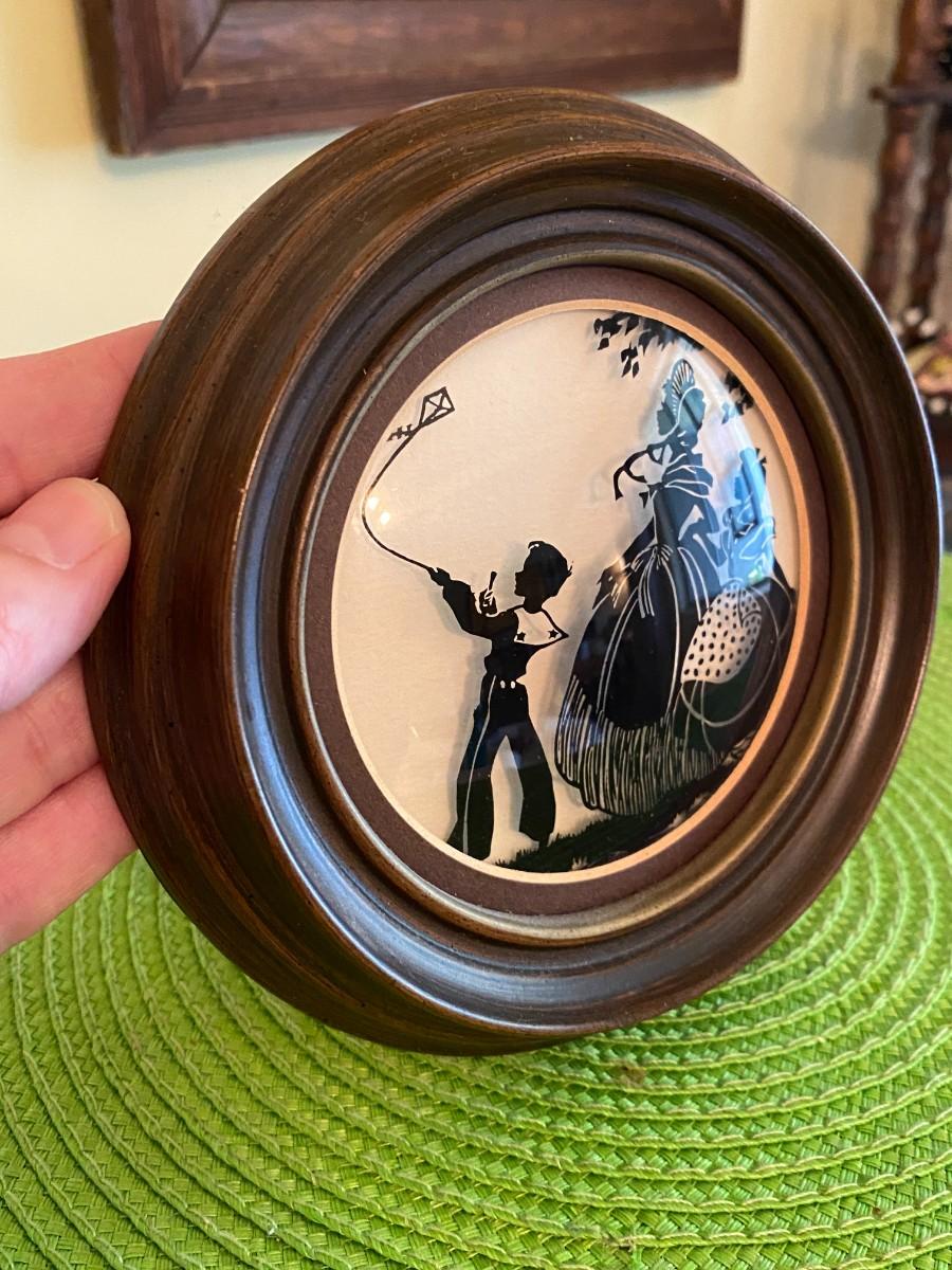 Victorian Silhouette  Reverse Painting on Convex Glass Boy with Kite