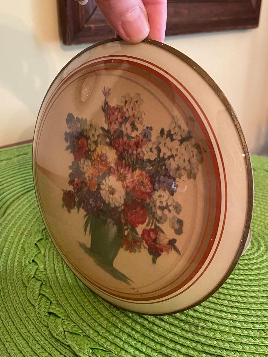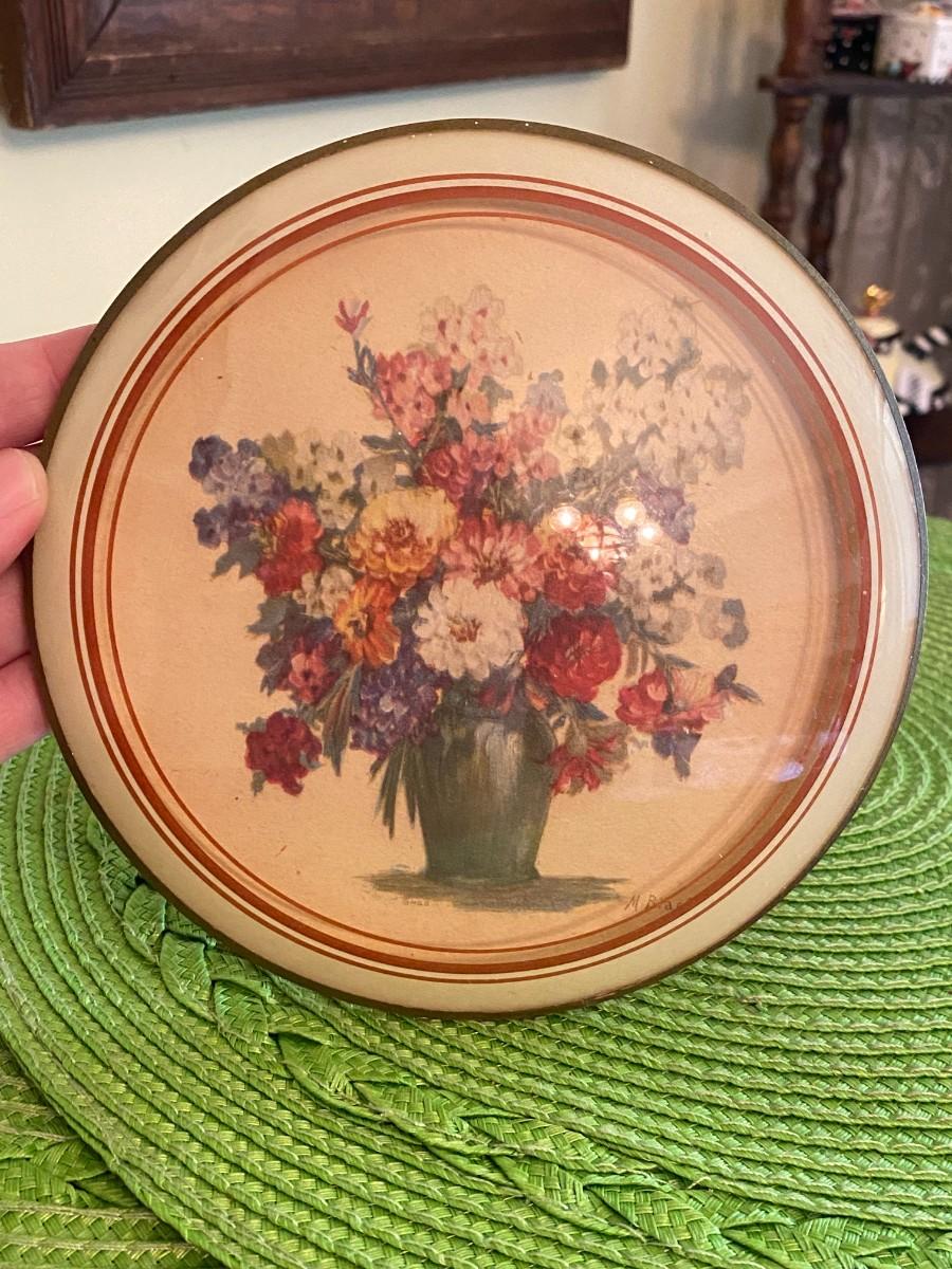 Vintage Convex Glass Peter Watsons Studio Floral Wall Art 1940's