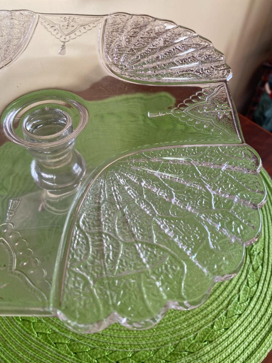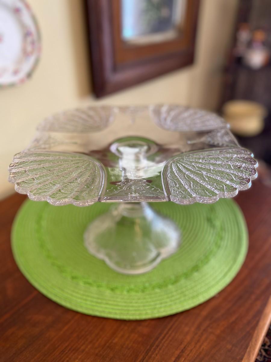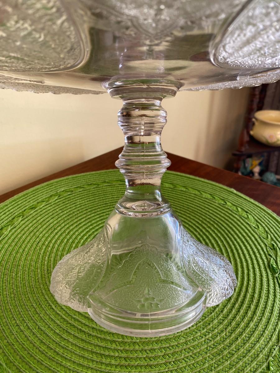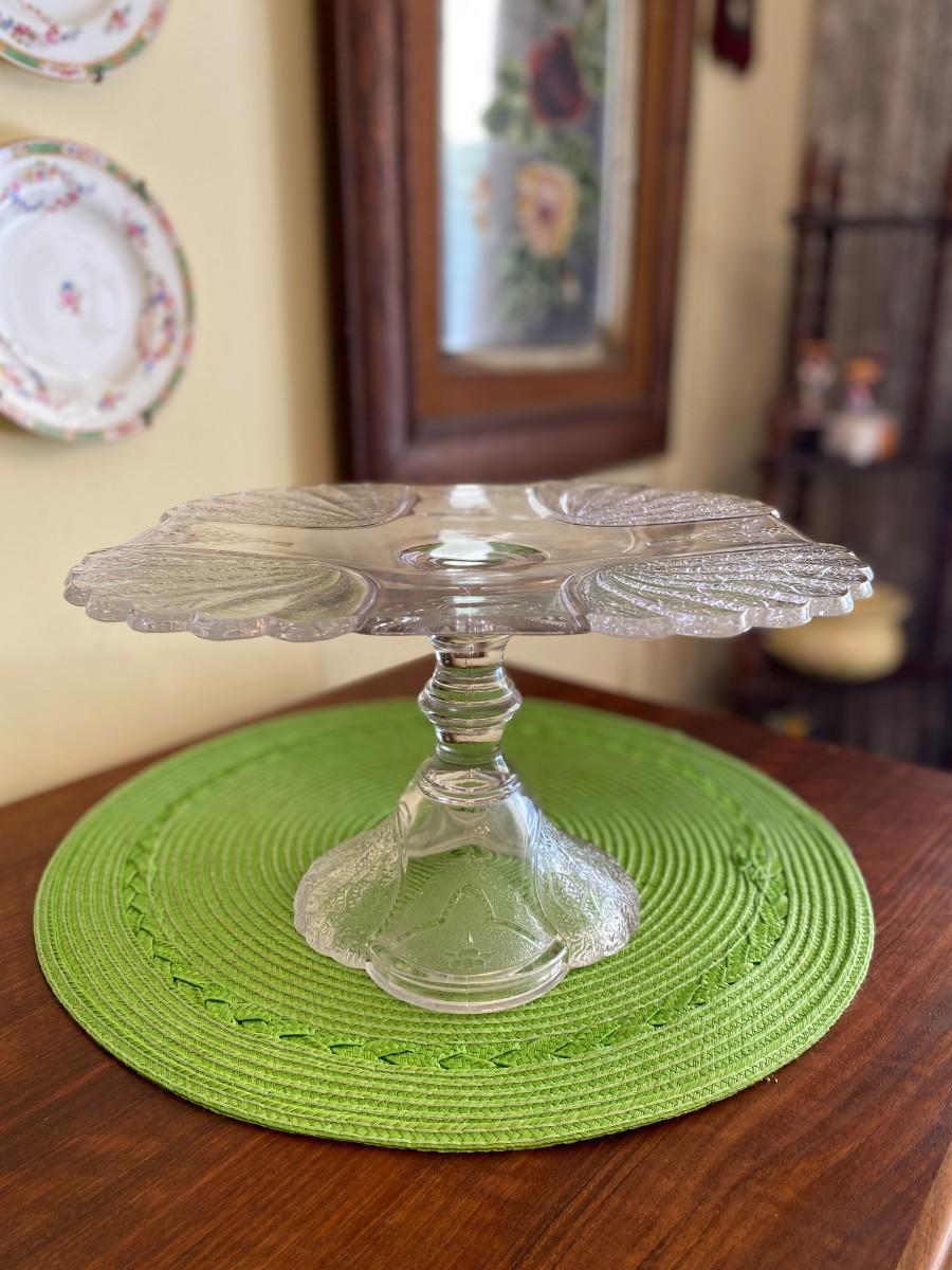 Stunning Antique Duncan and Sons Shell and Tassel Clear Glass Cake / Dessert Plate