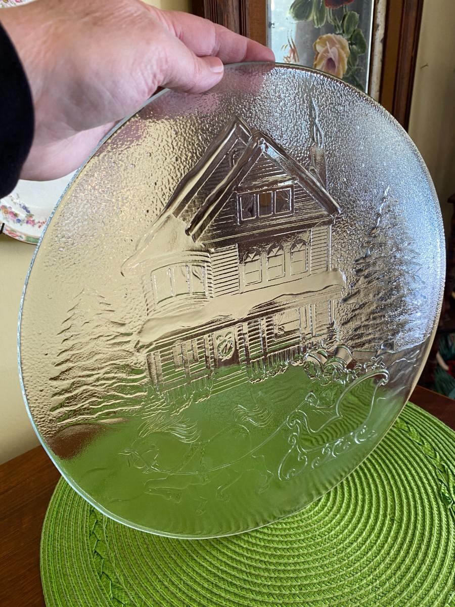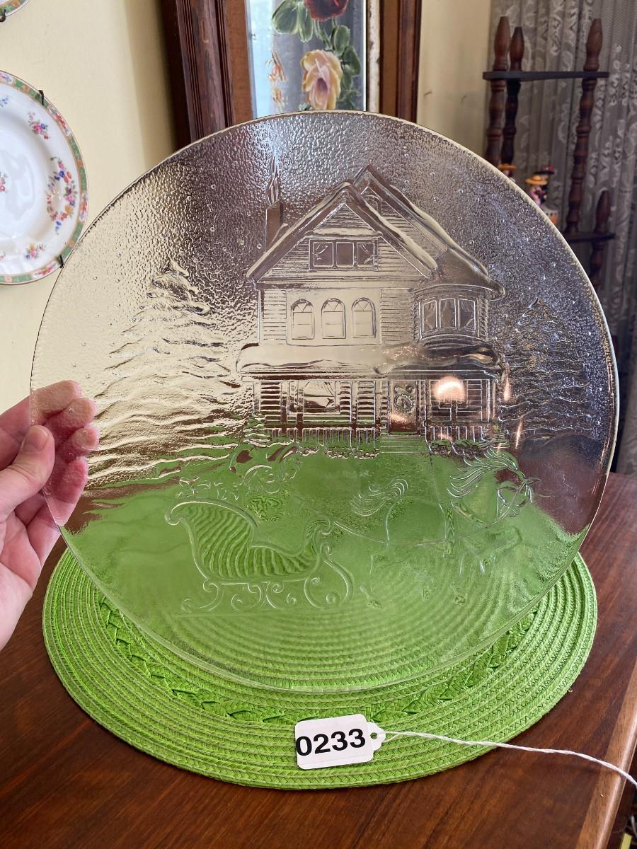 Vintage Clear Glass Christmas Sleigh Ride Platter by Libby