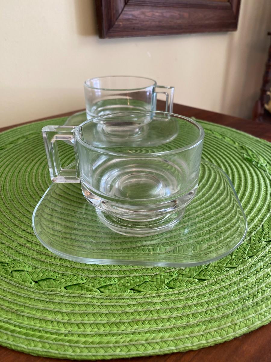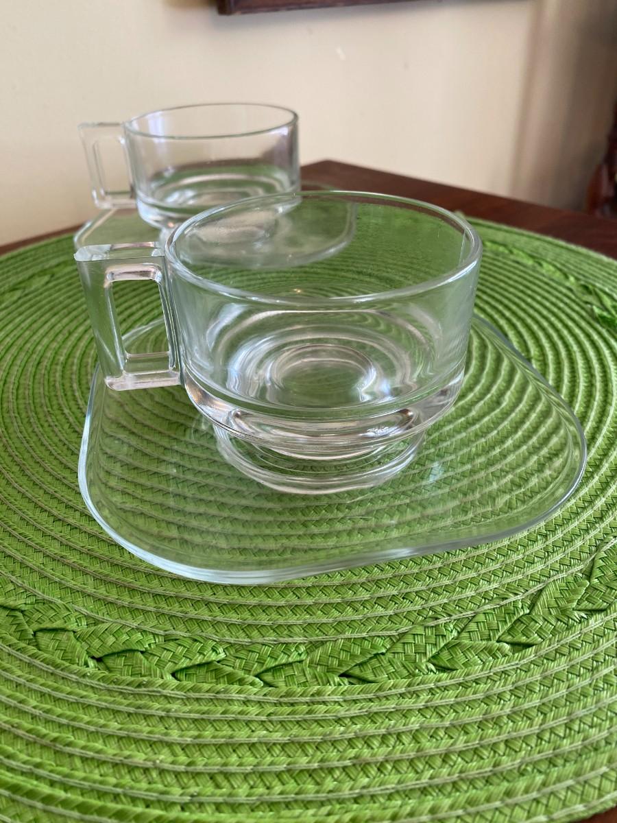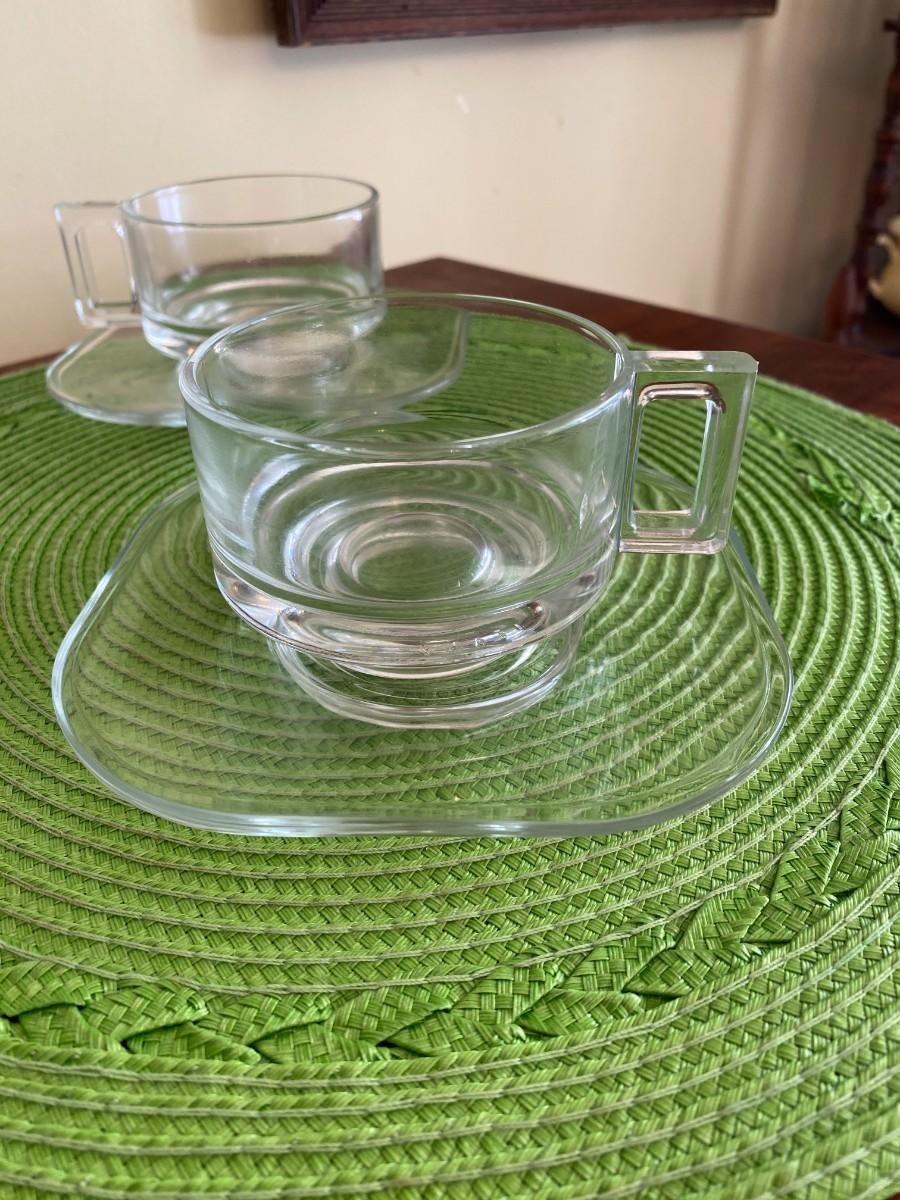 Art Deco Joe Colombo Italora Arno Clear Glass Cup and Saucer Set 1