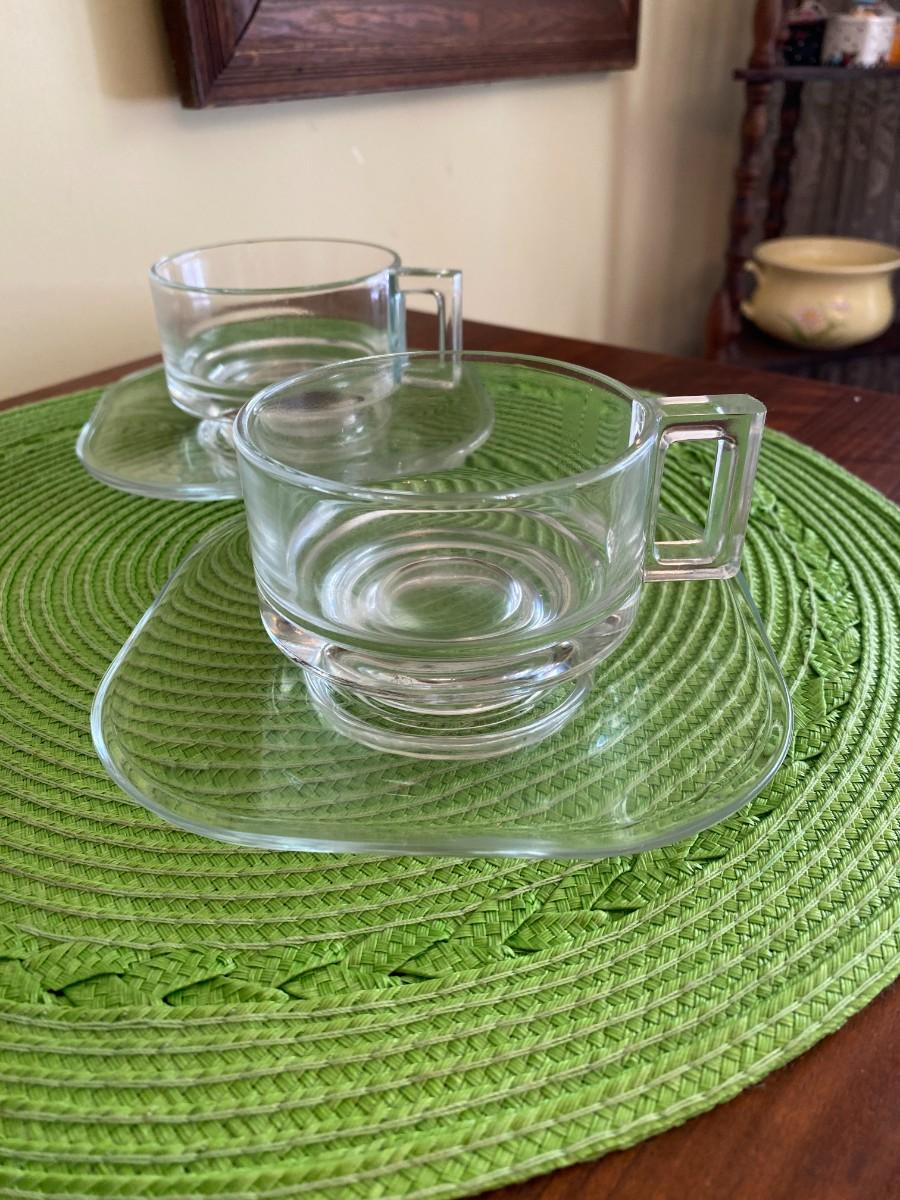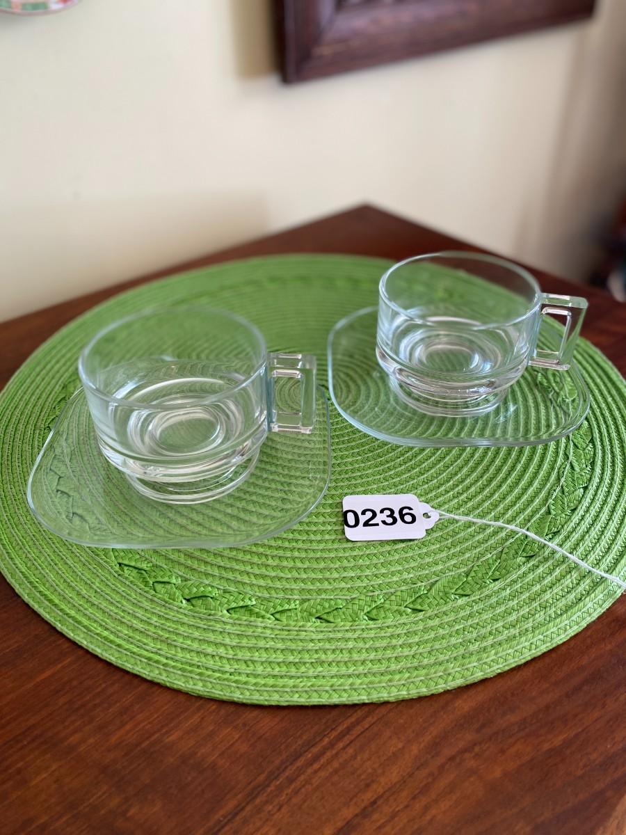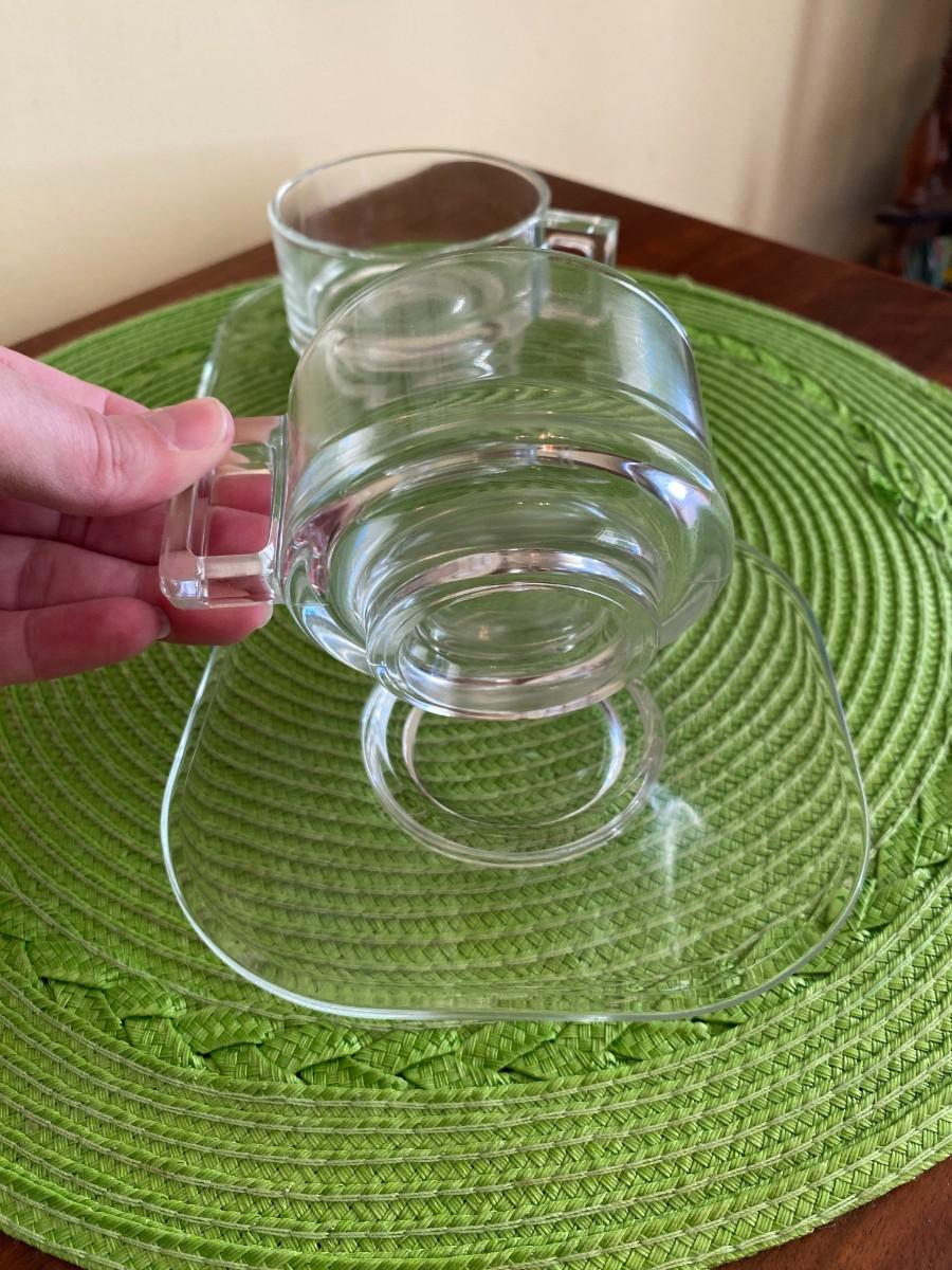 Art Deco Joe Colombo Italora Arno Clear Glass Cup and Saucer Set 1
