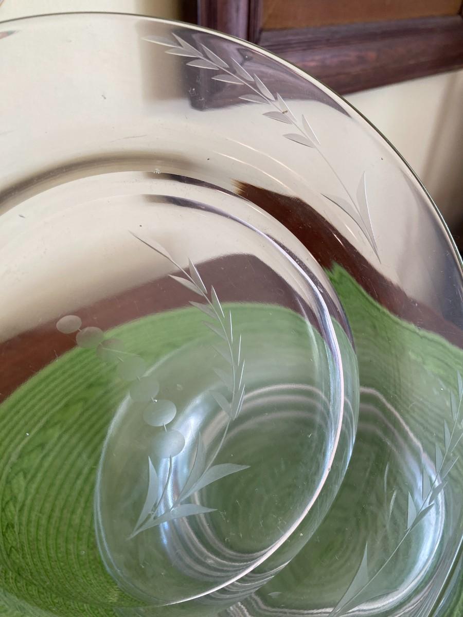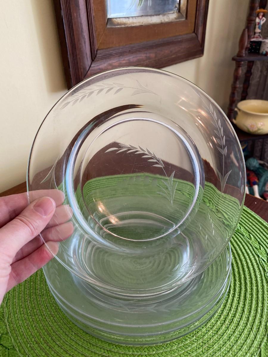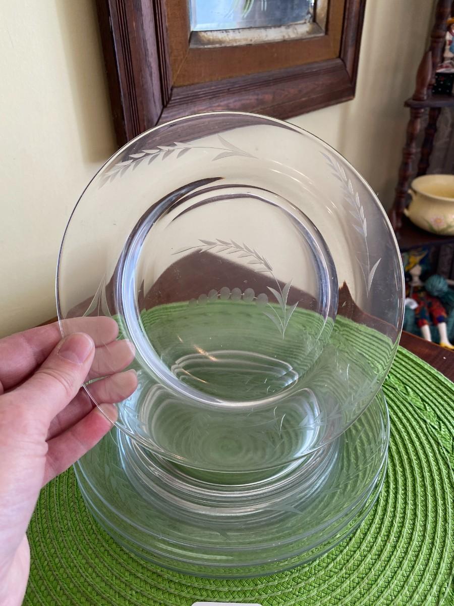 Vintage Clear Glass Salad Plates with Etched Wheat Pattern Set 1