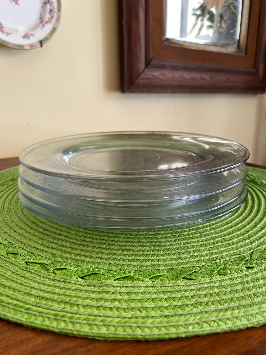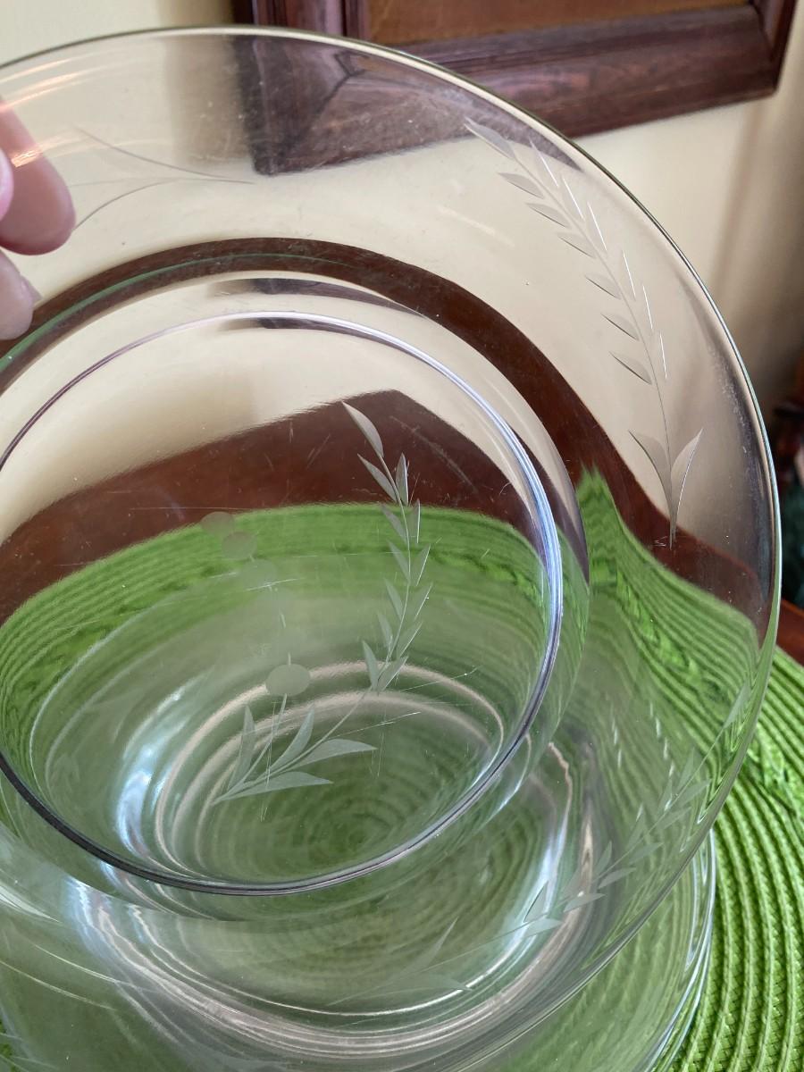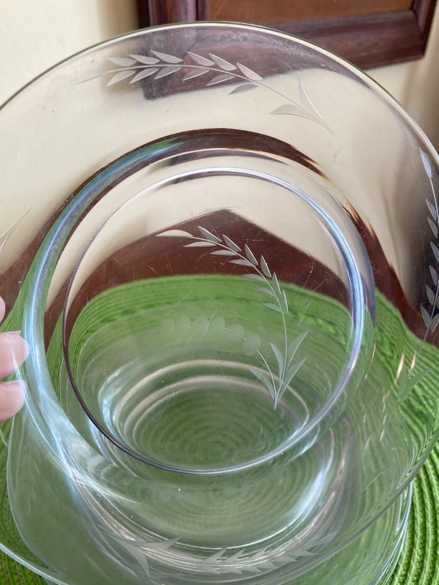 Vintage Clear Glass Salad Plates with Etched Wheat Pattern Set 1
