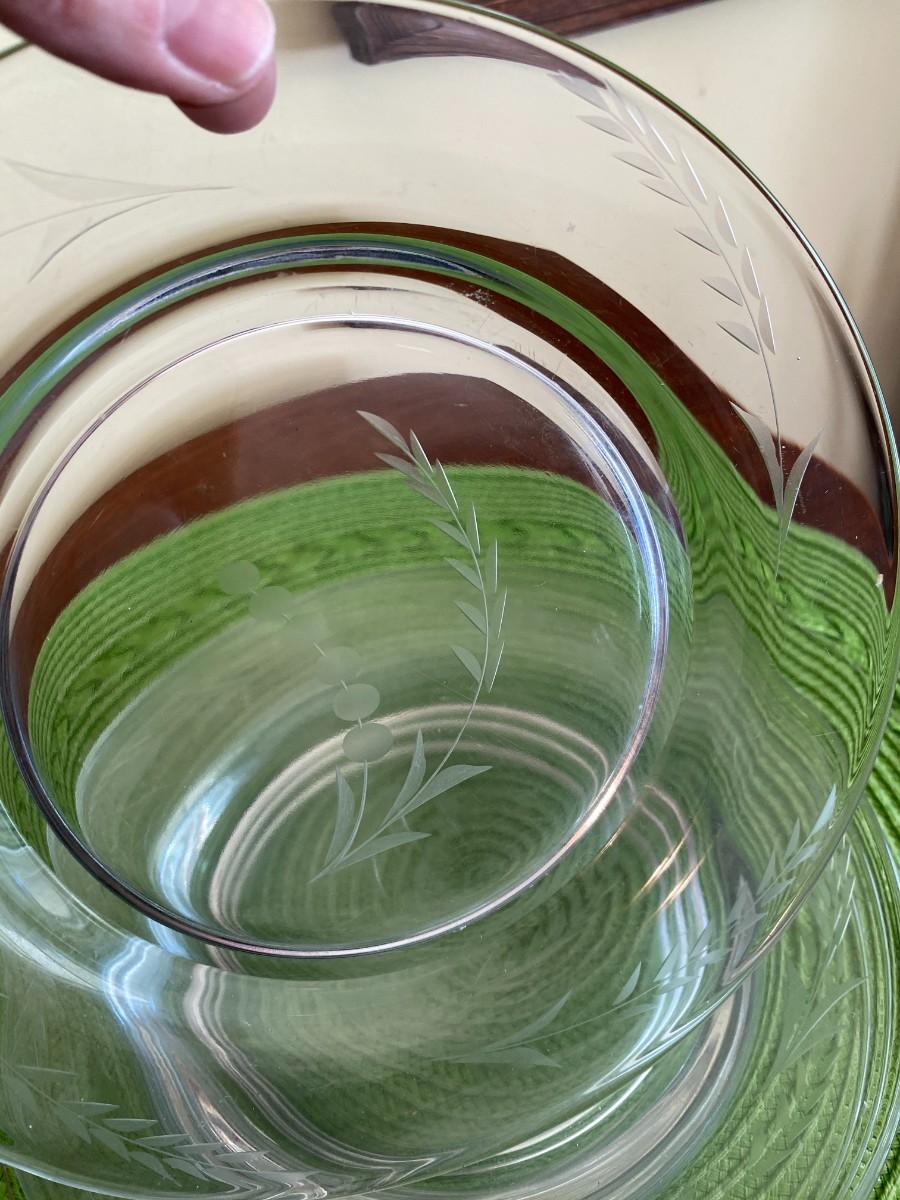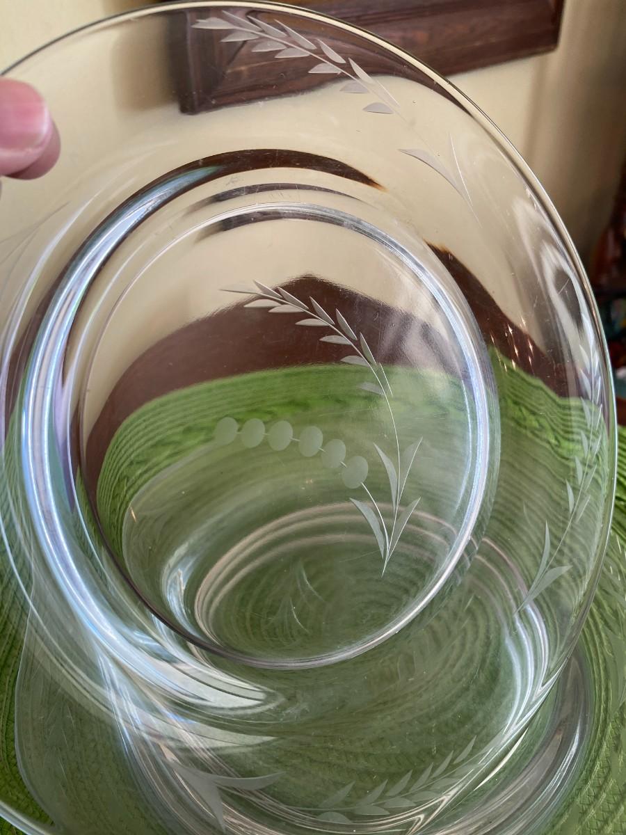 Vintage Clear Glass Salad Plates with Etched Wheat Pattern Set 3