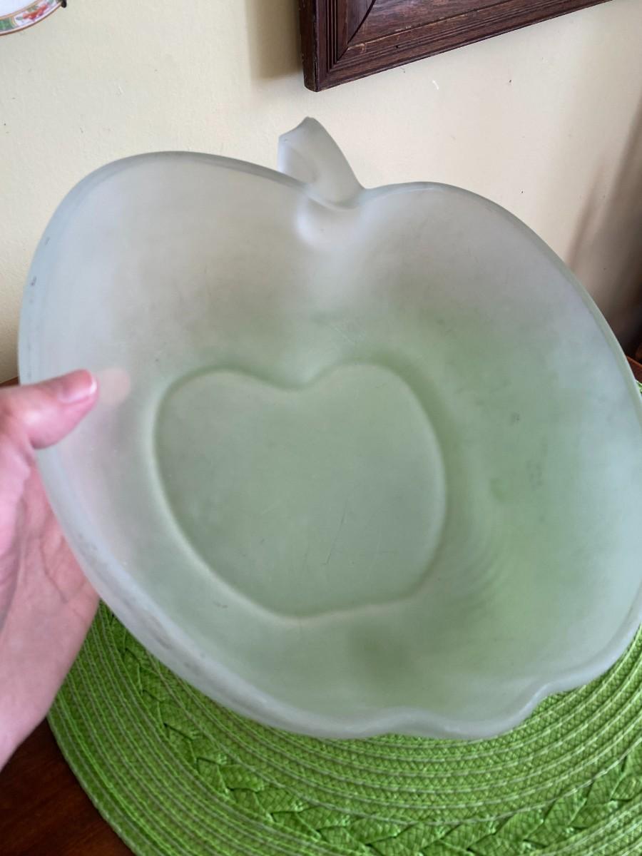 Vintage Large Frosted Glass Apple Serving Bowl