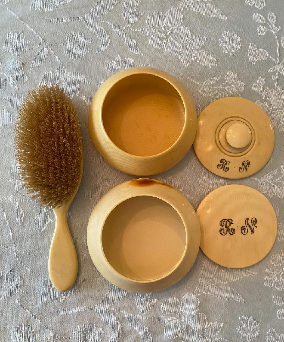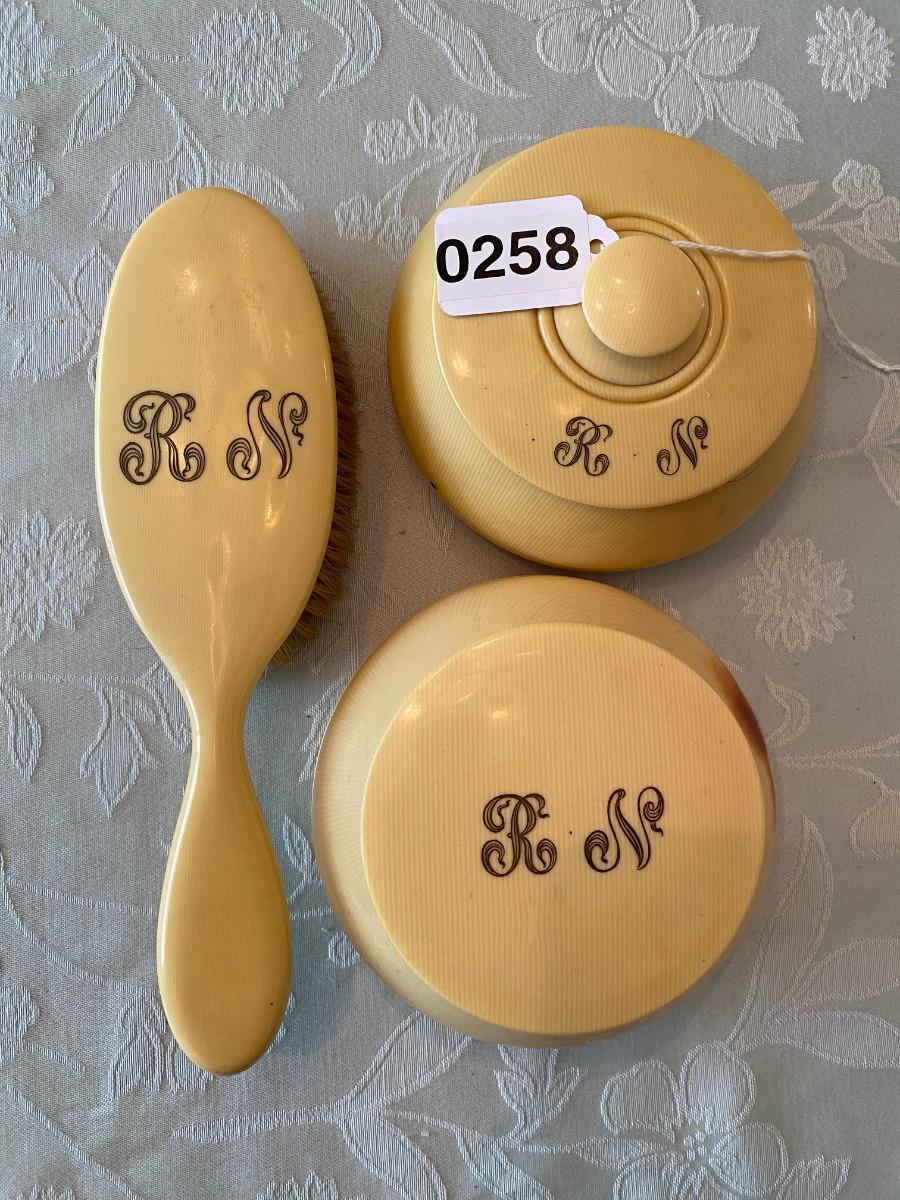 Art Deco Bakelite / Celluloid 3 Piece Vanity Set RN Monogram
