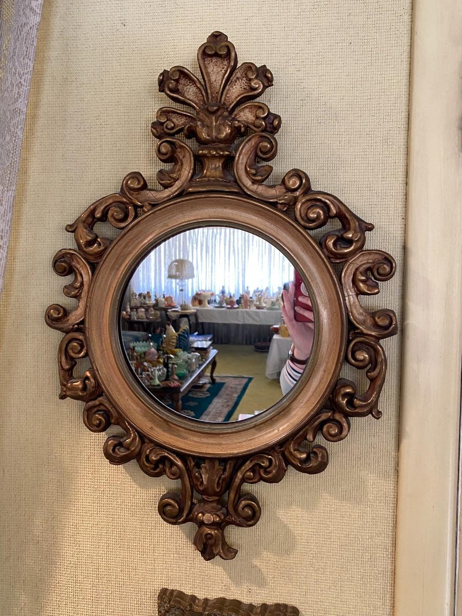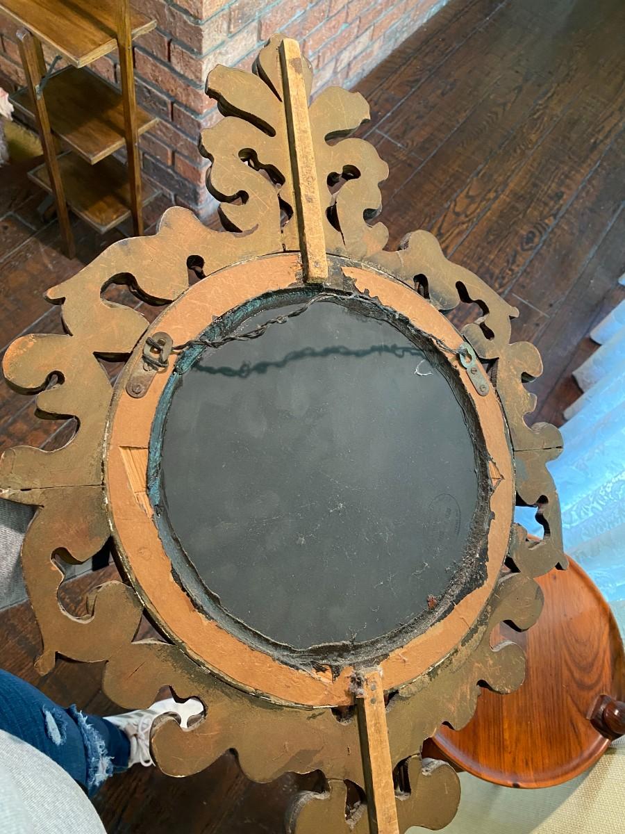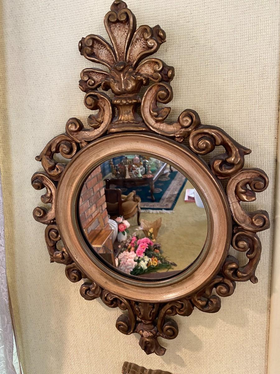 Antique Round Mirror with Hand Carved Baroque Gilt Frame