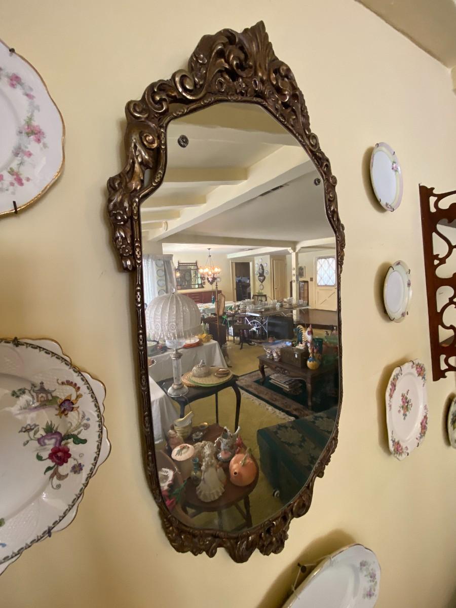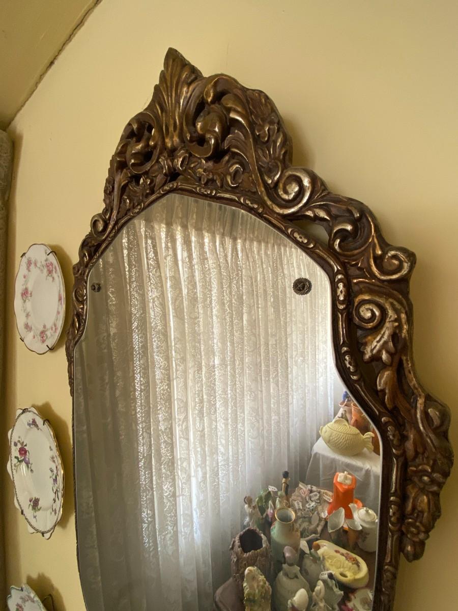 Antique Nurre Maestro Mirror with Hand Carved Wood Frame