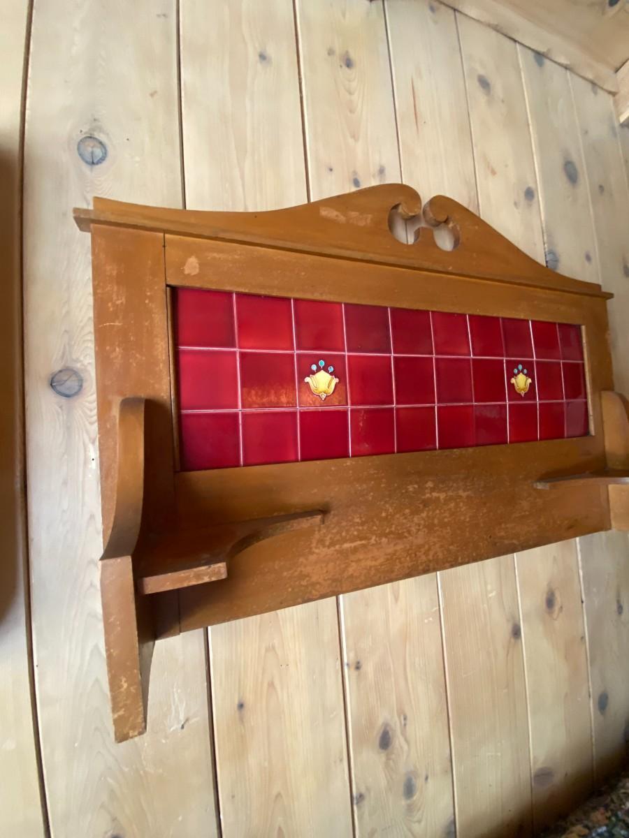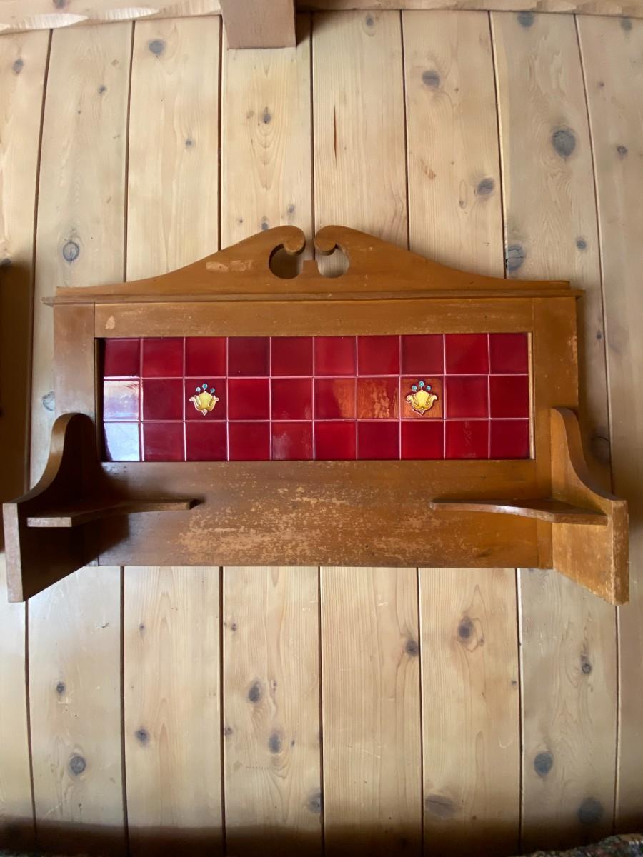 Vintage Wood with Corner Shelves and Red Tile Wall Art