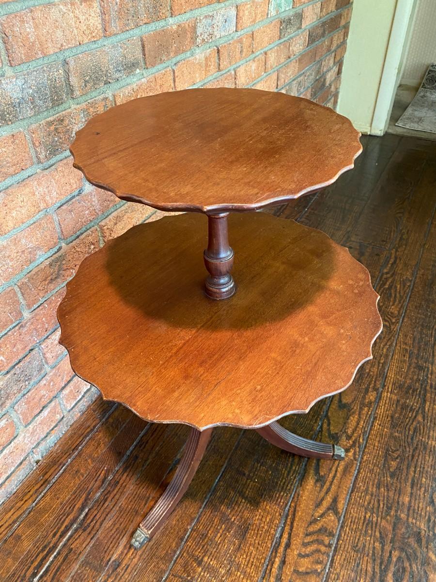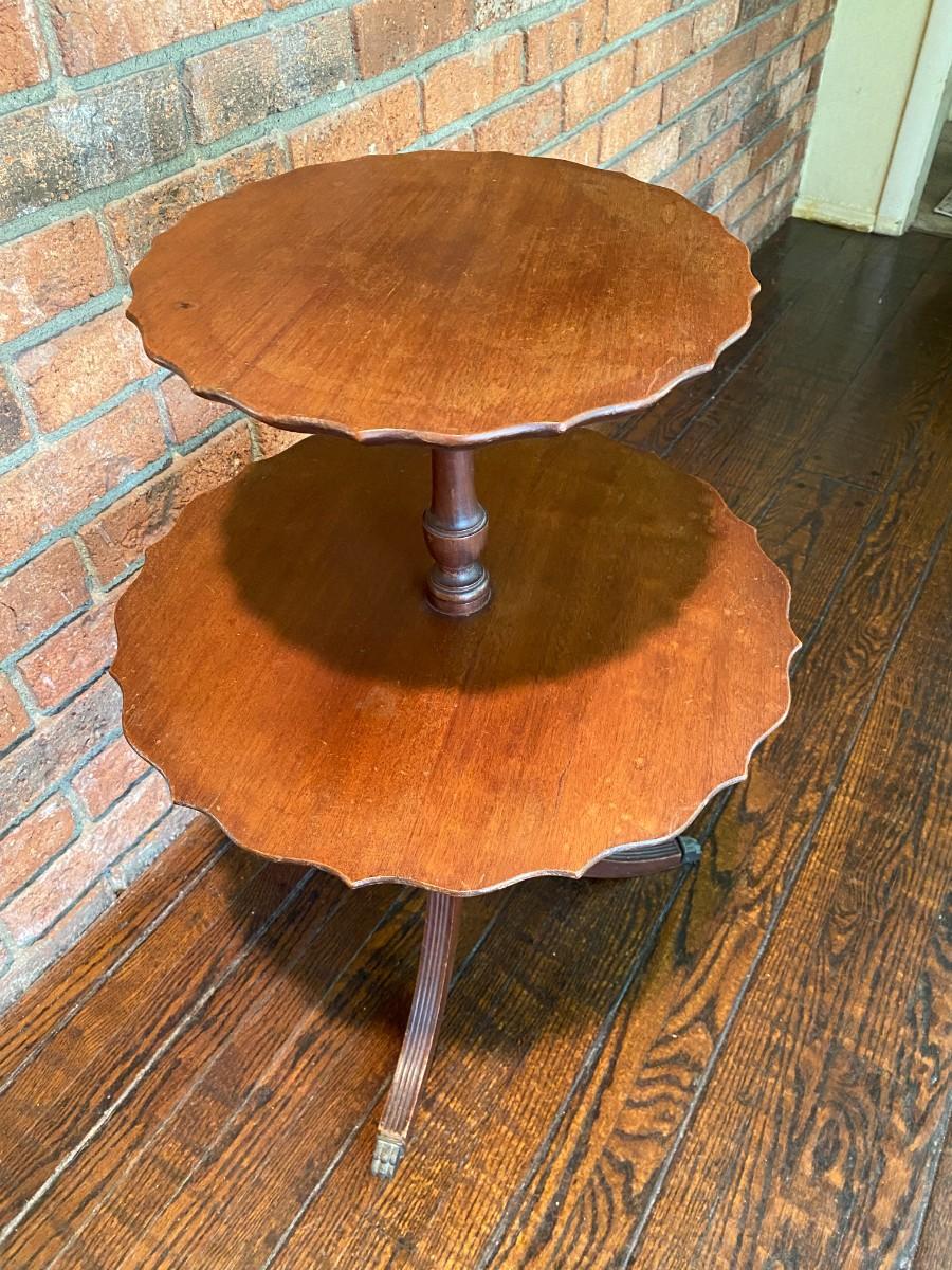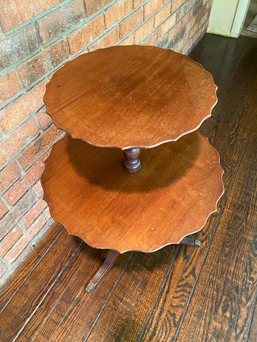 Antique Vintage 2 Tier Dumbwaiter Pie Crust Table