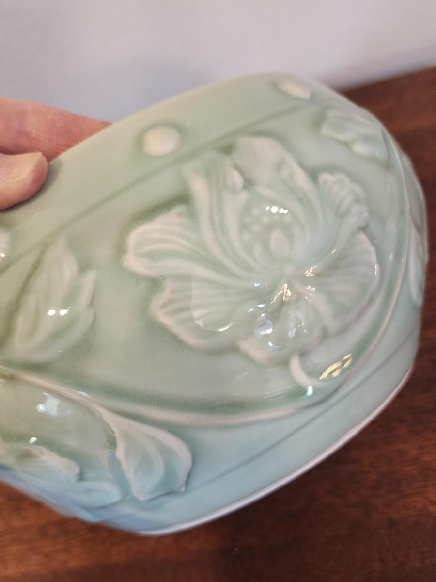 Large 10" x 5" Lotus Flower Celadon colored bowl or planter pot - never used. Chinese?