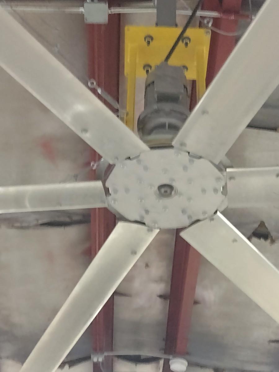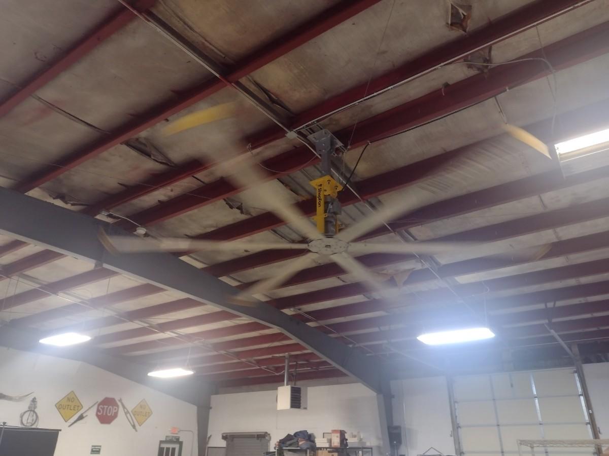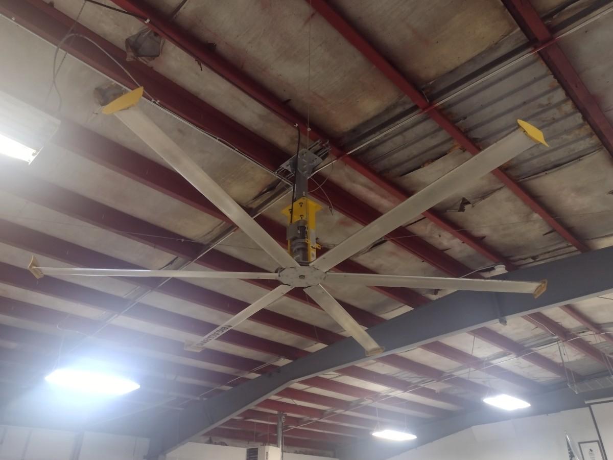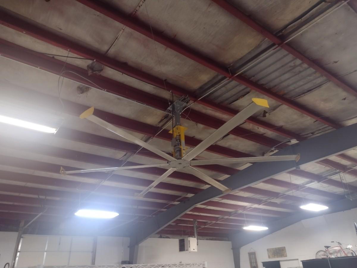 Industrial Warehouse 14' Big As@ Variable Speed Control Box with 110 Wall Plug-In. This is not a hard-wired fan designed to be easily moved to various locations in the shop as needed. Bring help and appropriate ladders to remove from ceiling.