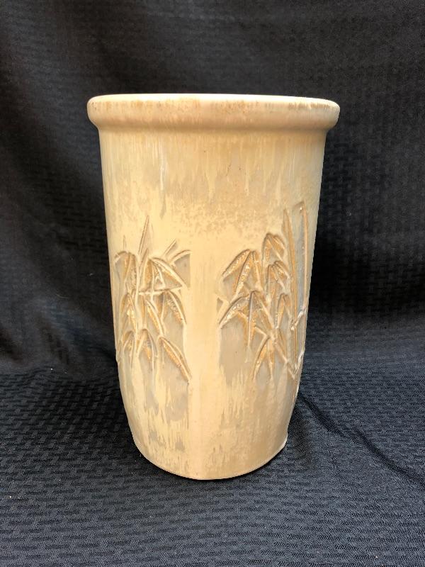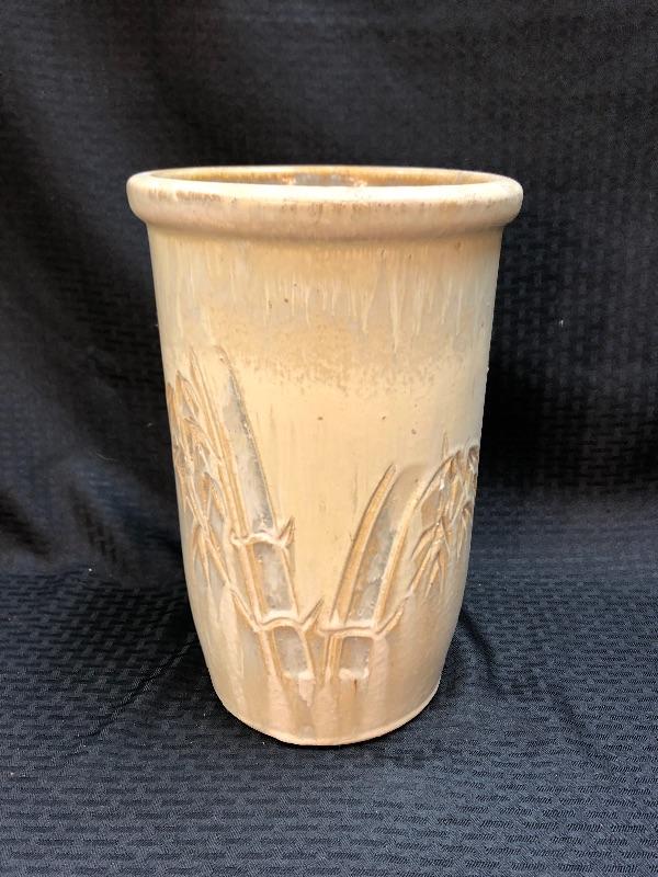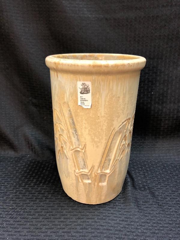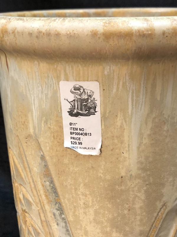 11" bamboo stamped planter pot. Has a light dripware effect to the pottery. Good condition, still has an original sales tag attached.