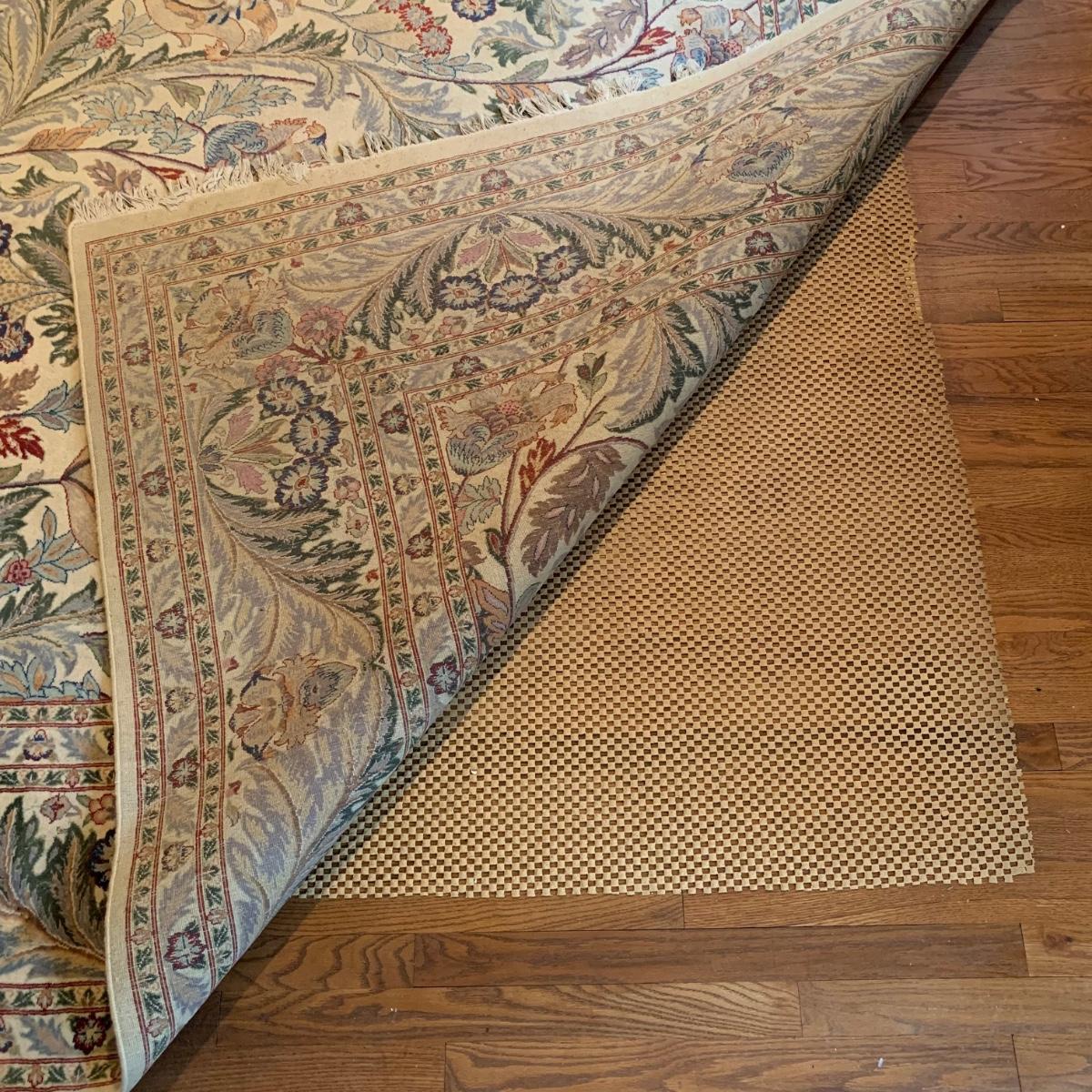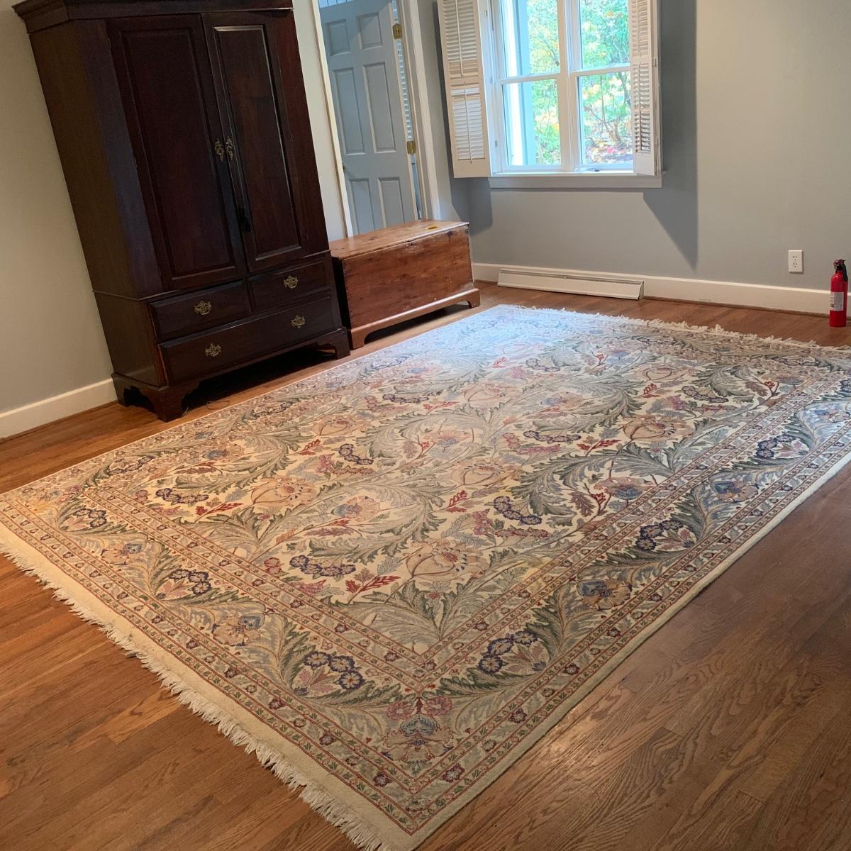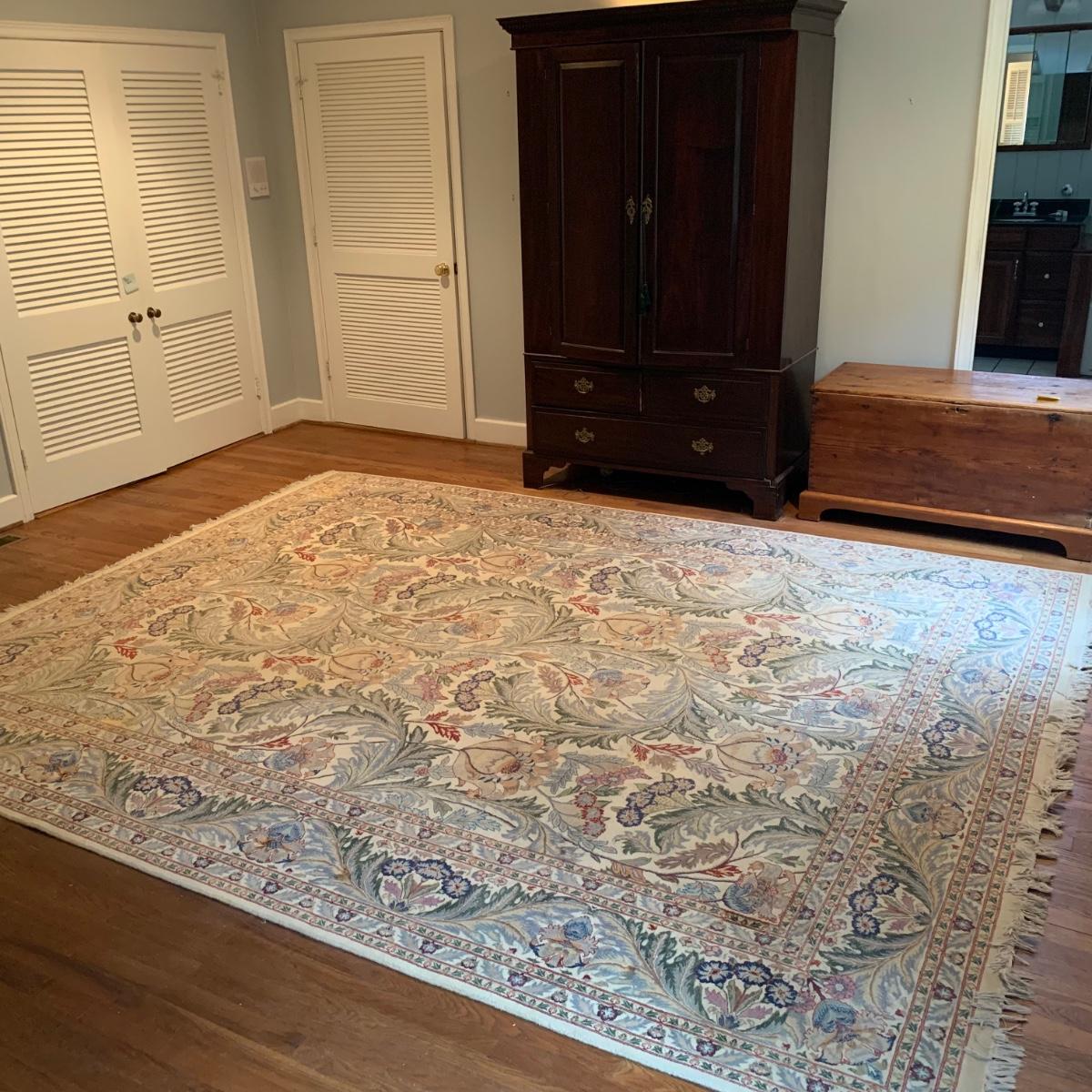 Beautiful large 11’5” x 9’2” floral area rug with pad. The rug is in good condition, but could use a little cleaning. See photos for more details. Local pick-up only.