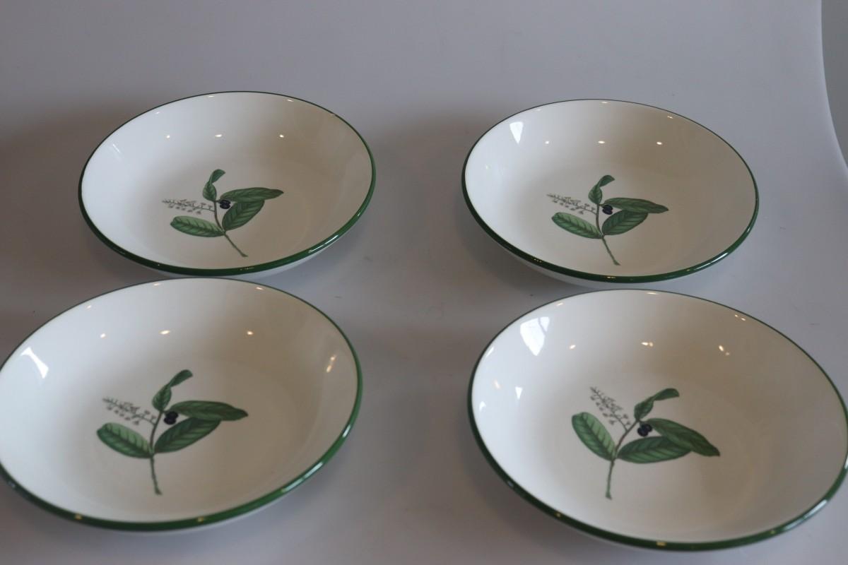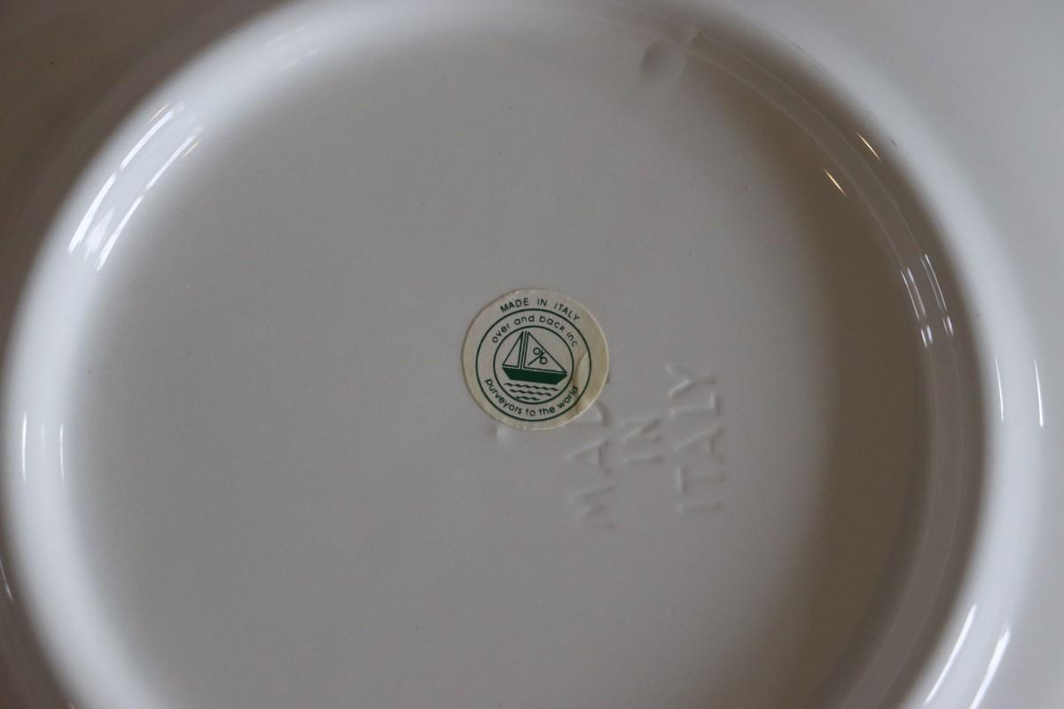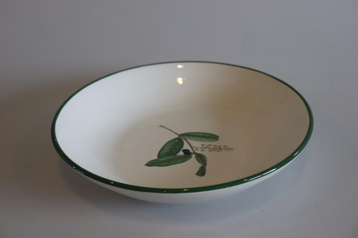 Large 12" Italian Salad/Pasta Bowl, Green Trim, Ribbed Sides, Olive Motif