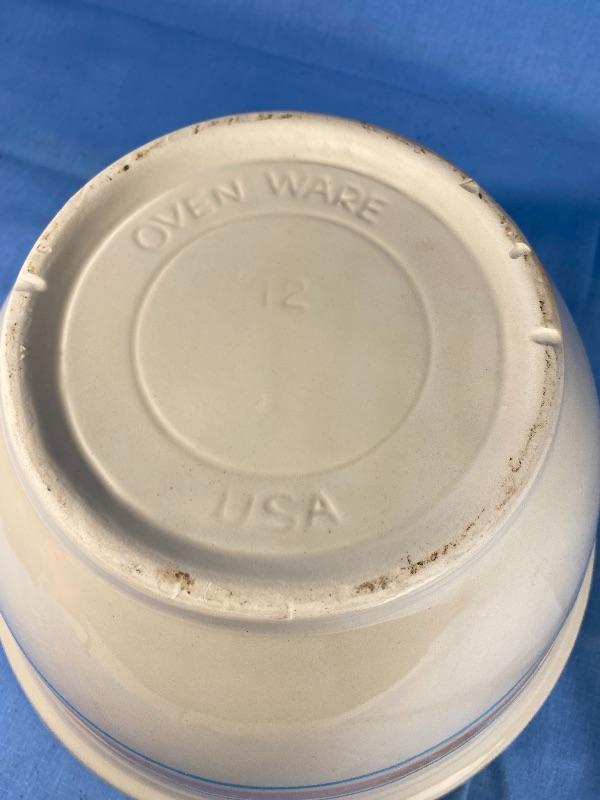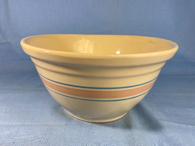 Large 12” WATT Mixing Bowl Pink and Blue Band
