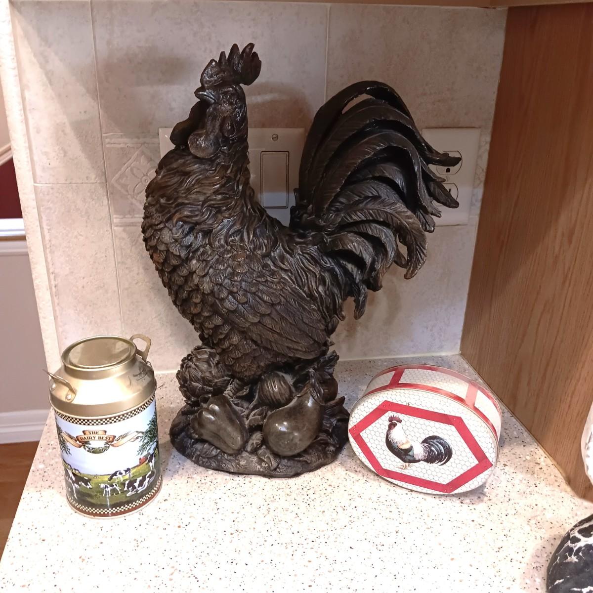 LARGE 15" DECORATIVE ROOSTER AND 2 TINS