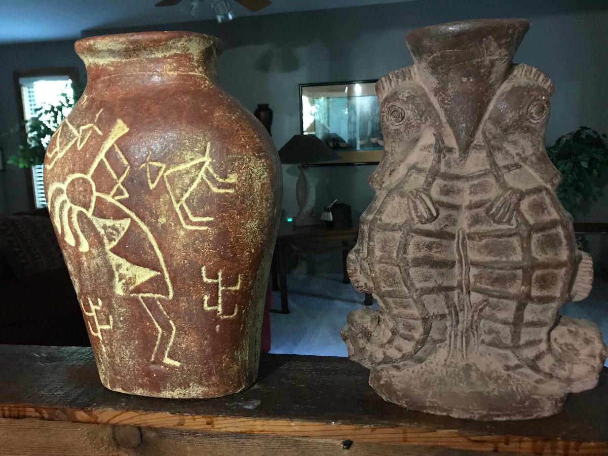 LARGE 2 PC DECO VASES