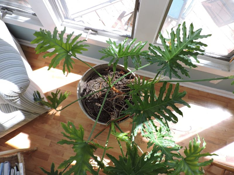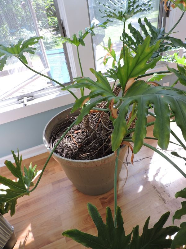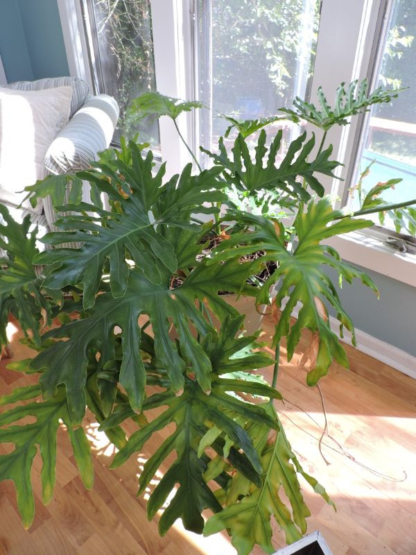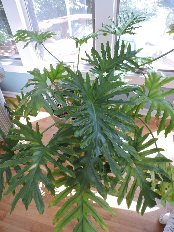 This large potted philodendron needs to find a new home! He has four main trunks, and each have new shoots coming out. The planter is about 21” around and 19” high. He needs a bright room to fill the corner of!