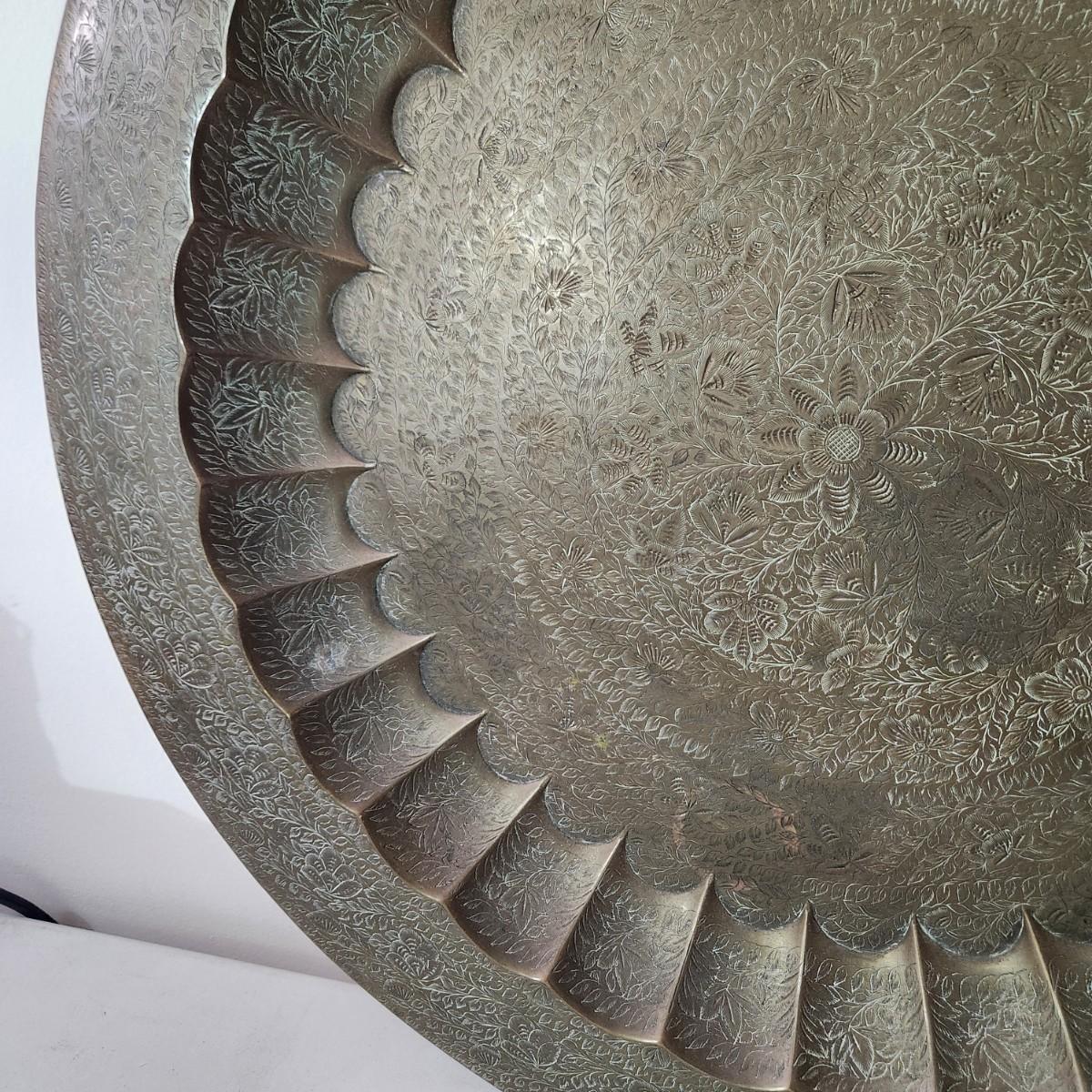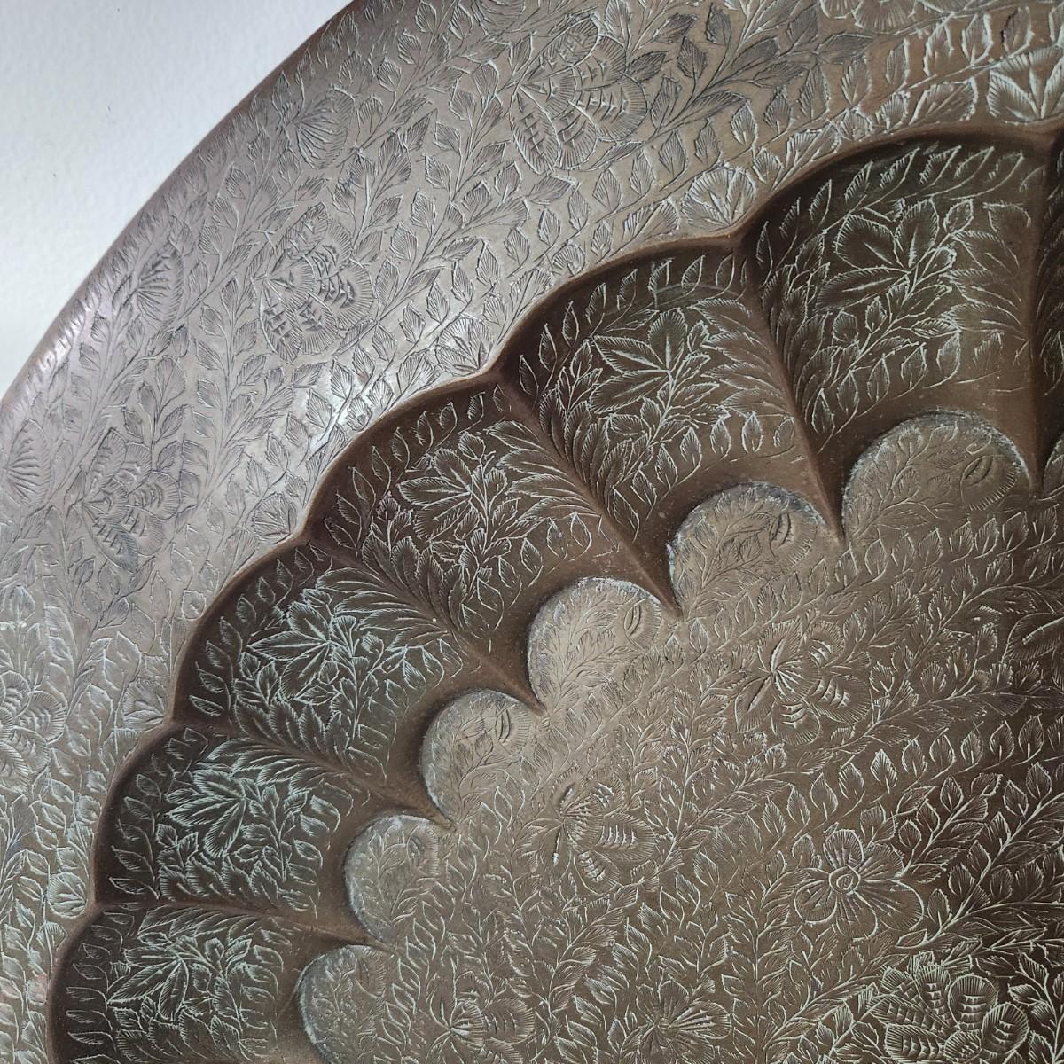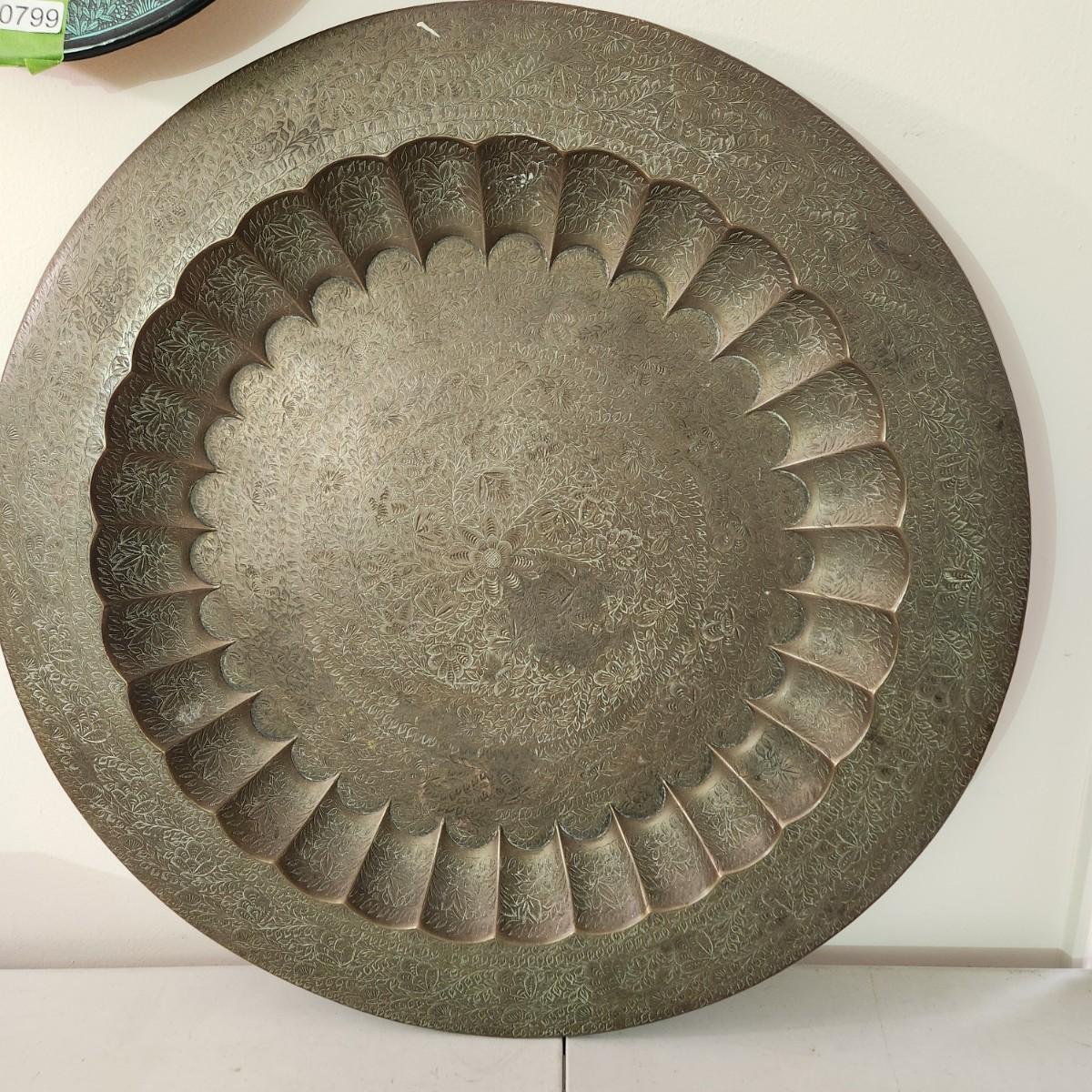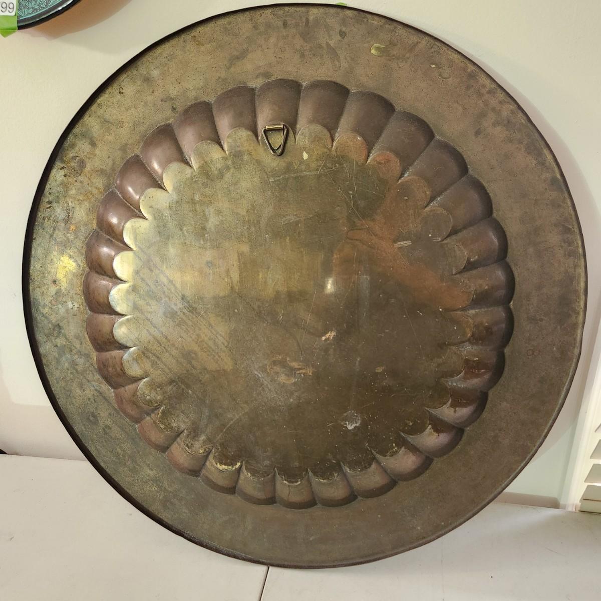 Large 28.5" Diameter Incised Brass Tray Wall Art