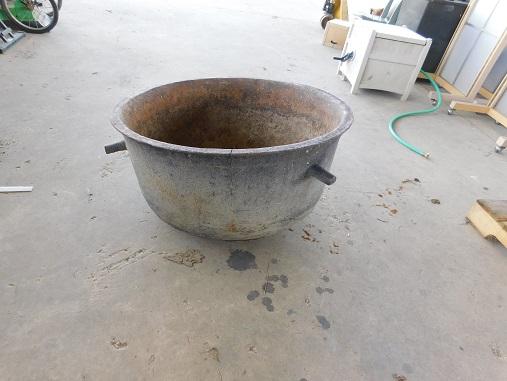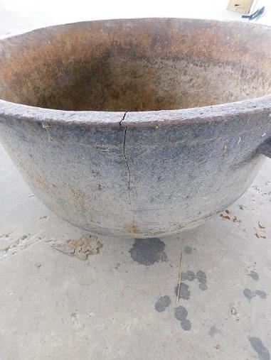 Large 30" x 17" Cast Iron Cauldron has crack on side as shown. Very large and heavy