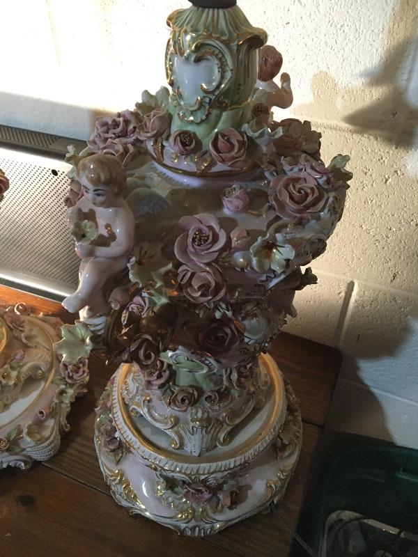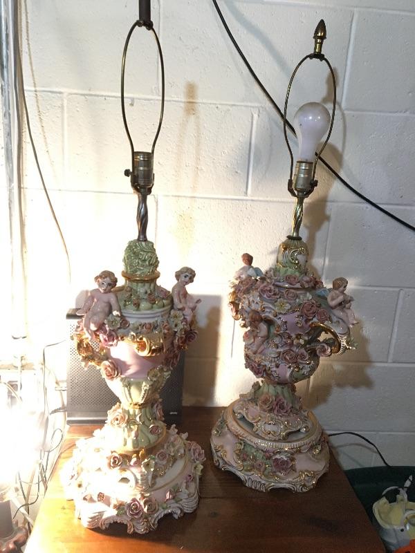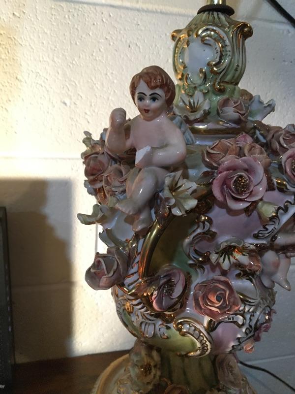 Large 36” Pair of Capodimonte Figural Cherub Lamps. LOT 29