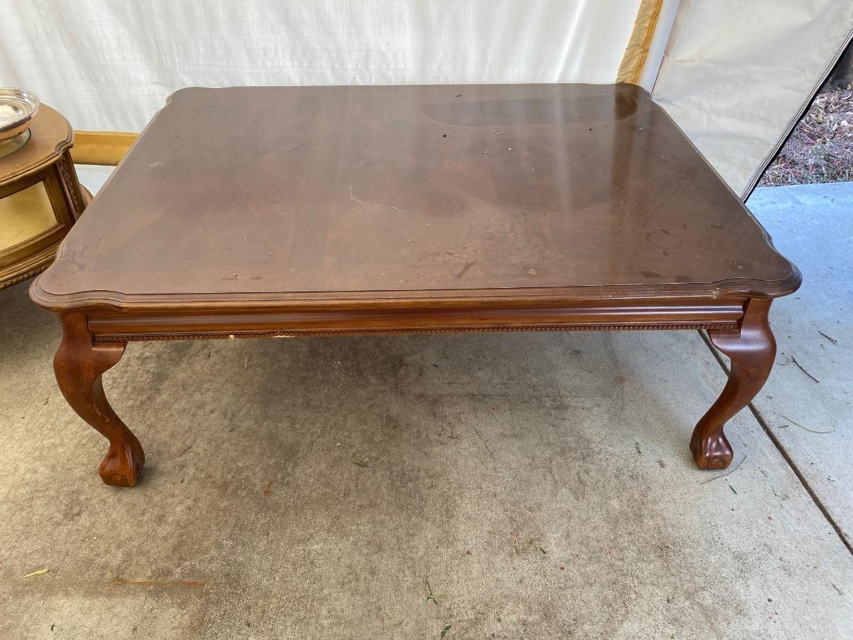 Large 3'x4' Rectangle Wood Coffee Table. Light wear along edges, table surface in good condition. TO BE PICKED UP IN LA HABRA HEIGHTS. WE WILL SCHEDULE PICK UP AFTER JULY 4TH.