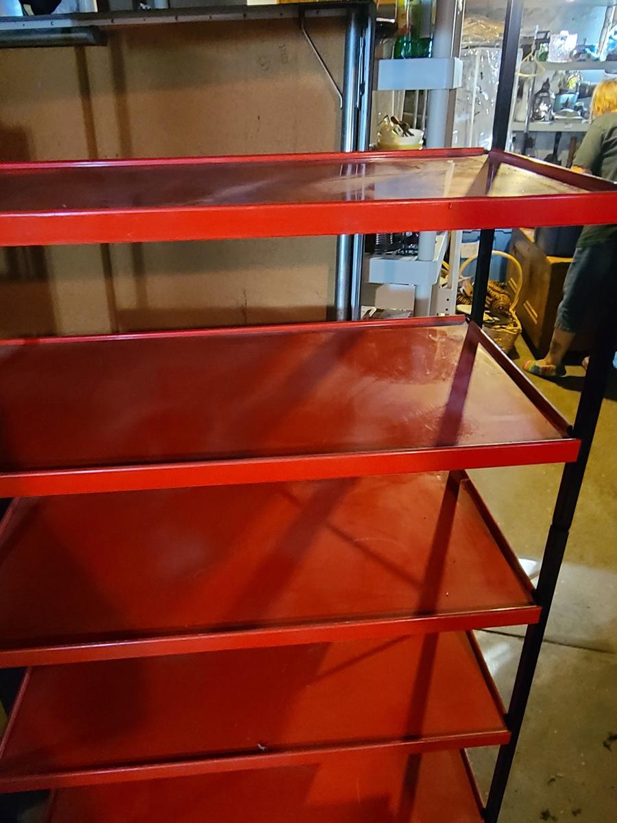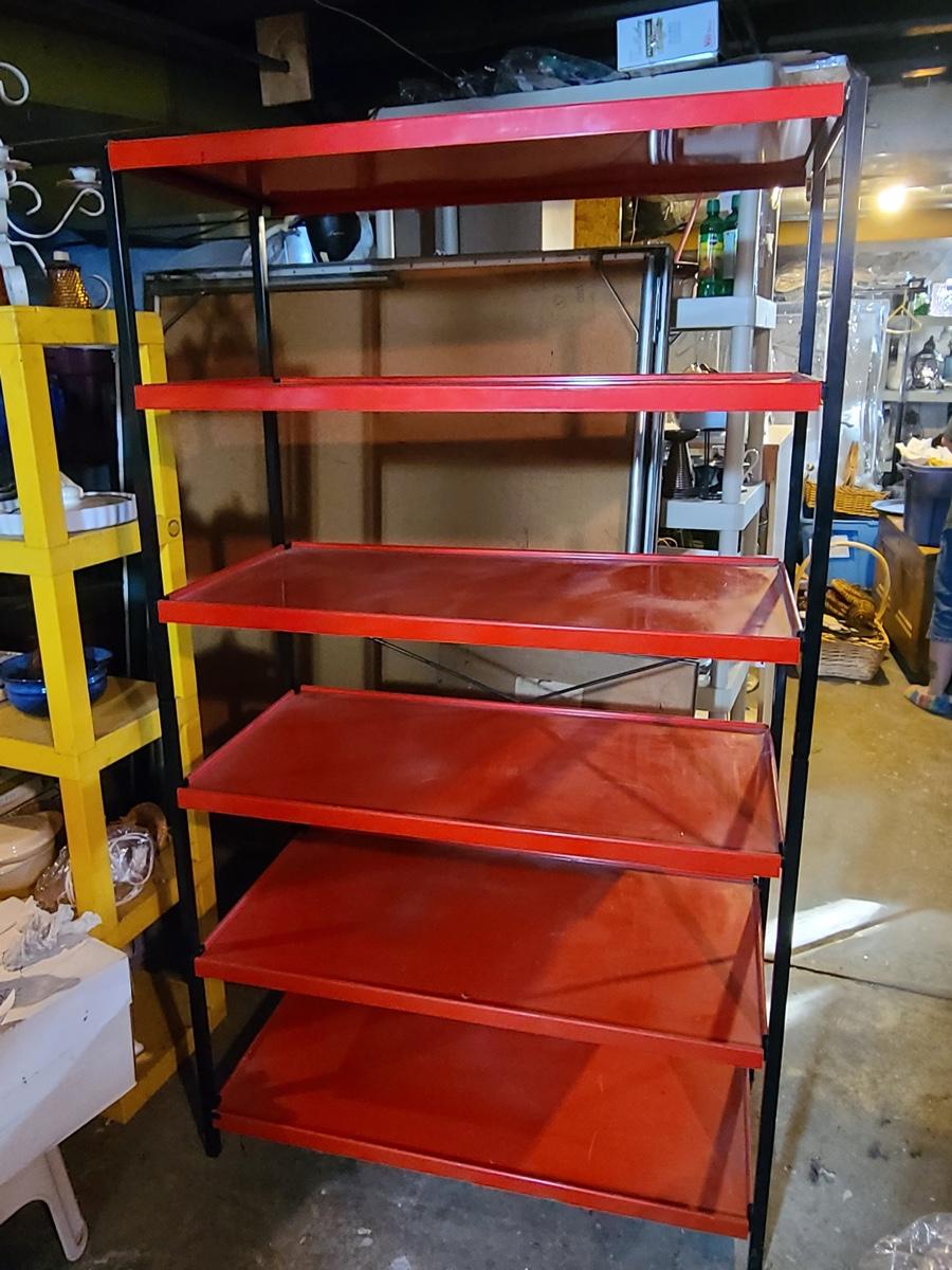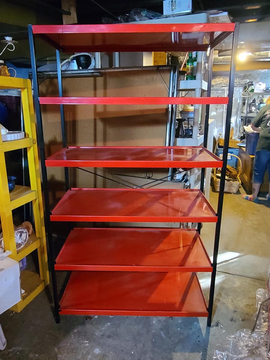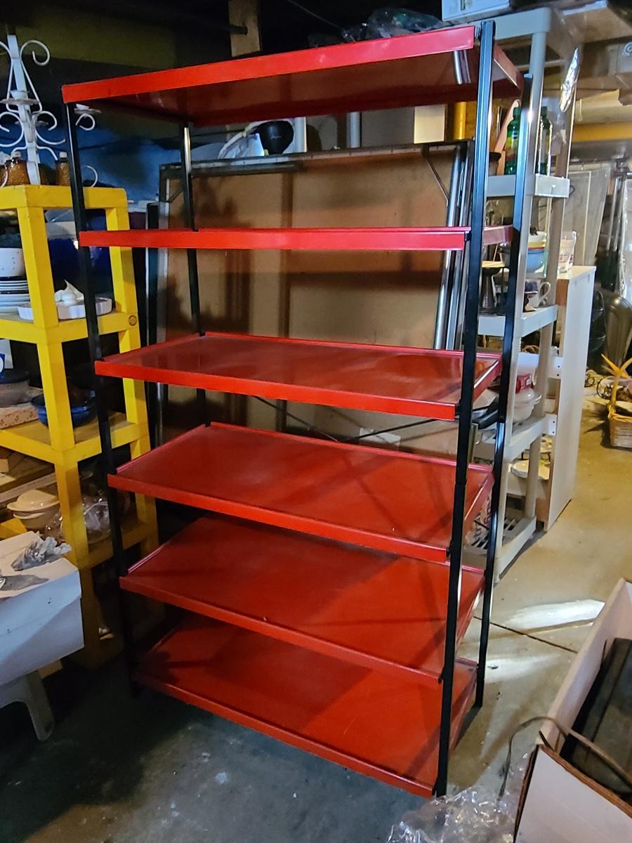 Lot B1: Kitchy Red & Black Metal Pantry Shelving Unit