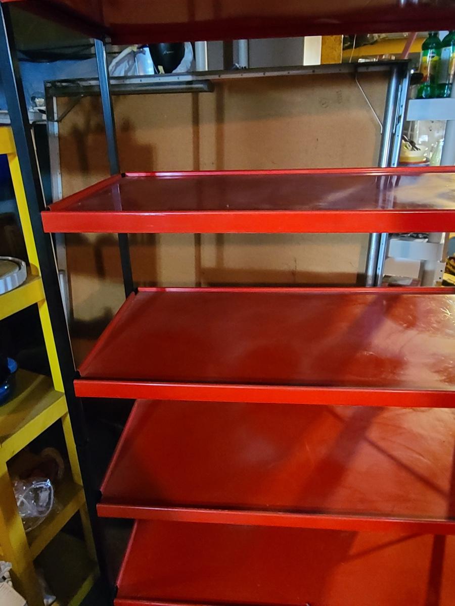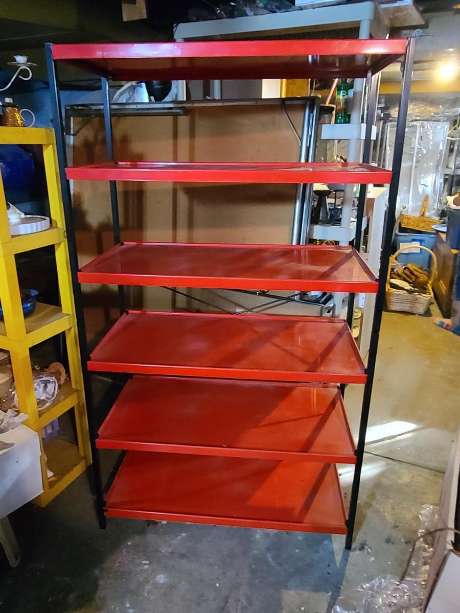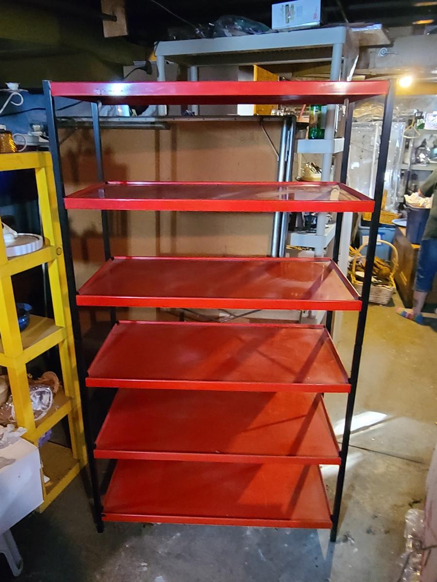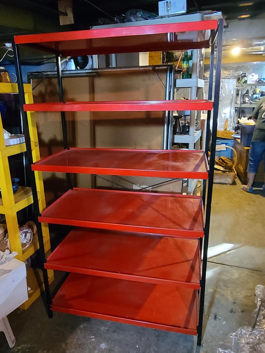 Lot B1: Kitchy Red & Black Metal Pantry Shelving Unit