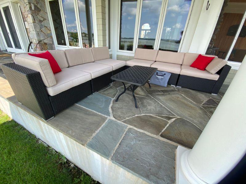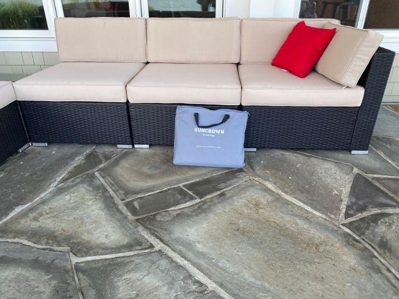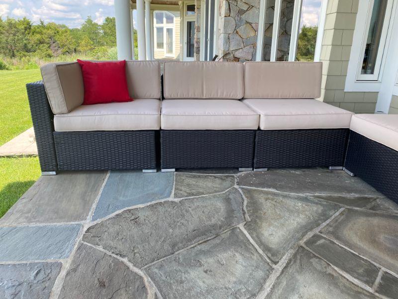 Lot # 486 Large 7-pc  Outdoor Wicker Suncrown Sofa and cushions