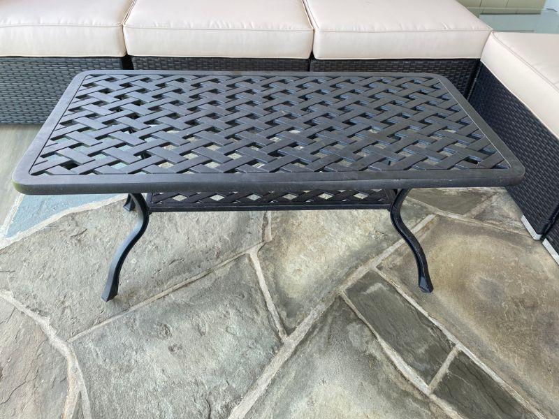 Beautiful Excellent condition 7-pc Outdoor Wicker Suncrown Sofa with cushions and aluminum coffee table