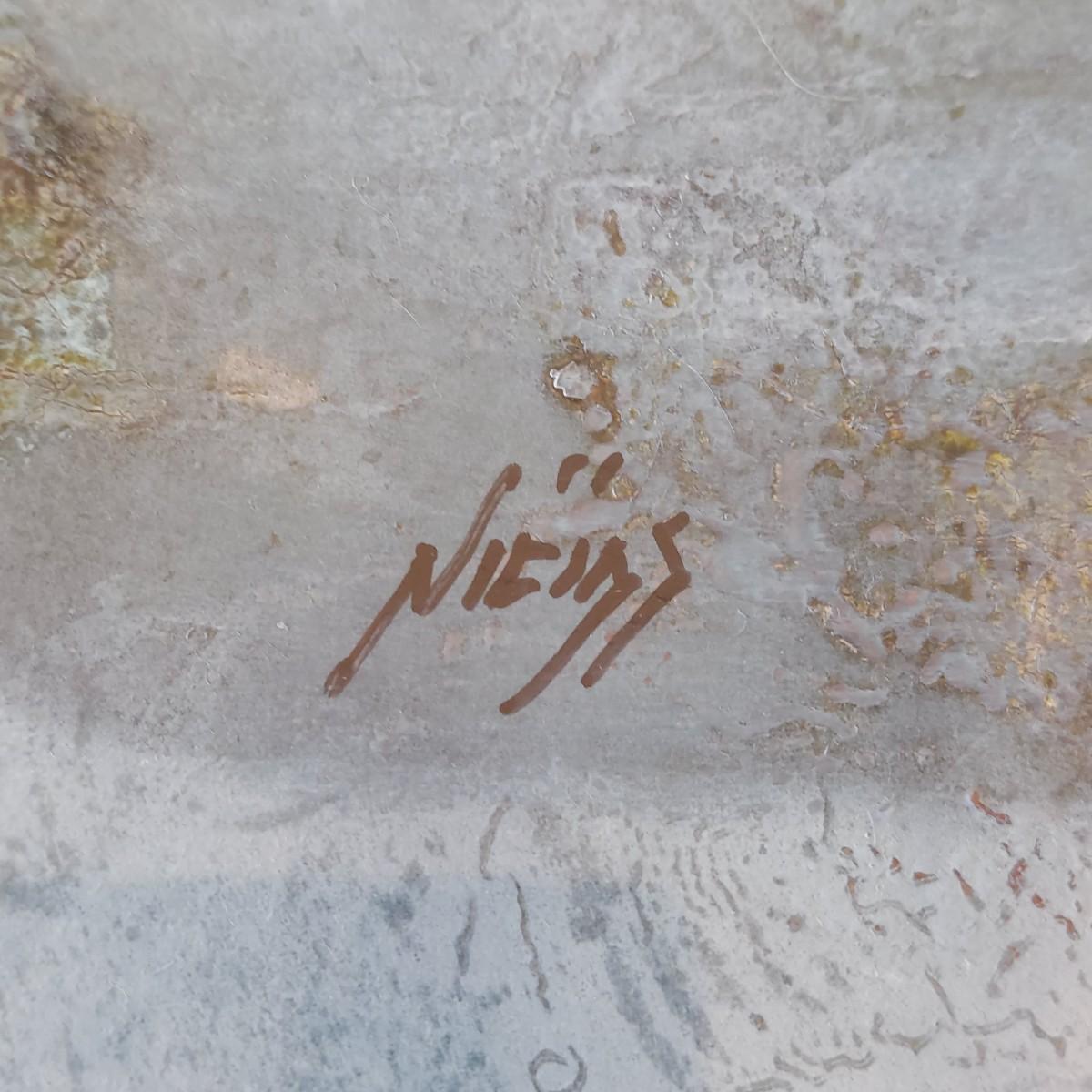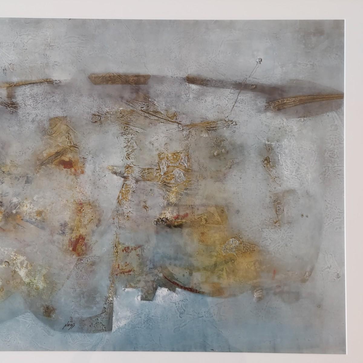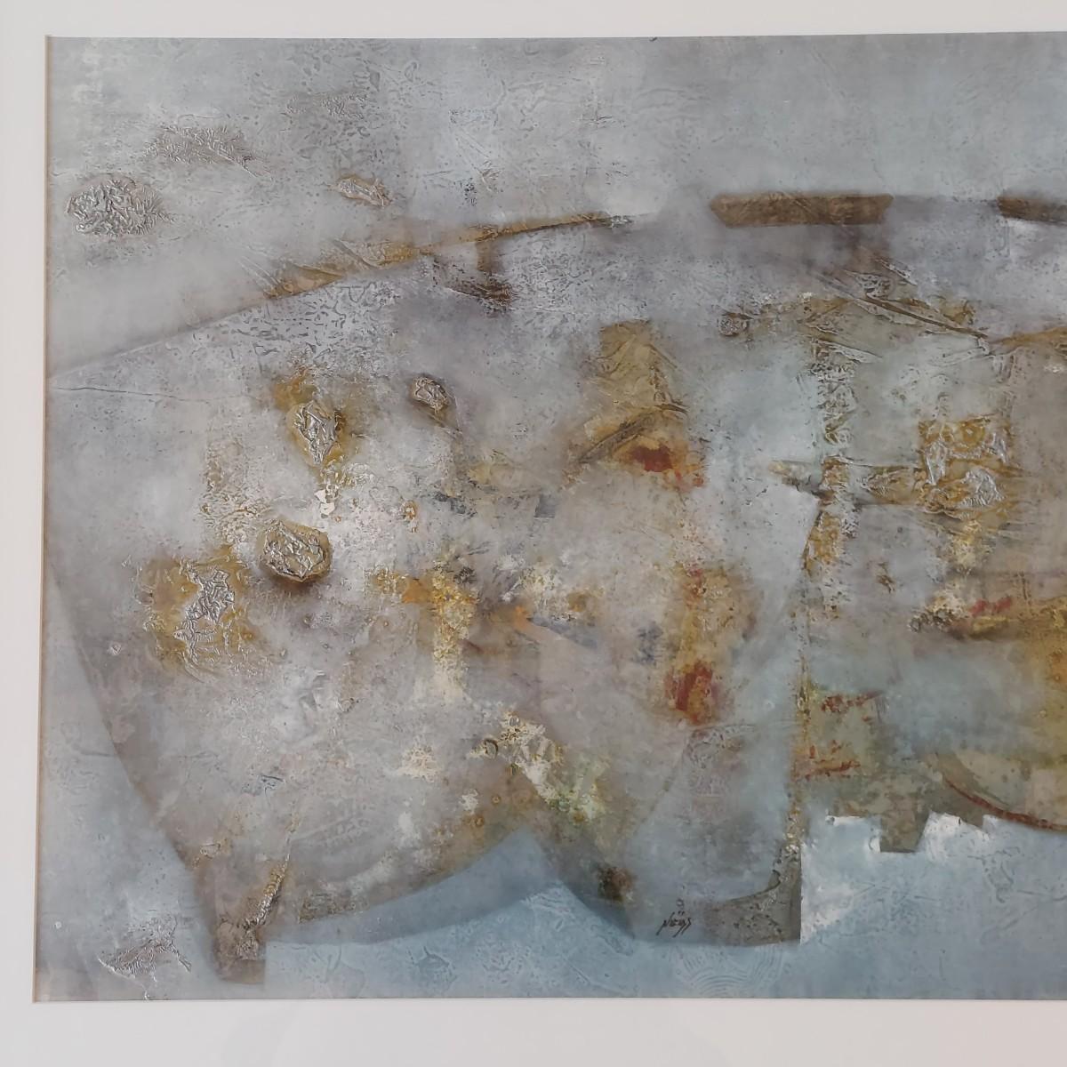 Large artwork matted in a wood frame under UV protective glass. The frame measures approximately 34” x 25.5"H. The piece appears to be an original painting that can be hung two different ways. A signature is present but indistinguishable. Please see photos for details. Shipping available. Shipping certain items can be costly. We suggest contacting our preferred local shipping provider, Postage Express, with dimensions and getting an estimate before bidding: (828) 255-9250 or shipping@postageexpressnc.com