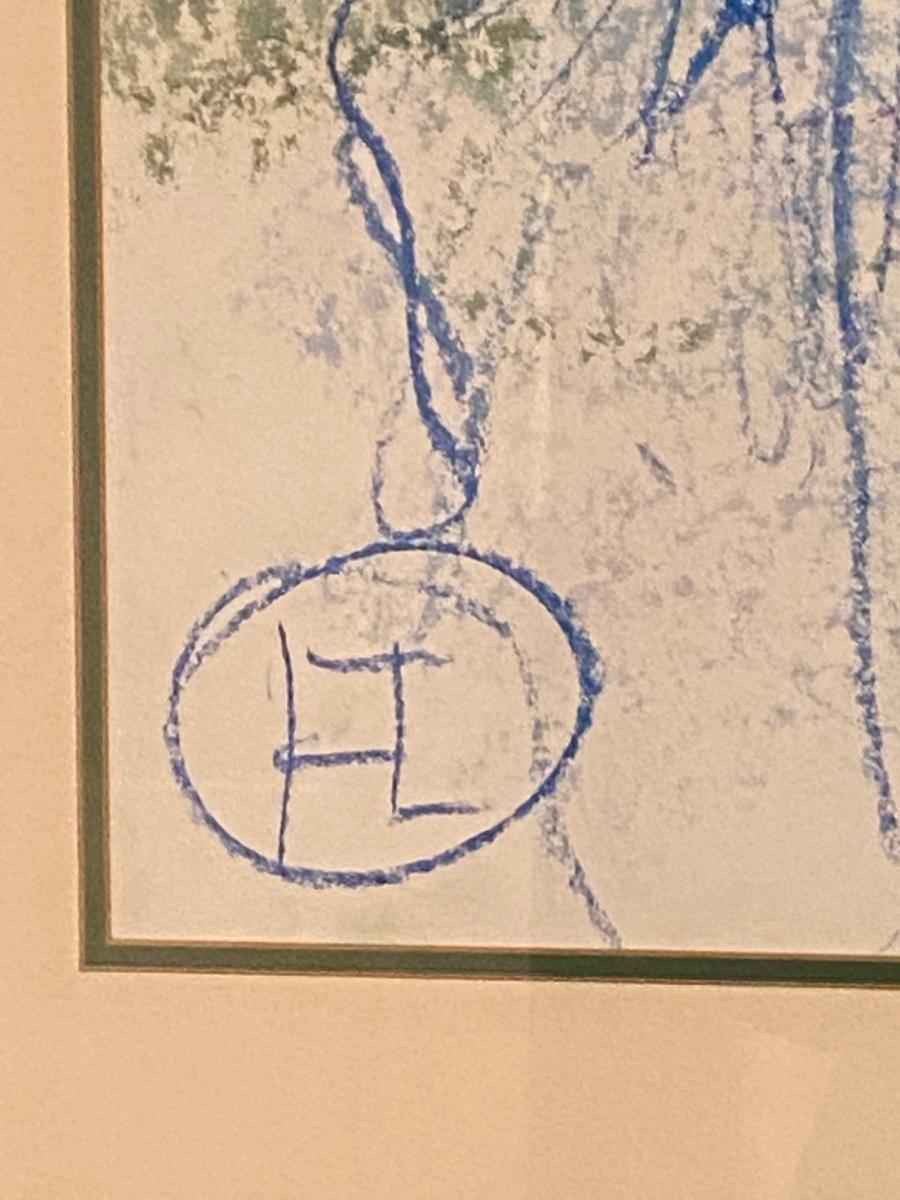 Large Abstract Portrait Art Crayon Oil Pastel Signed