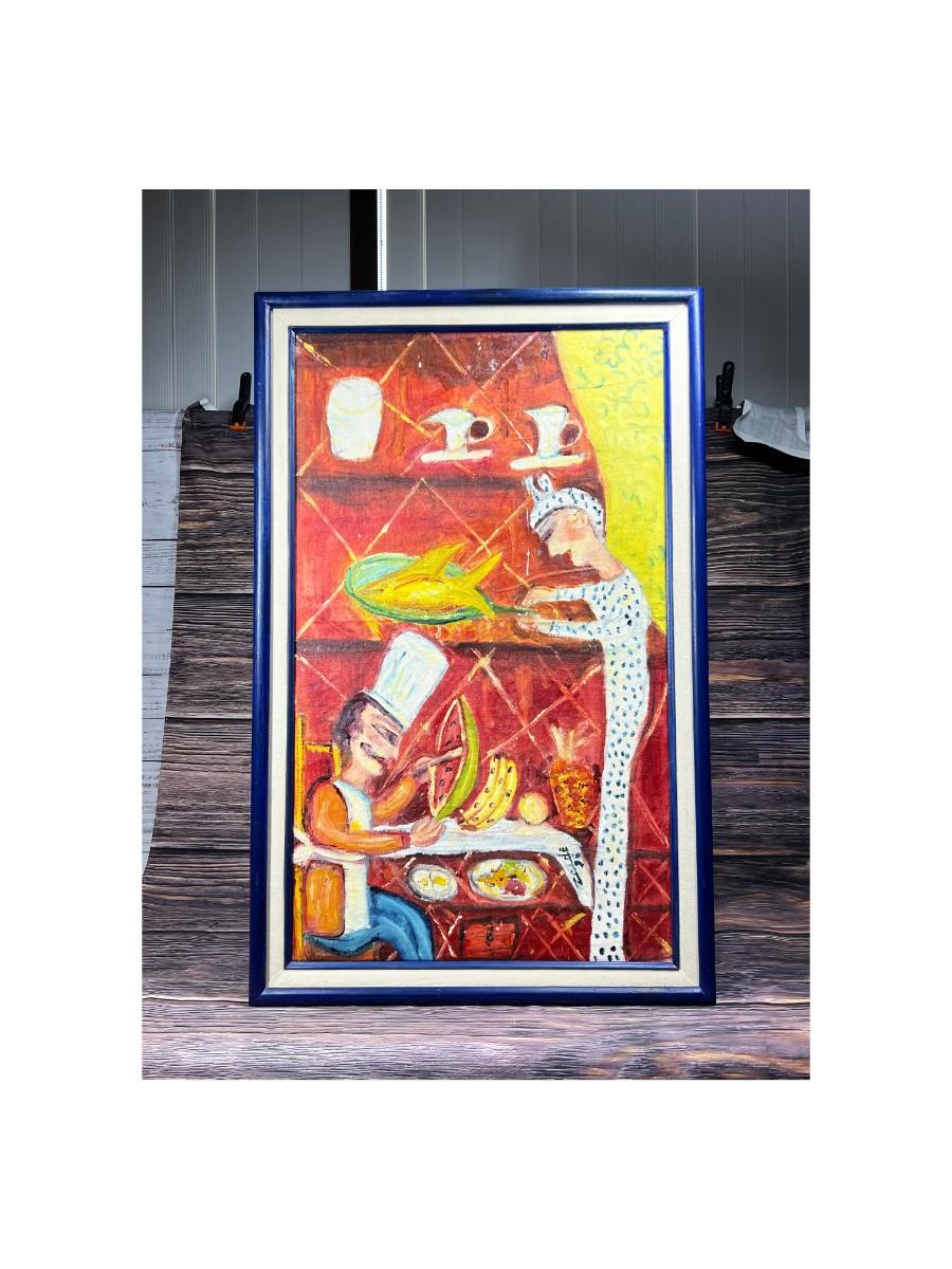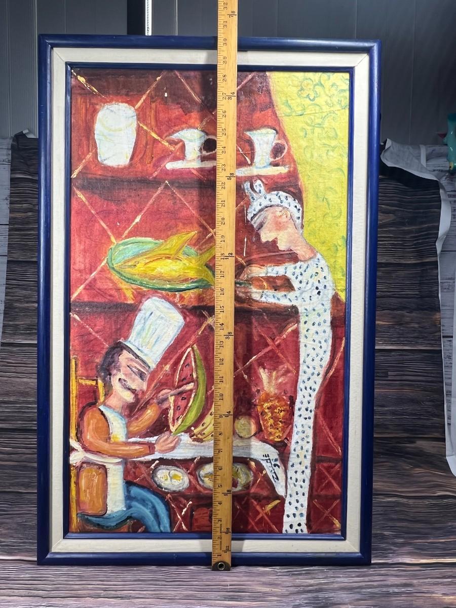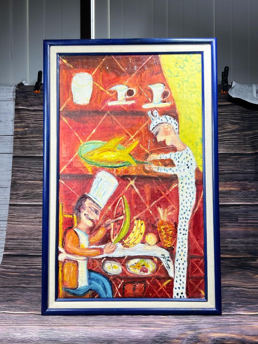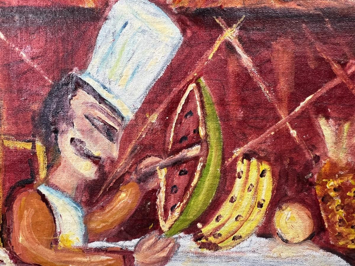 Large Abstract Surrealist Chef Kitchen Oil Painting Artist Signed