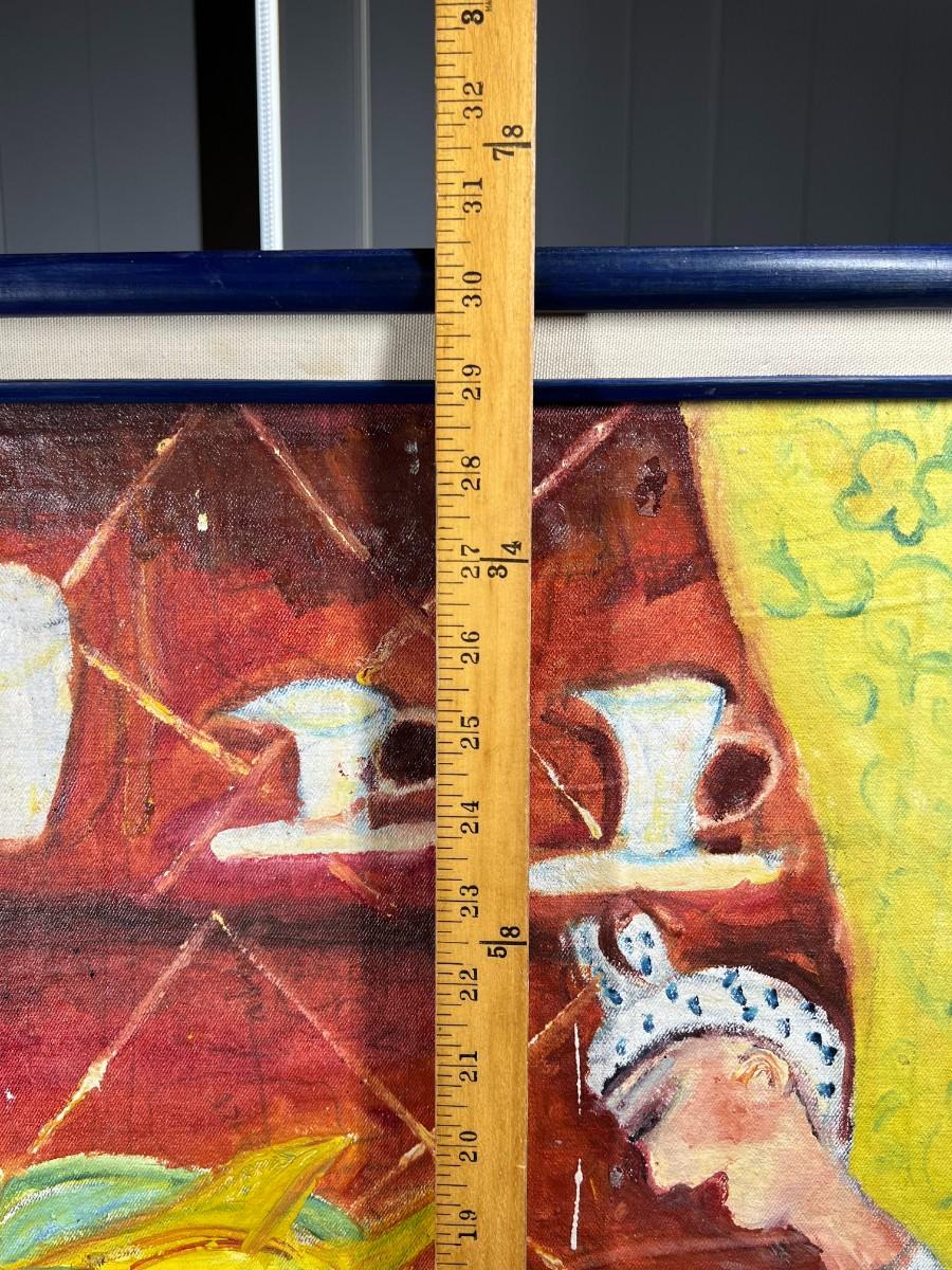 Interesting large abstract surrealist style oil painting. 31" height. Artist signed.