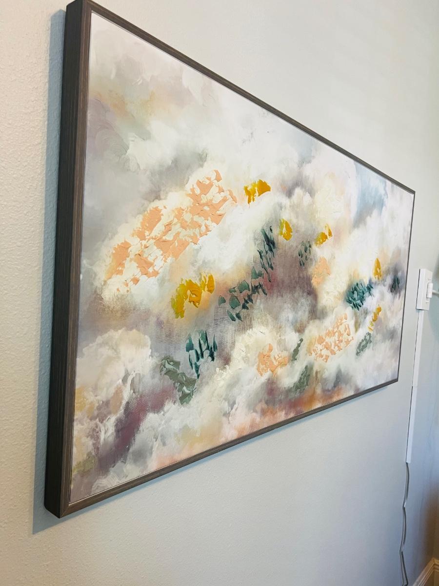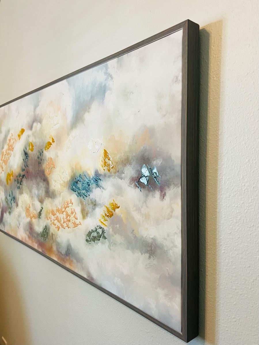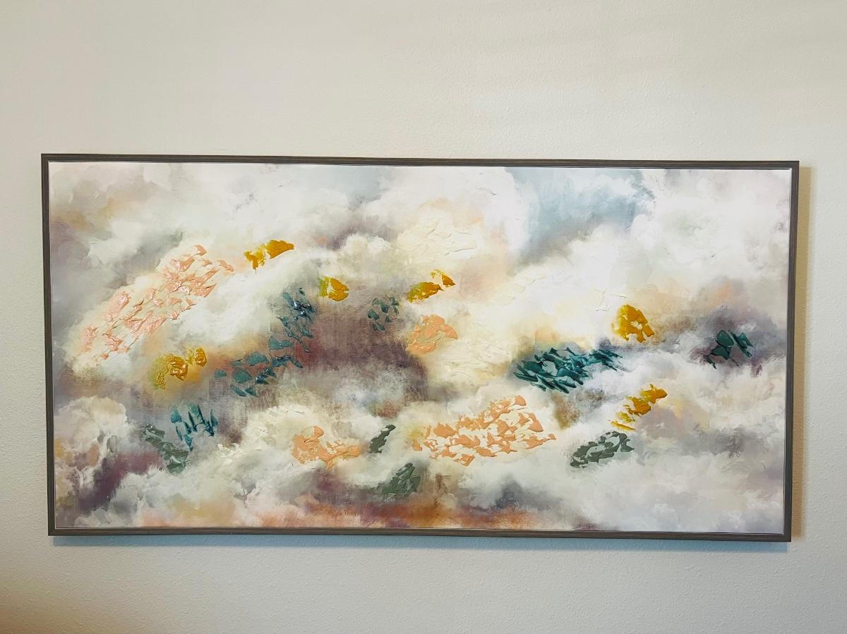 Framed, LARGE Abstract Textured Canvas Wall Hanger. Measures 49 inches wide 25 inches tall and 1 1/2 inches deep.